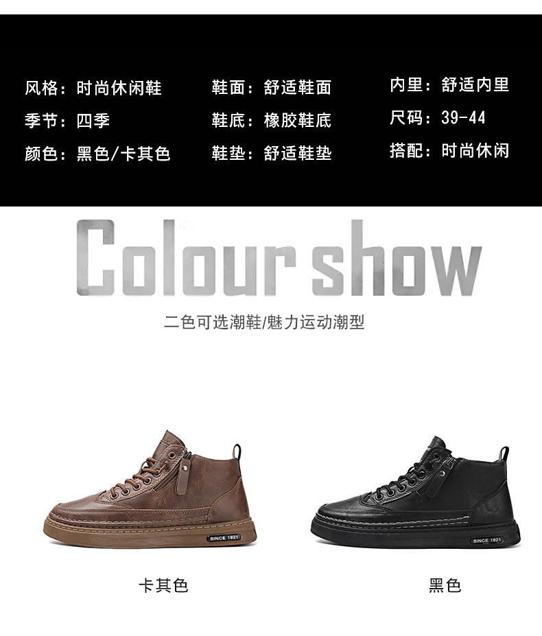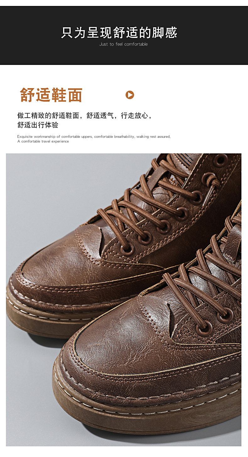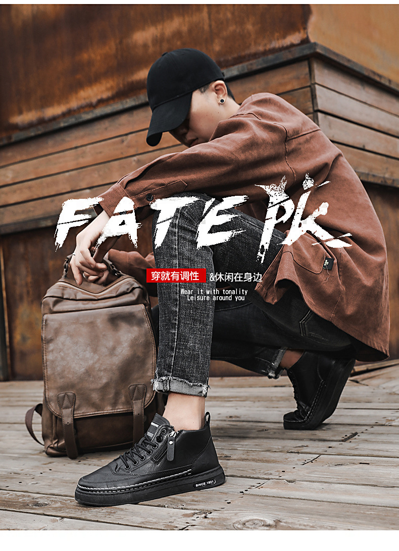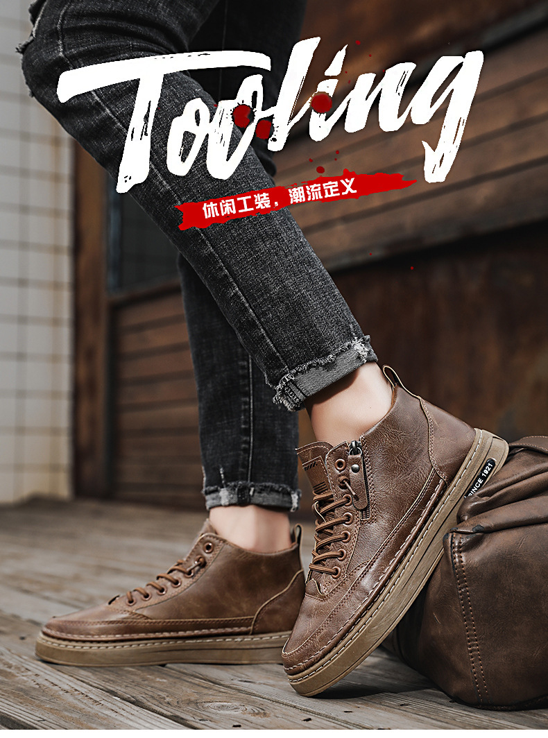 Otoño y invierno nuevos zapatos de skate de cuero de alto impacto de color sólido, zapatos de trabajo casuales de base plana, zapatos de hombre de moda sin lazos