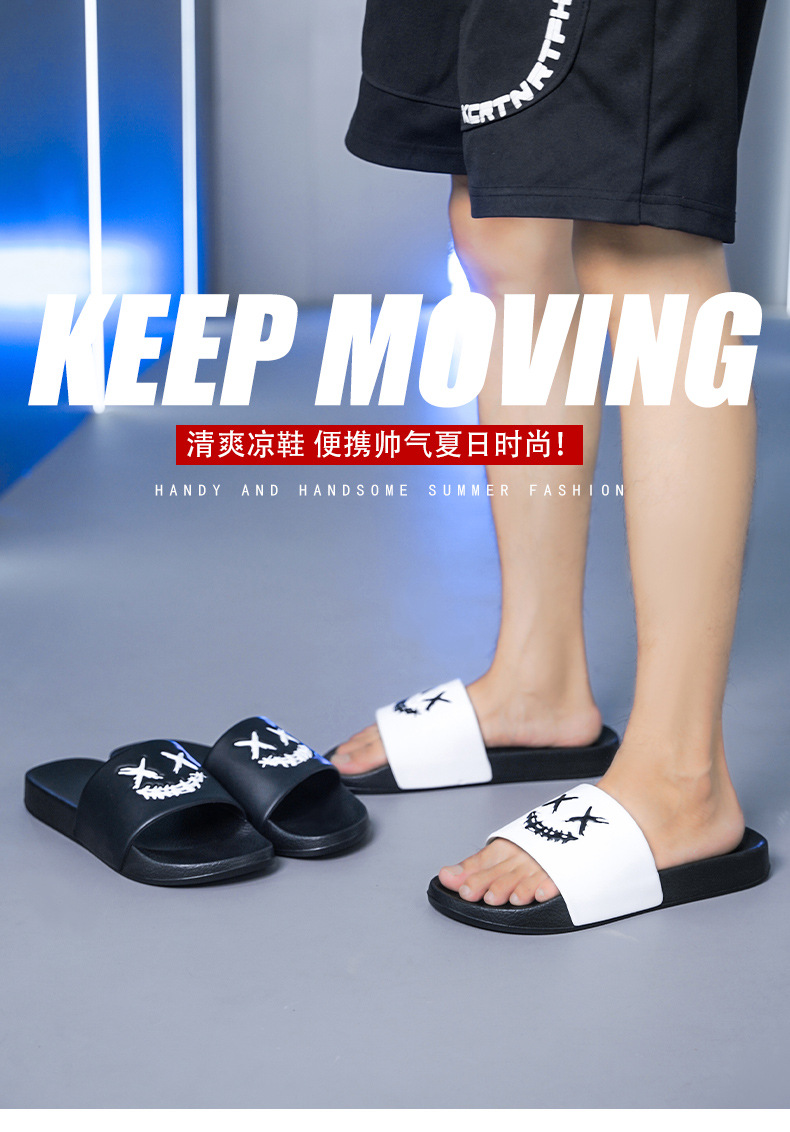 Estilo de moda de verano, todo fósforo, cara sonriente, chanclas de una palabra, estilo de pareja, ropa exterior de gran tamaño, suela suave, zapatillas antideslizantes, resistentes al desgaste y transpirables
