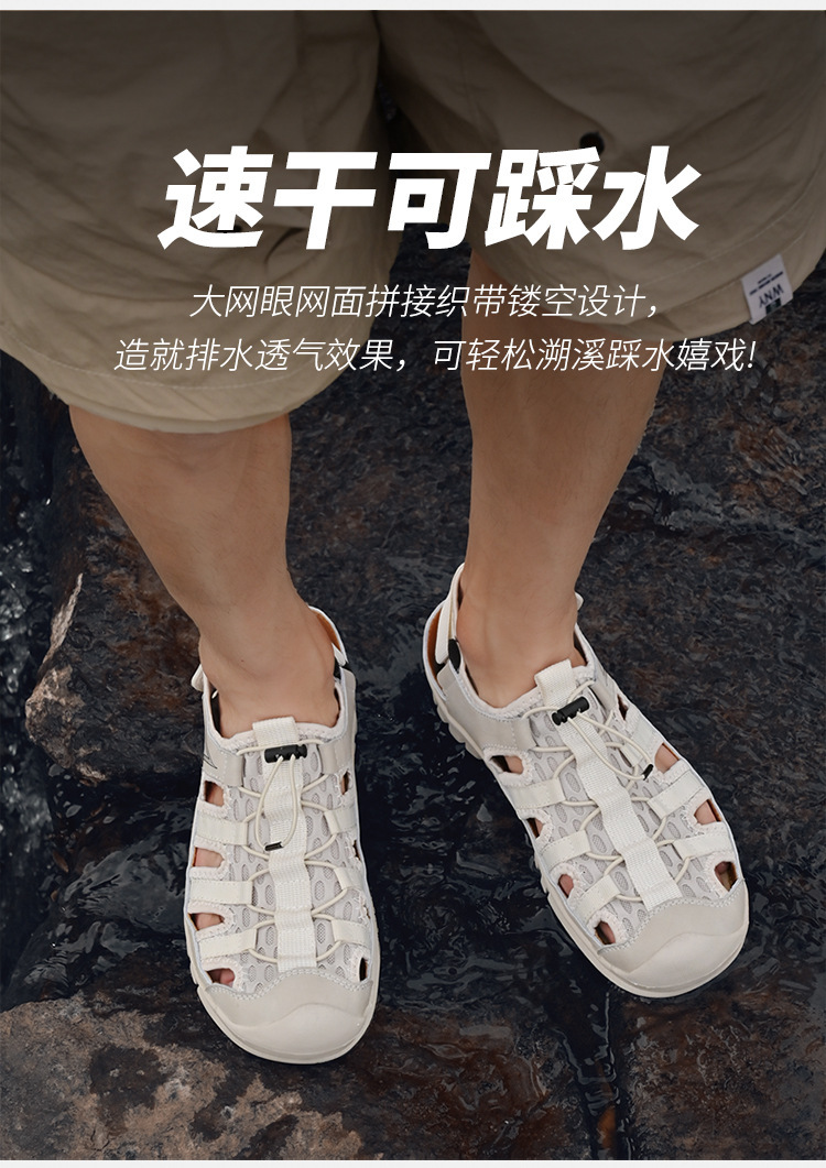 2024 verano todo-fósforo transpirable zapatos de hombre de talla grande sandalias casuales de malla de cuero zapatos de playa con banda elástica hueca para hombre