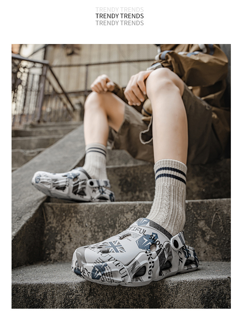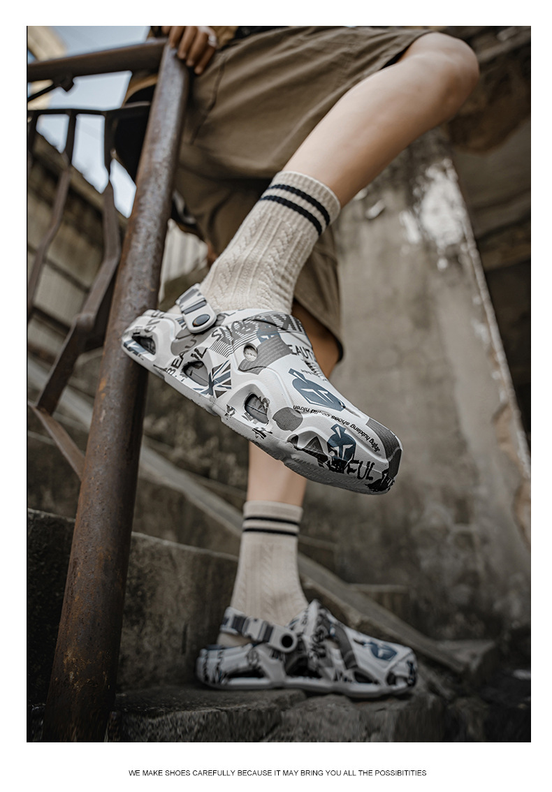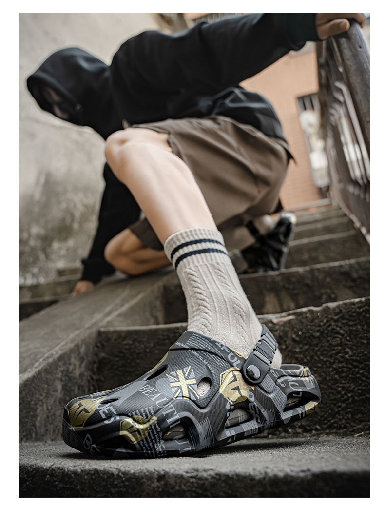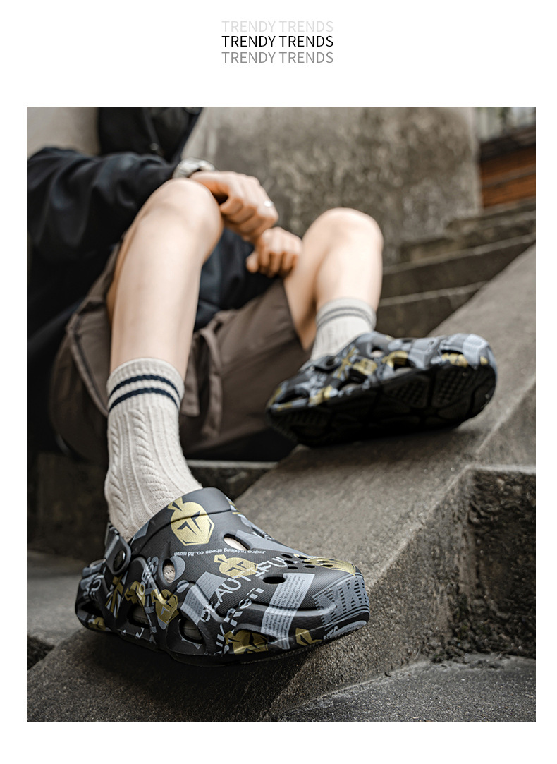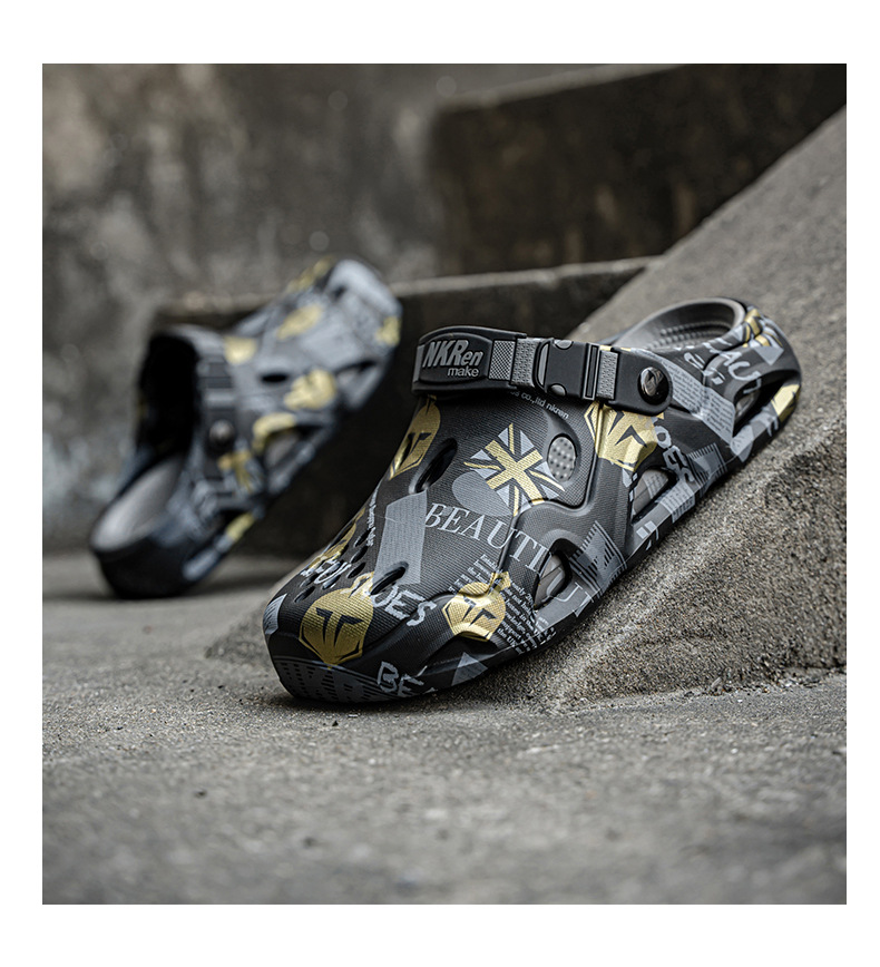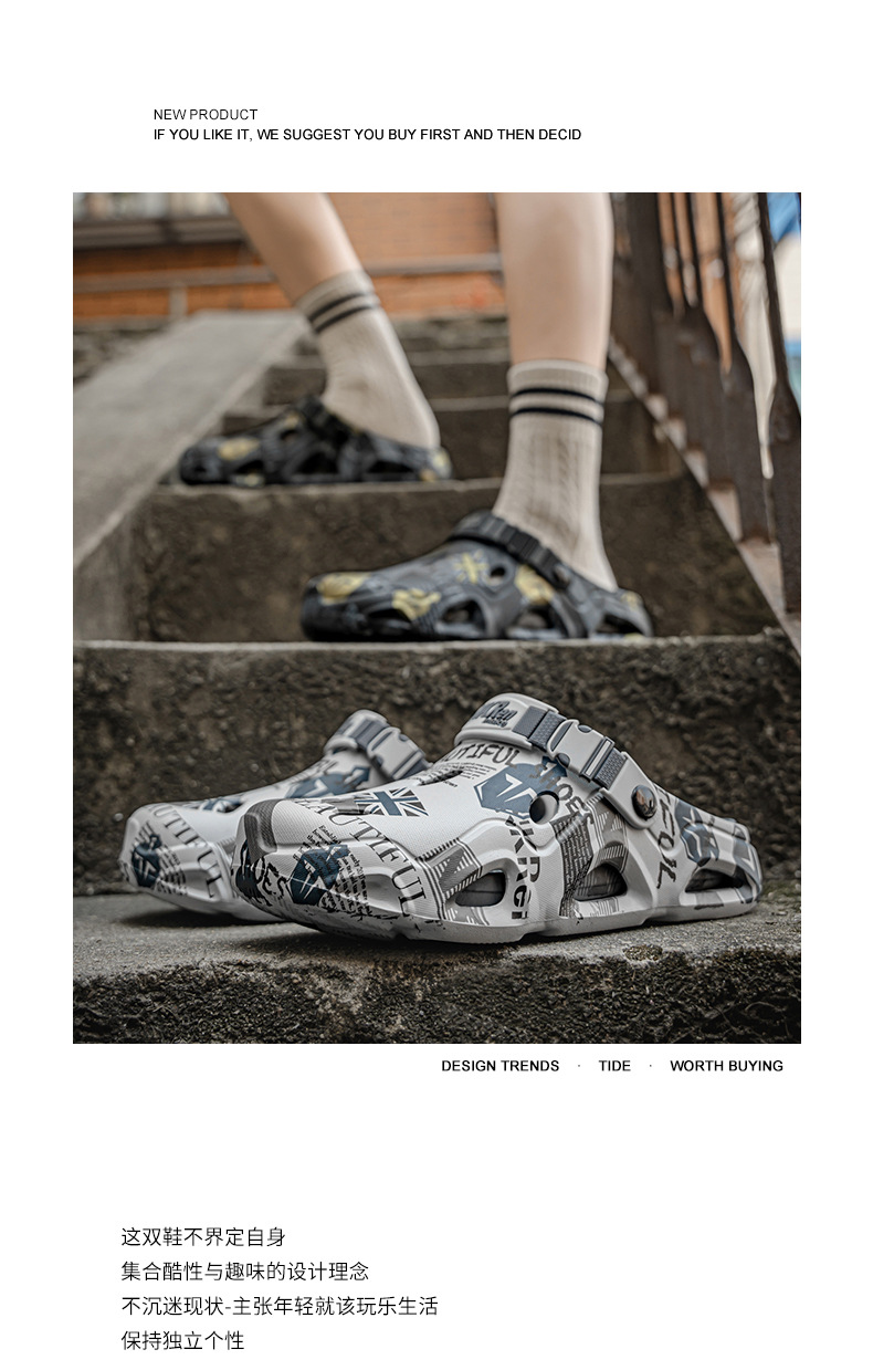 Semi pantuflas Baotou para hombre conduciendo sandalias deportivas de playa de doble uso de gran tamaño para uso exterior de verano zapatos antideslizantes con suela suave