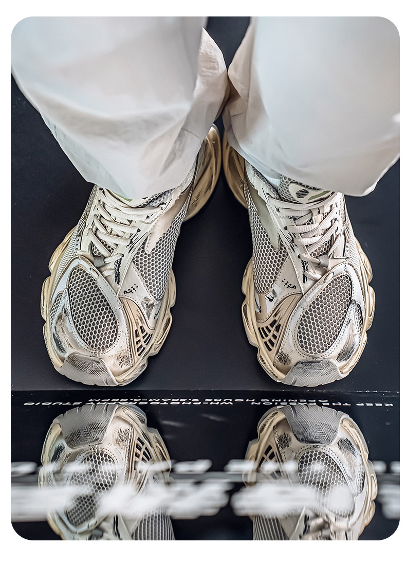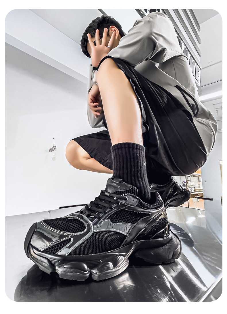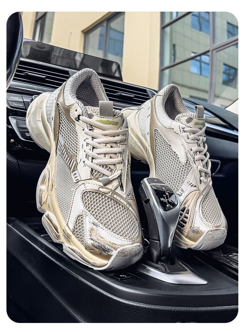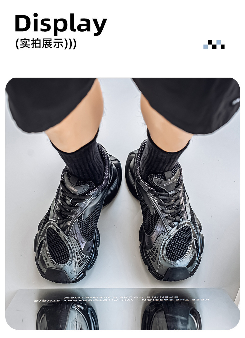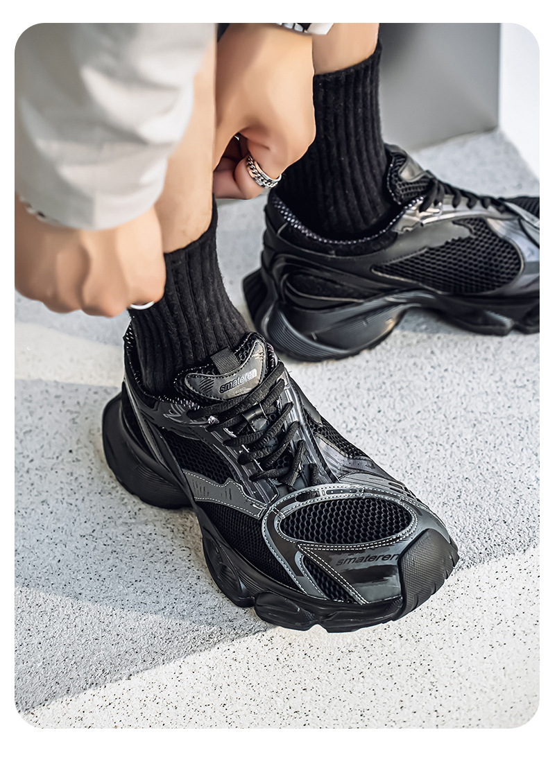 2025 otoño nuevo estilo de suela gruesa aumento de los zapatos de papá hombres transpirables zapatos de red casuales tendencia de moda zapatos deportivos en nombre del cabello