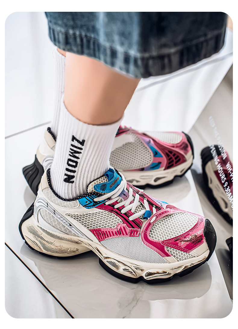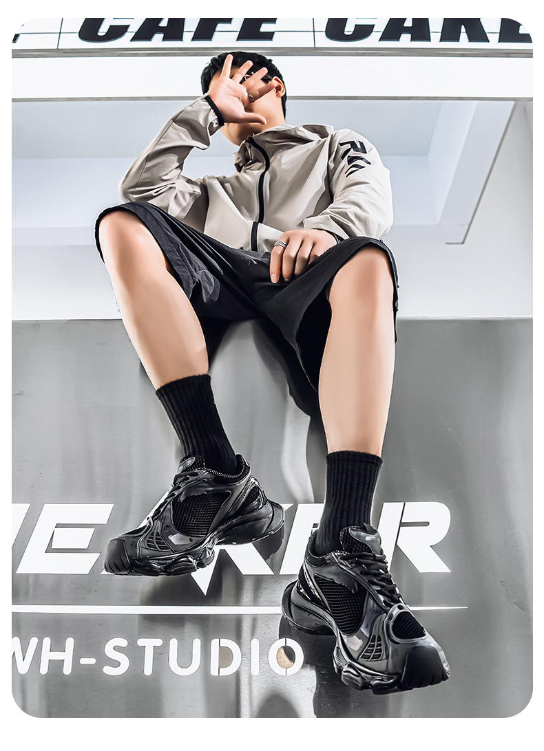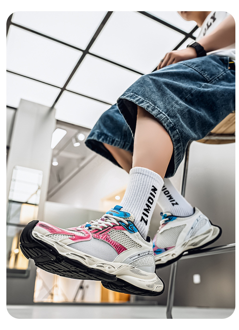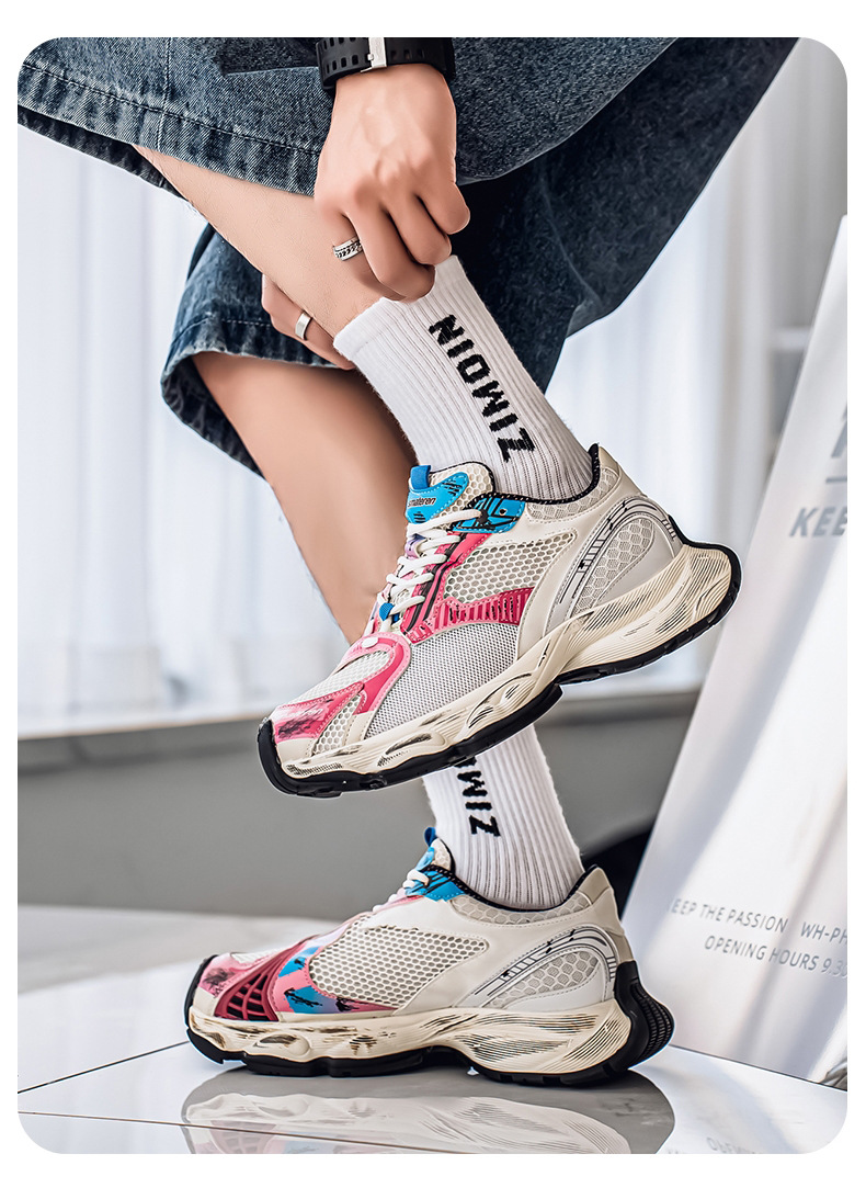 2025 otoño nuevo estilo de suela gruesa aumento de los zapatos de papá hombres transpirables zapatos de red casuales tendencia de moda zapatos deportivos en nombre del cabello