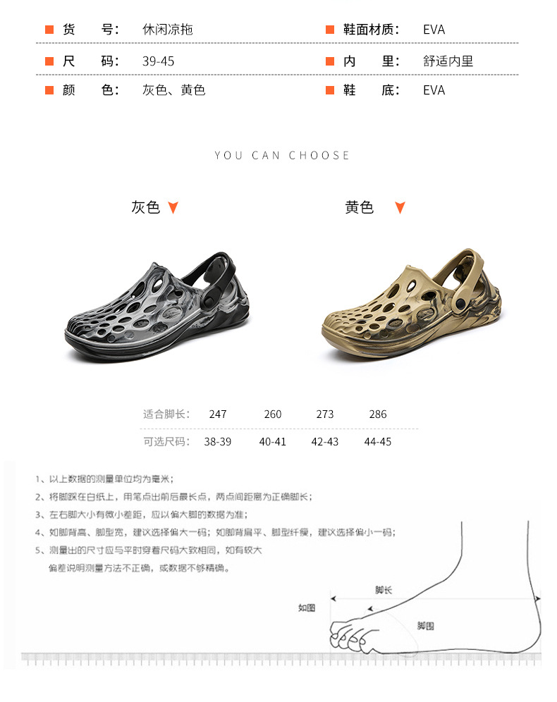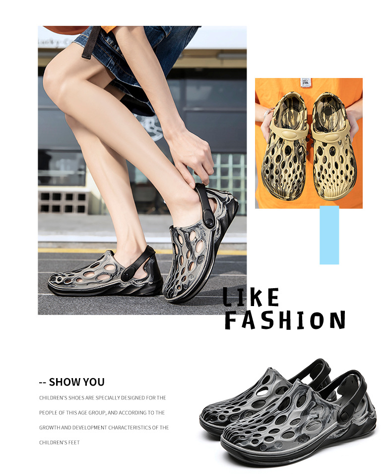 Personalizado camuflaje agujero zapatos de los hombres de moda sandalias huecas hombres 2023 sandalias deportivas de verano al aire libre zapatos de playa de moda