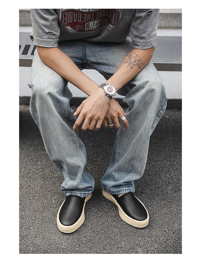 Zapatos de cuero juvenil retro de verano, zapatos de skate de cuero juvenil, zapatos casuales de moda masculinos, zapatos de Lefour