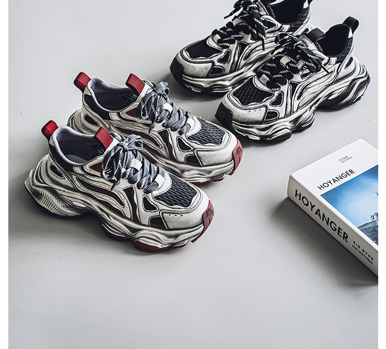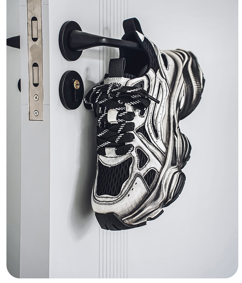 En nombre de 2025, estilo caliente de verano para hombres, correr al aire libre, malla de suela gruesa, zapatos de padre de estudiante transpirables, ropa de trabajo, zapatos deportivos