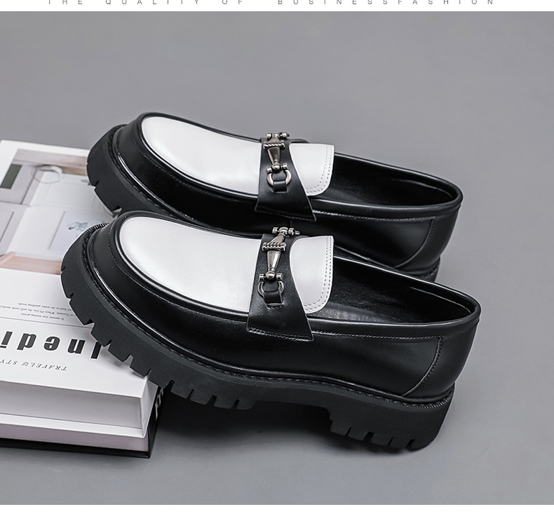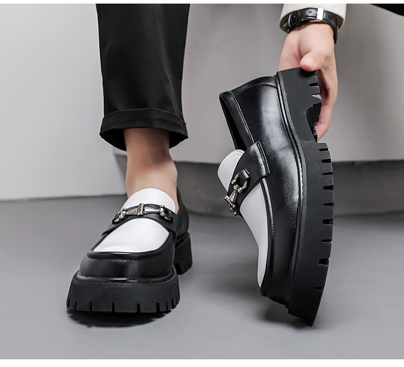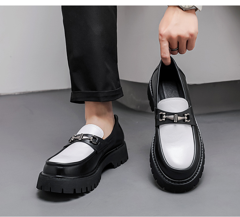 Zapatos de cuero casuales para hombres cuatro estaciones deportes de esmalte negro juvenil matrimonio de negocios un pedale de altura de trabajo zapatos de hombre Lefour