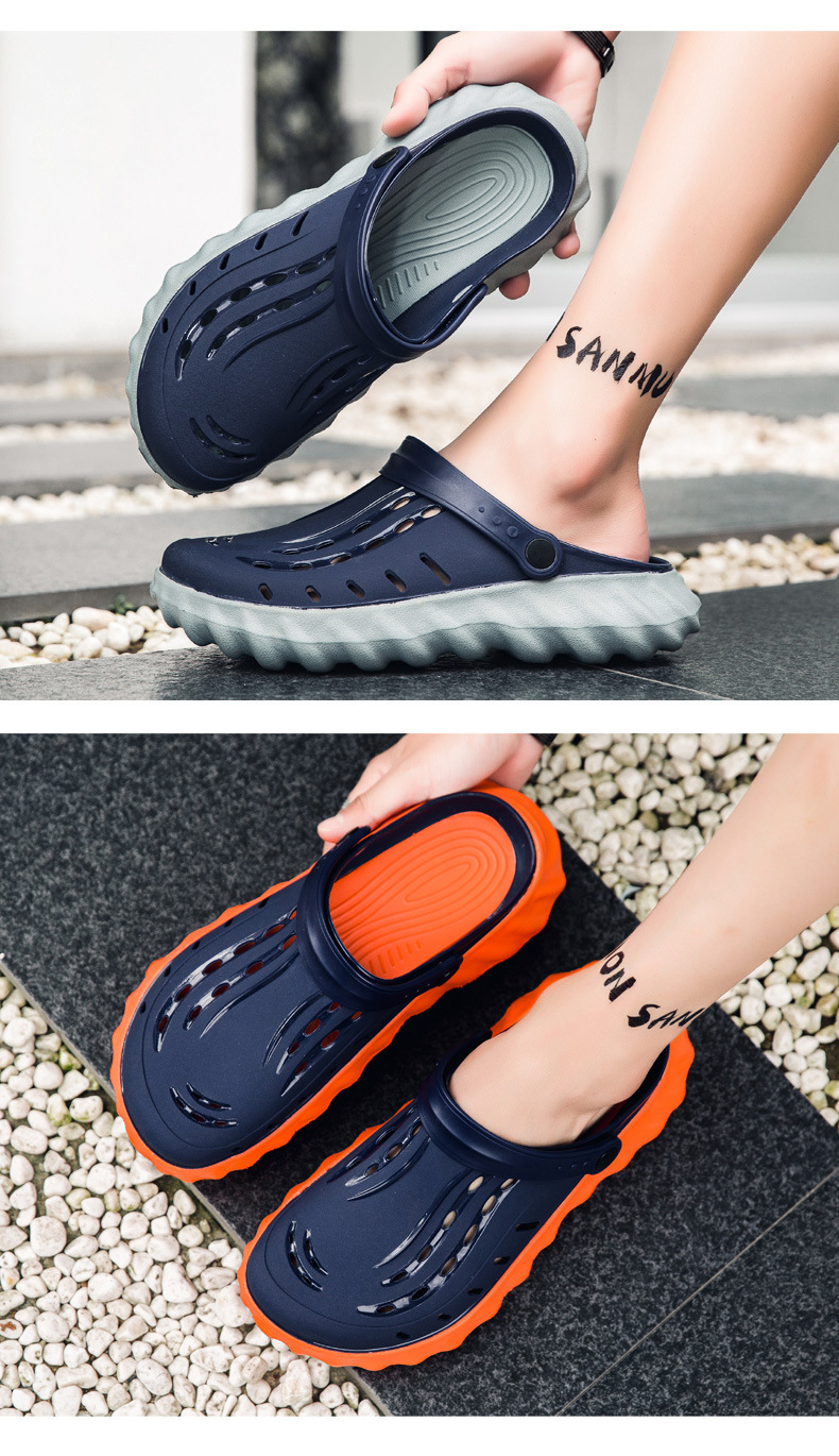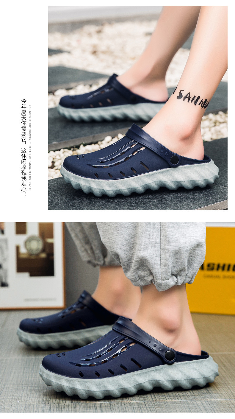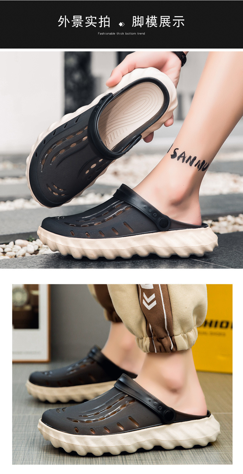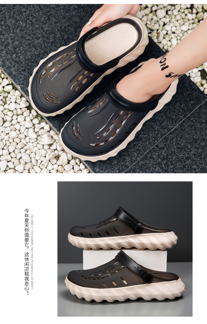 Las nuevas sandalias de gelatina para hombres usan zapatillas de puntera de moda de suela gruesa para aumentar el desgaste y la sensación de pisar los zapatos de alta gama