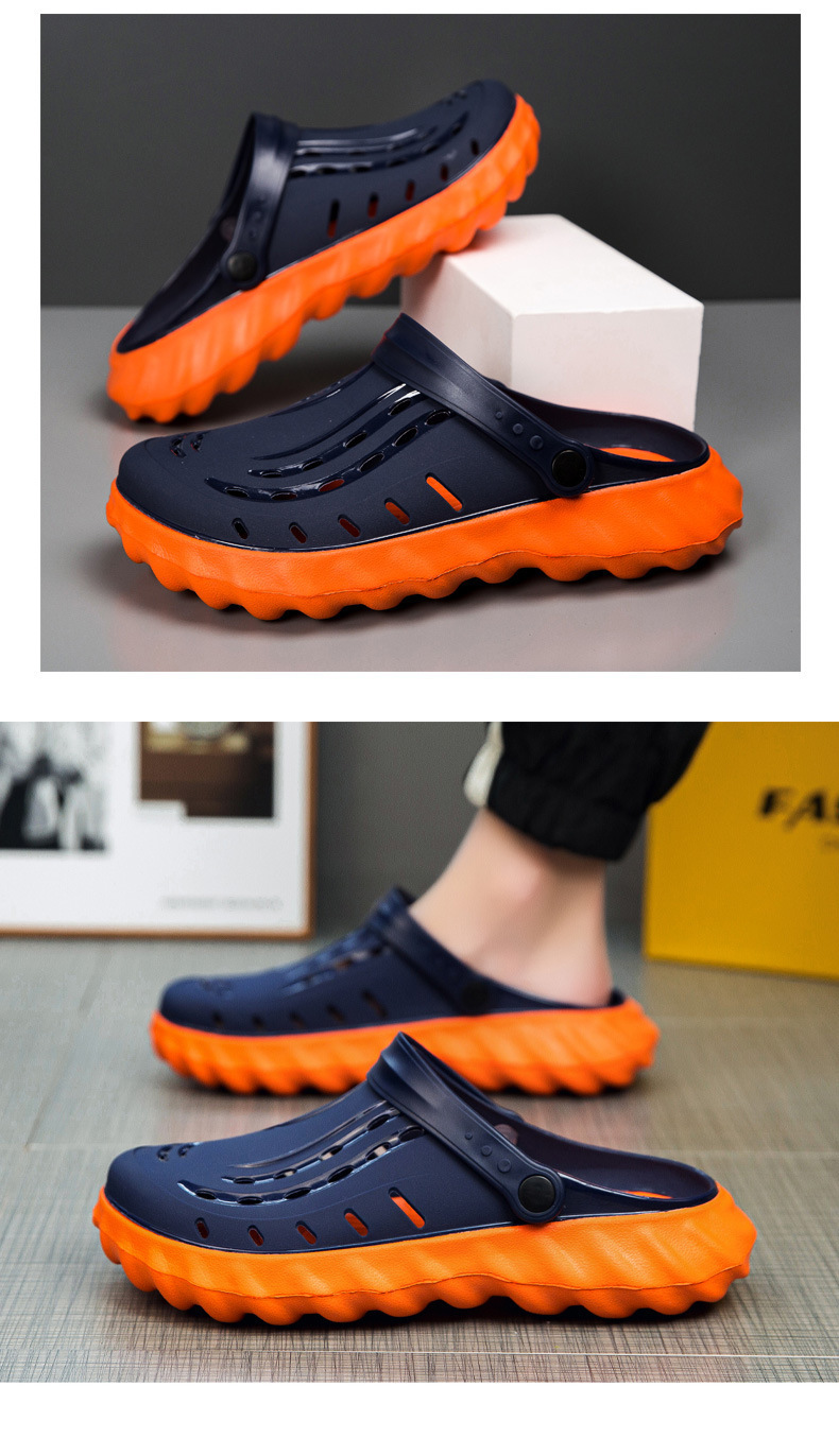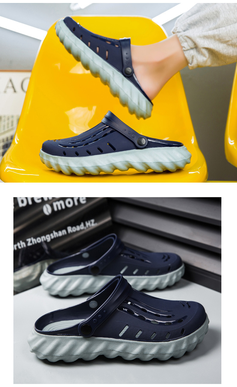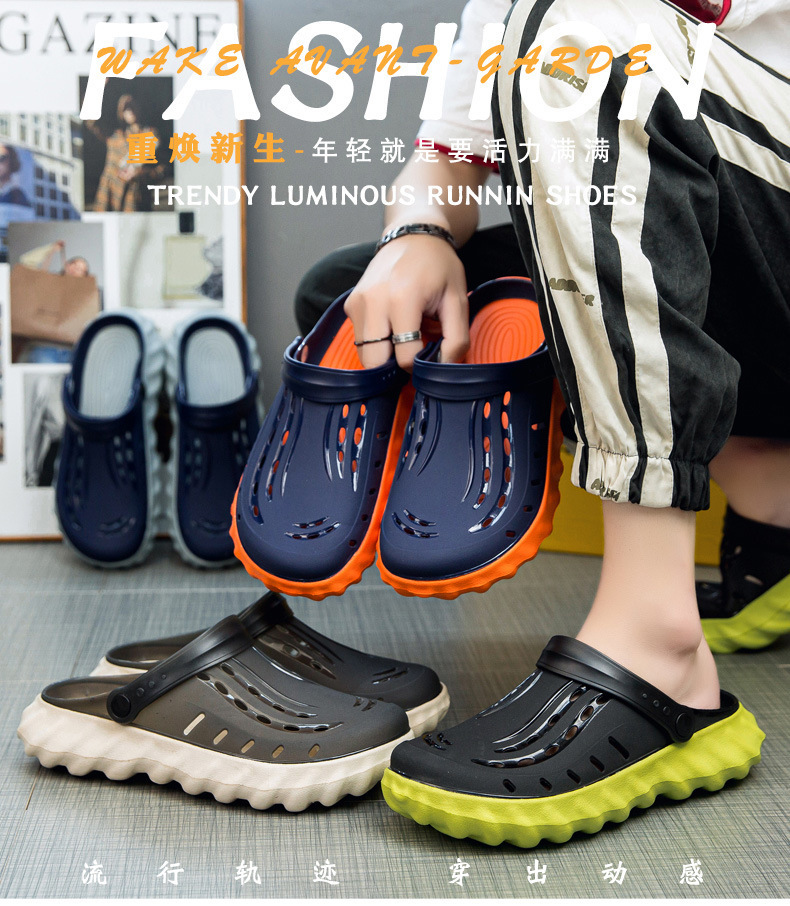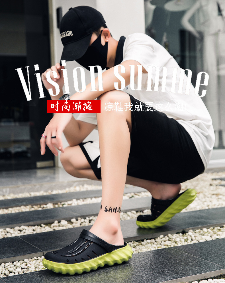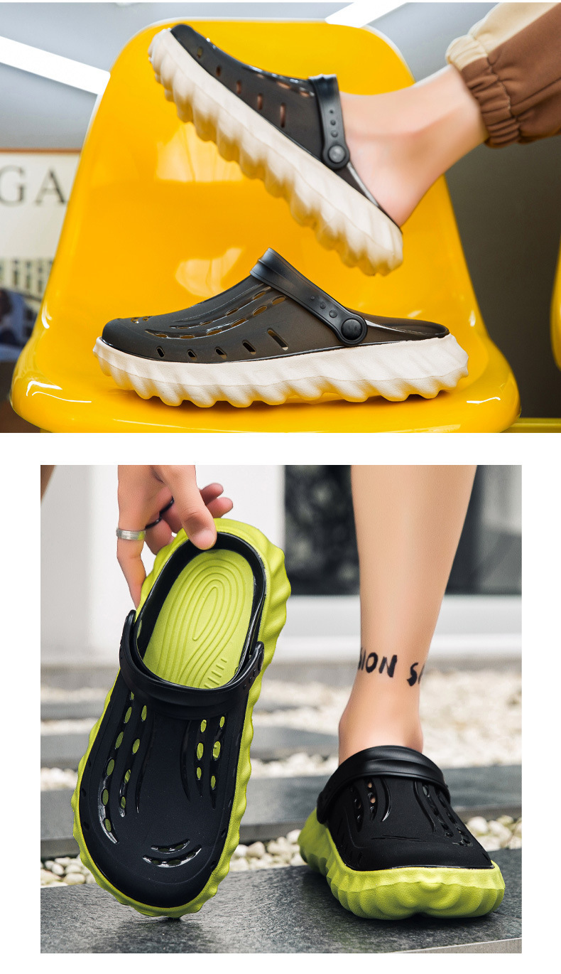 Las nuevas sandalias de gelatina para hombres usan zapatillas de puntera de moda de suela gruesa para aumentar el desgaste y la sensación de pisar los zapatos de alta gama