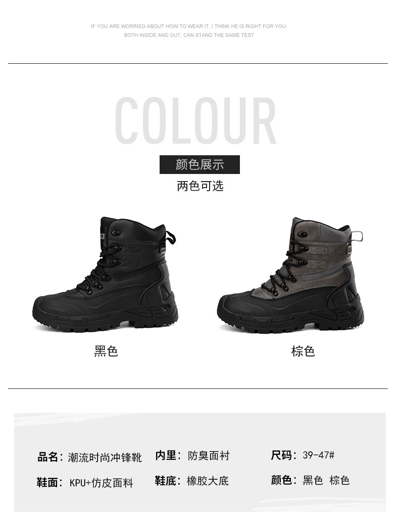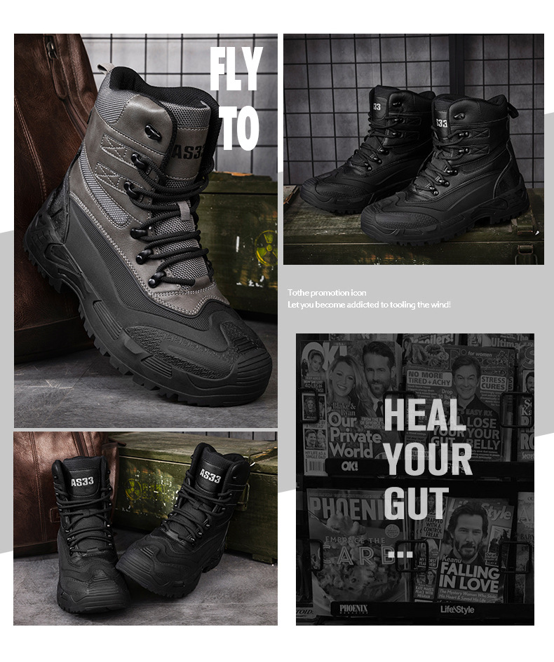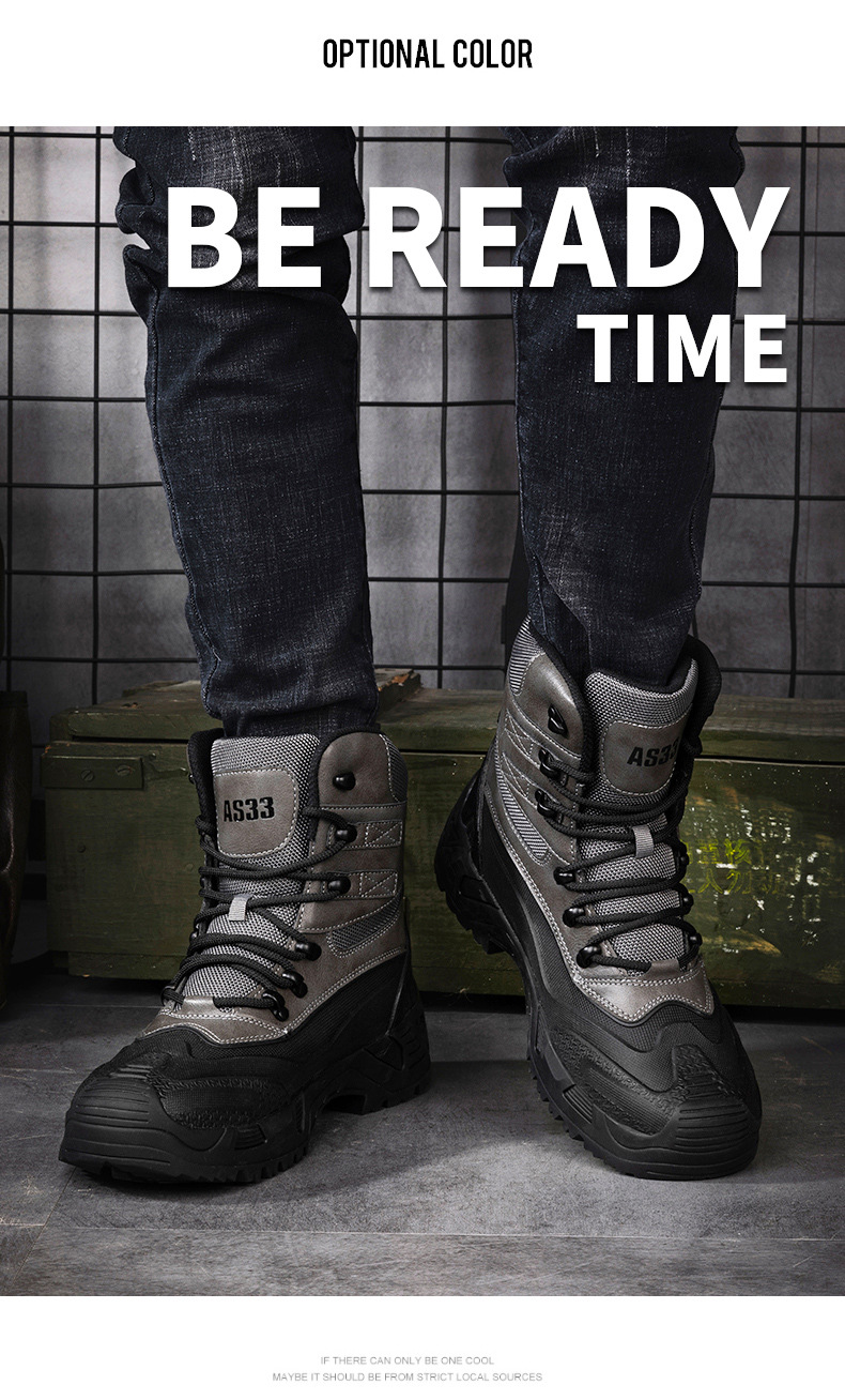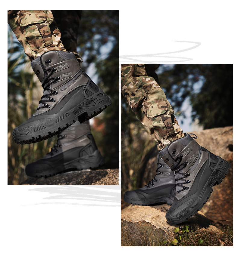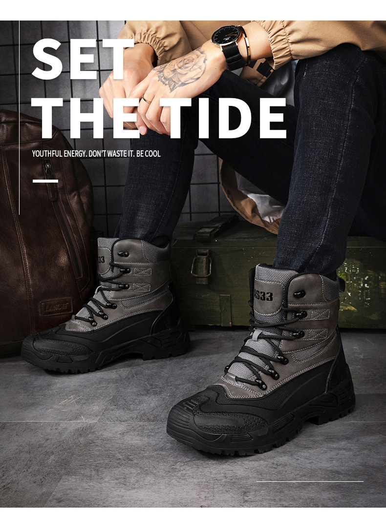 Otoño 2023 transfronterizo más tamaño de los hombres nuevos zapatos de senderismo de alta superior sin encaje transpirable antideslizante resistente al desgaste entrega de una sola pieza