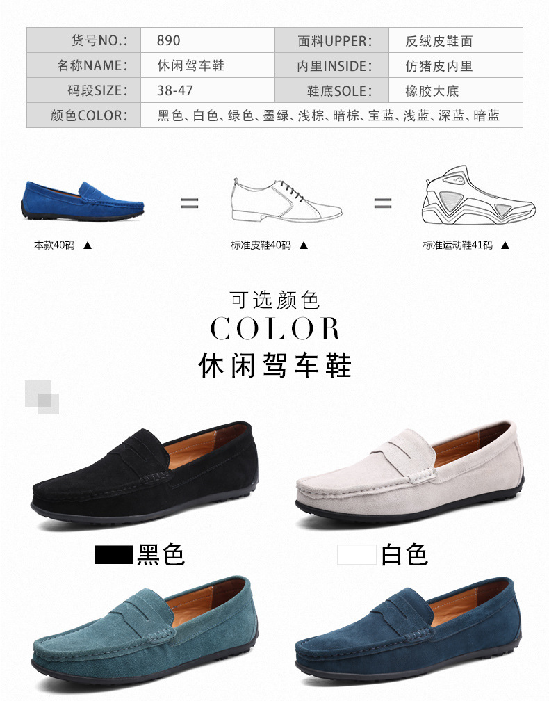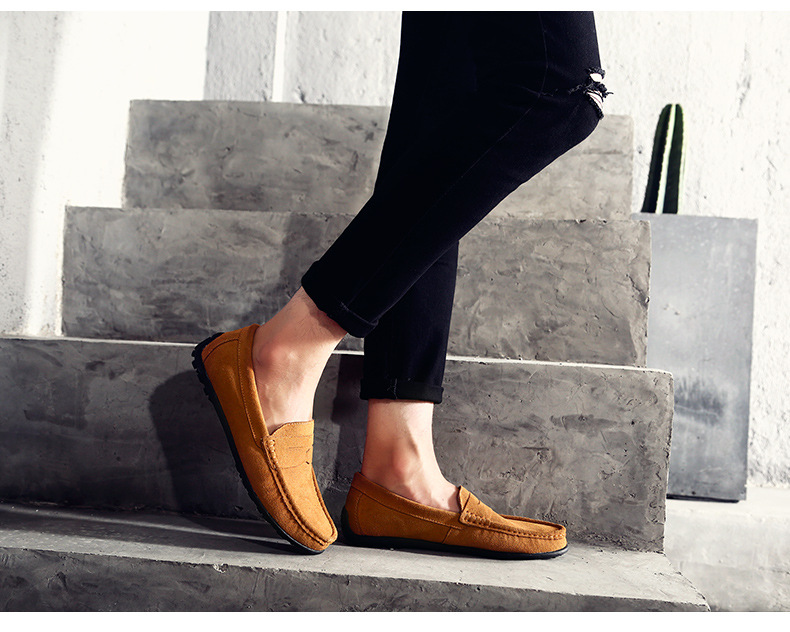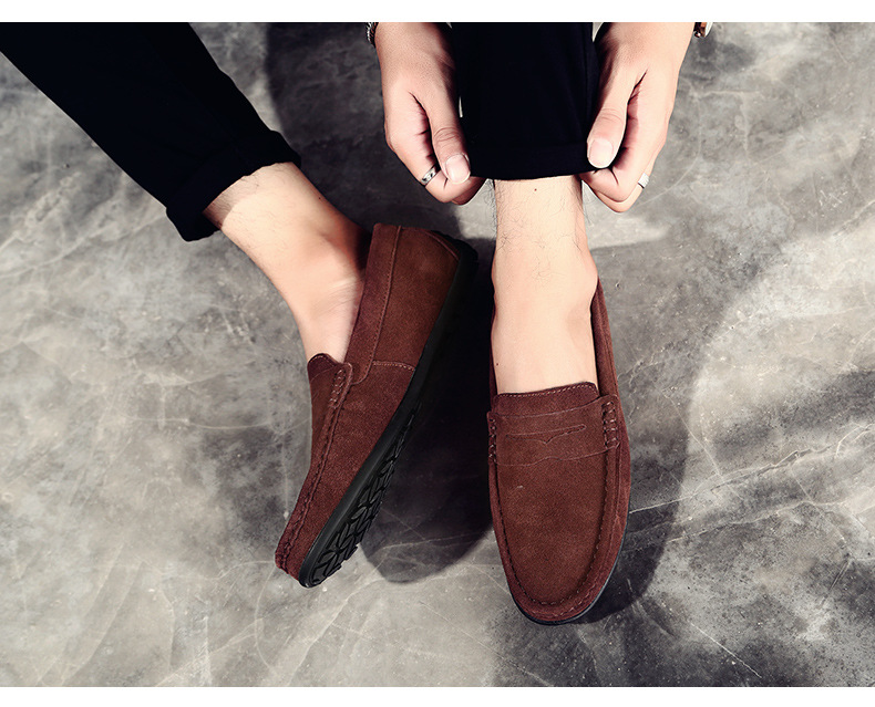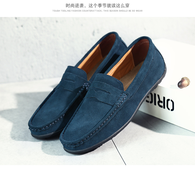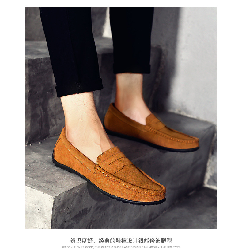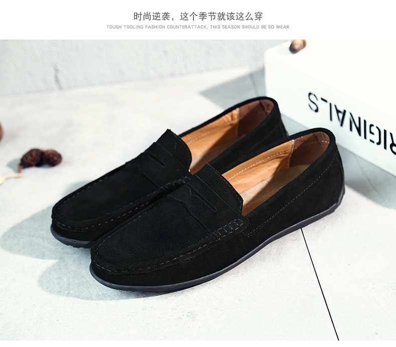 890 zapatos de los hombres de primavera y otoño zapatos de los guisantes zapatos de conducción de tamaño bajo de deslizamiento-En gamuza británica zapatos casuales planos transfronterizos
