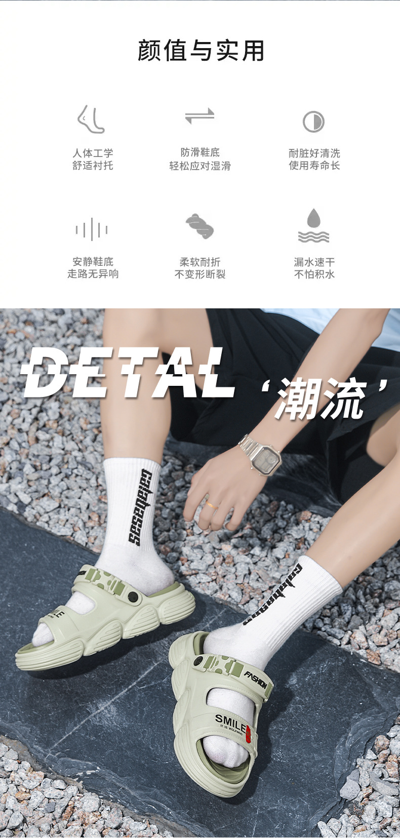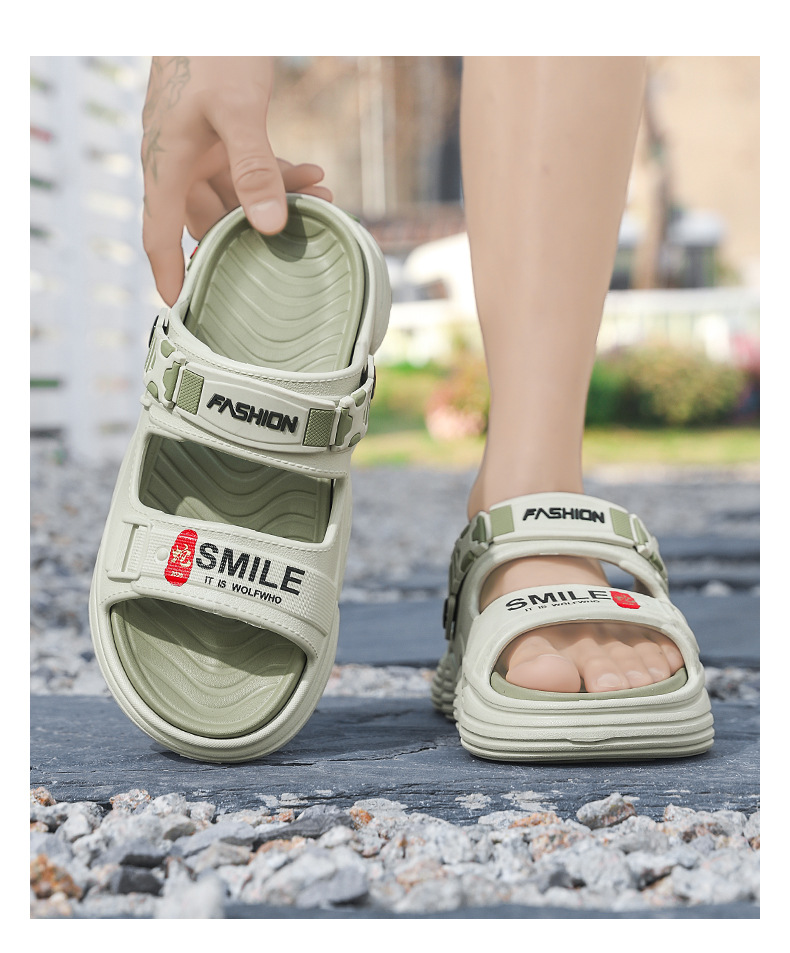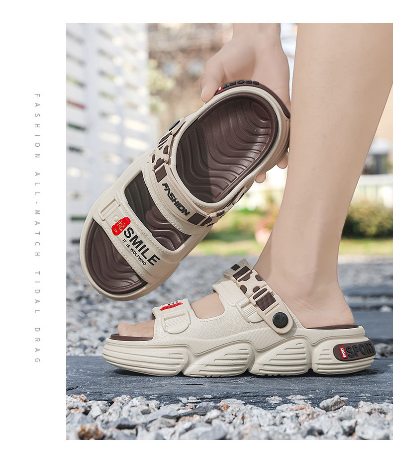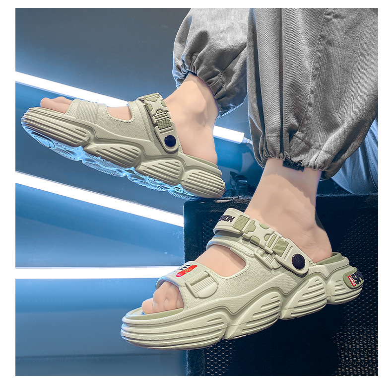 Sandalias de un solo carácter para uso de verano para hombres 2025 nuevo estilo antideslizante y resistente al desgaste