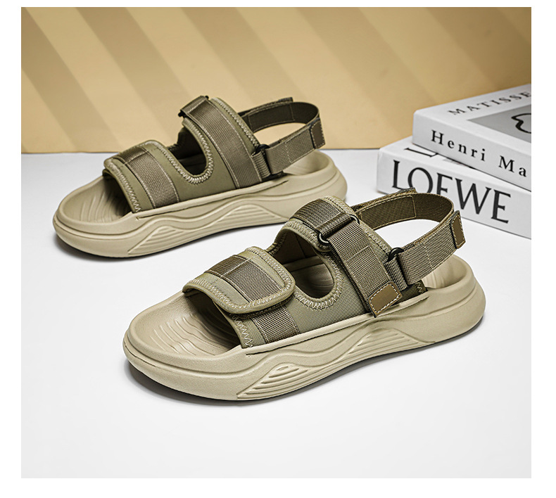 Sandalias de nuevo estilo para hombre, zapatos de playa de ocio deportivos de plataforma transpirables, zapatillas de color sólido antideslizantes al aire libre con velcro