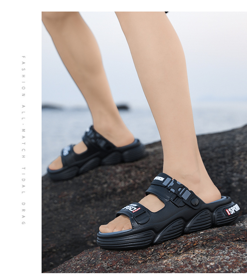 Pantuflas de verano para hombre nuevo estilo engrosado de un solo par de sandalias y zapatillas antideslizantes zapatos de playa de doble uso para deportes y ocio