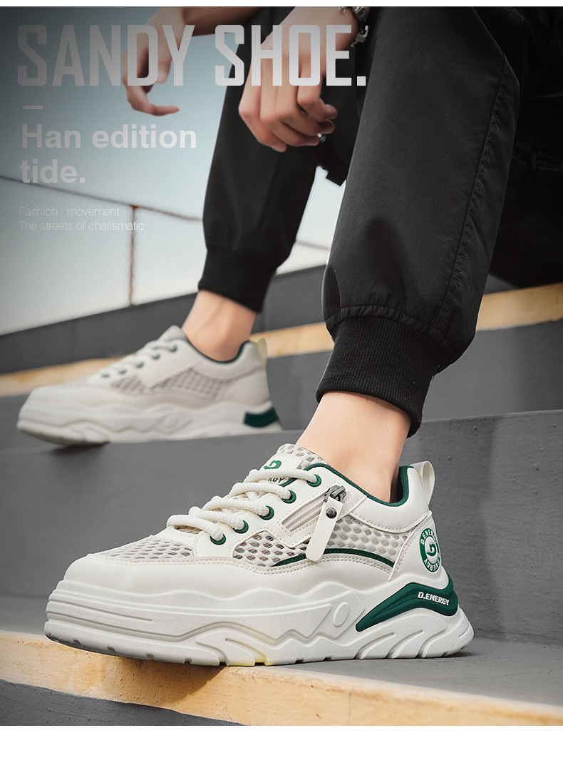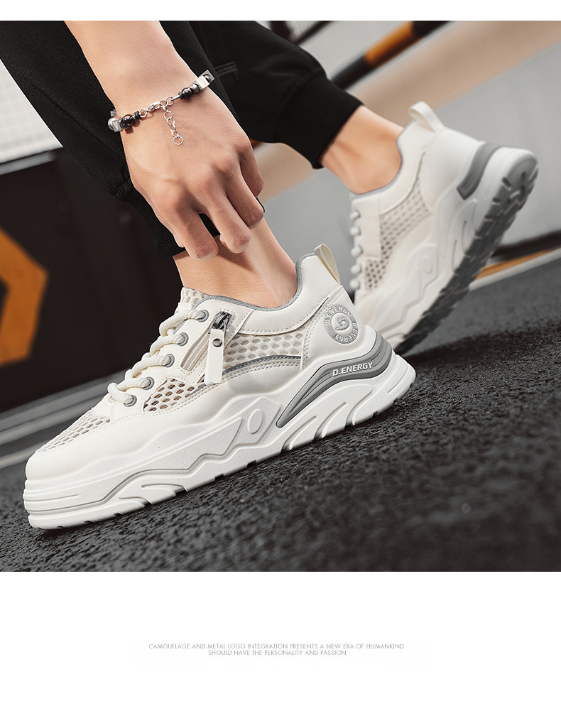 Zapatos de malla para hombre verano transpirables huecos diarios todo-fósforo casual suela gruesa a juego estilo deportivo nuevos zapatos de moda para hombre