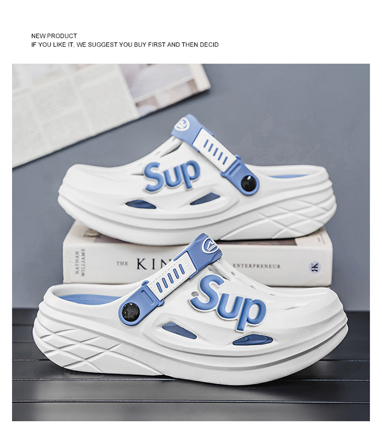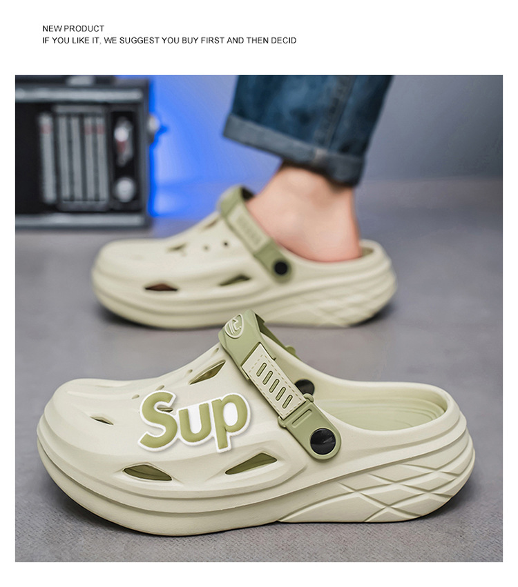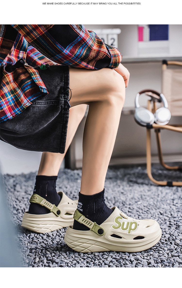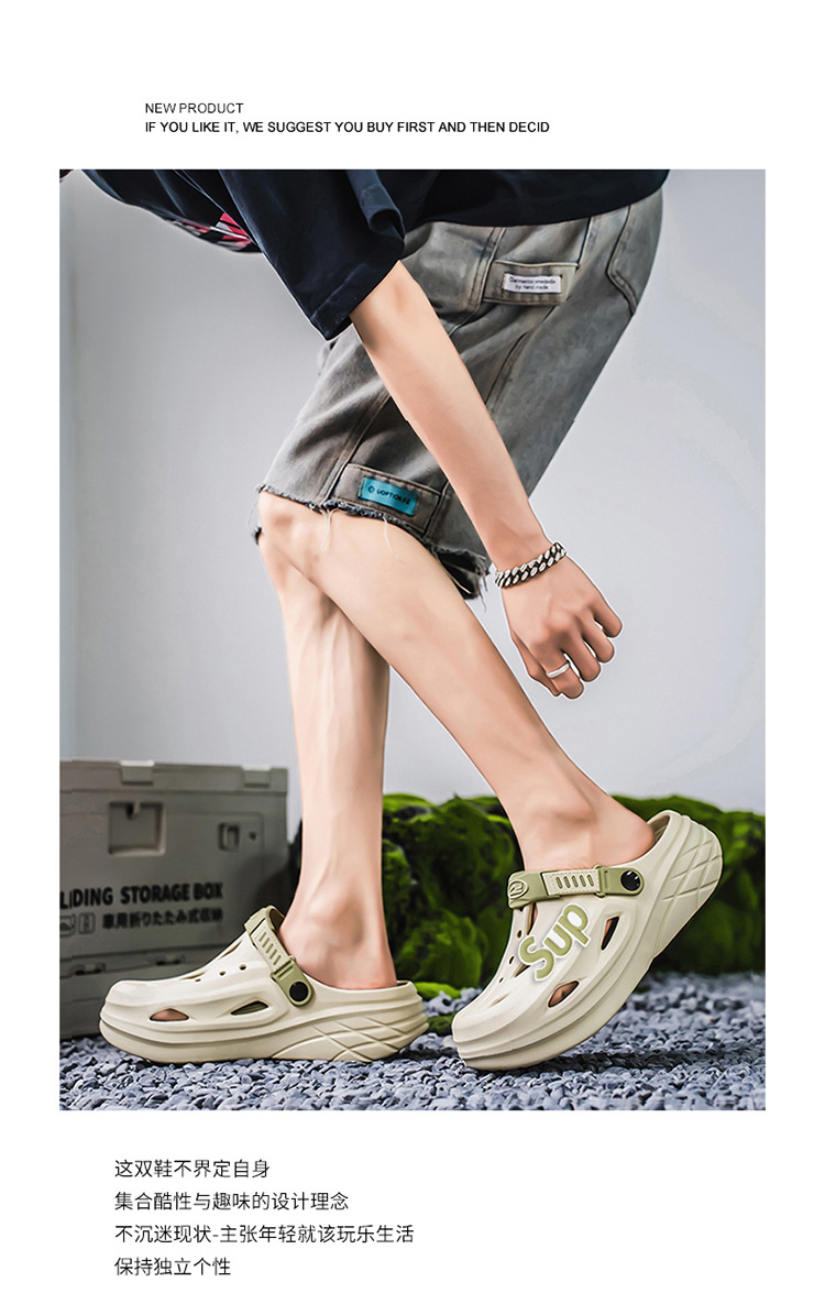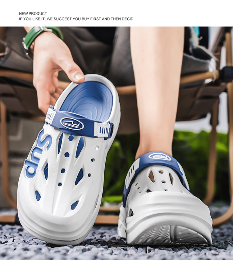 Pantuflas transfronterizas para hombres y mujeres, deportes de conducción, antideslizantes, Baotou, zapatos con agujeros de doble uso de plataforma de plataforma de arena de talla grande