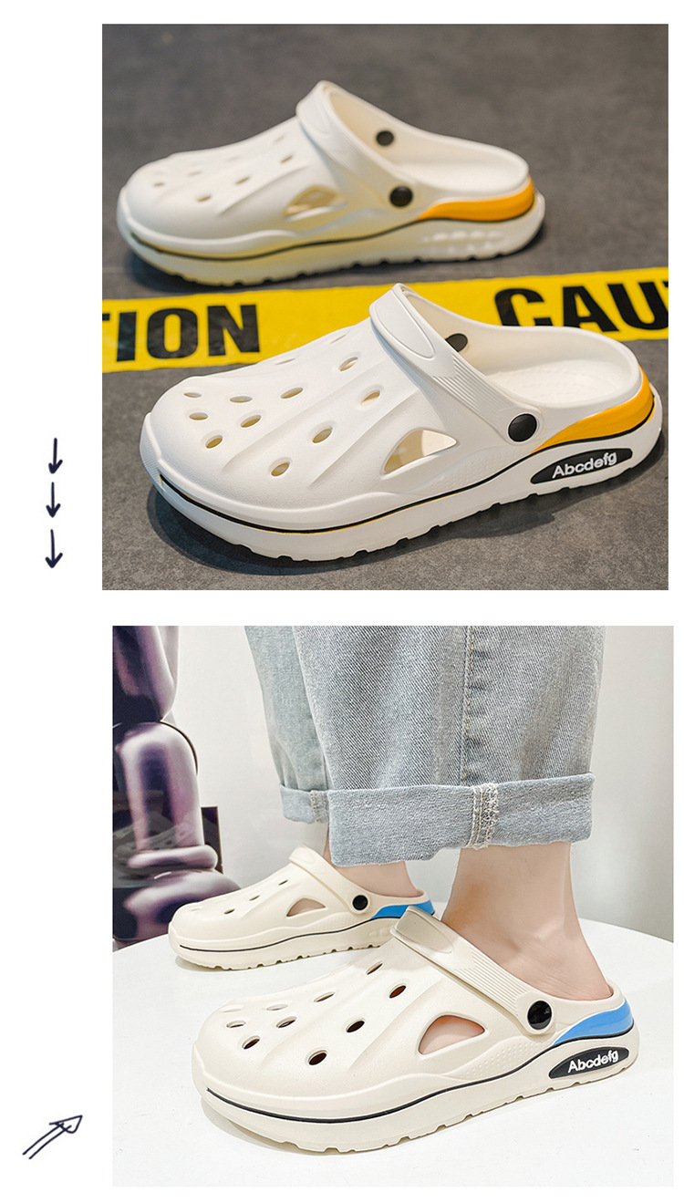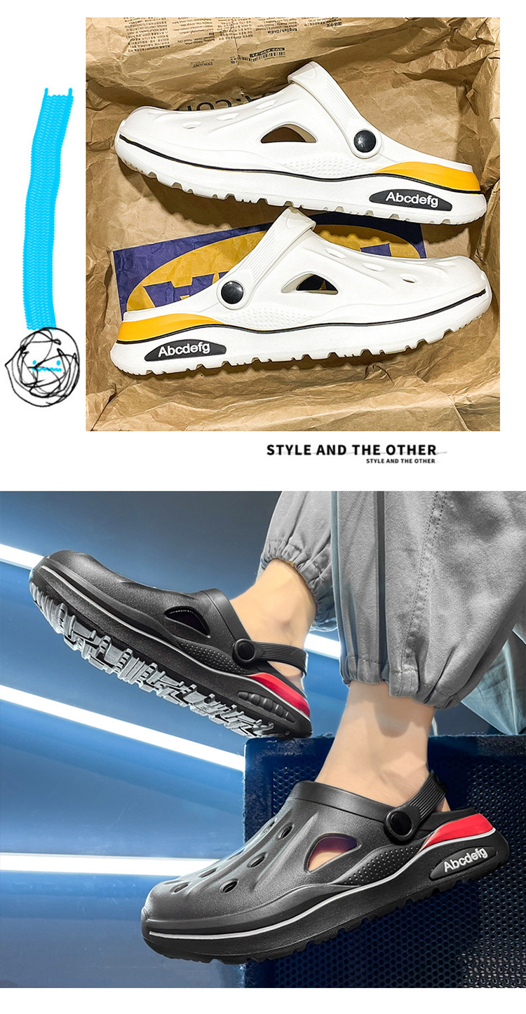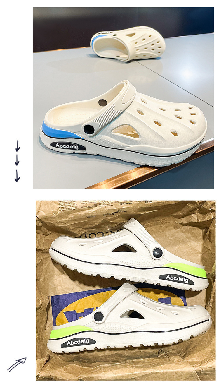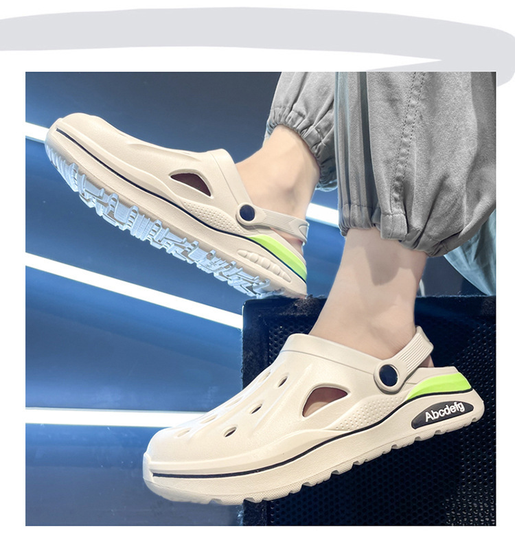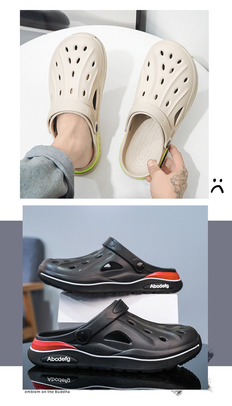 2025 verano zapatos con agujeros de gran tamaño para hombres sandalias casuales antideslizantes de suela suave para uso exterior, conducción resistente al desgaste, pantuflas Baotou en la playa