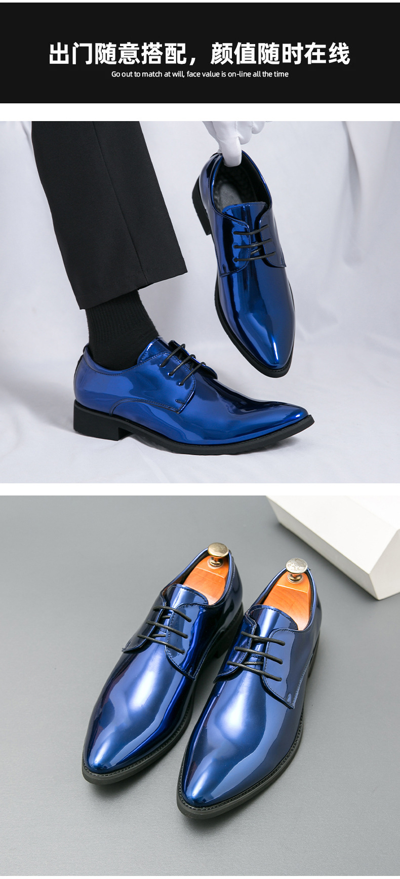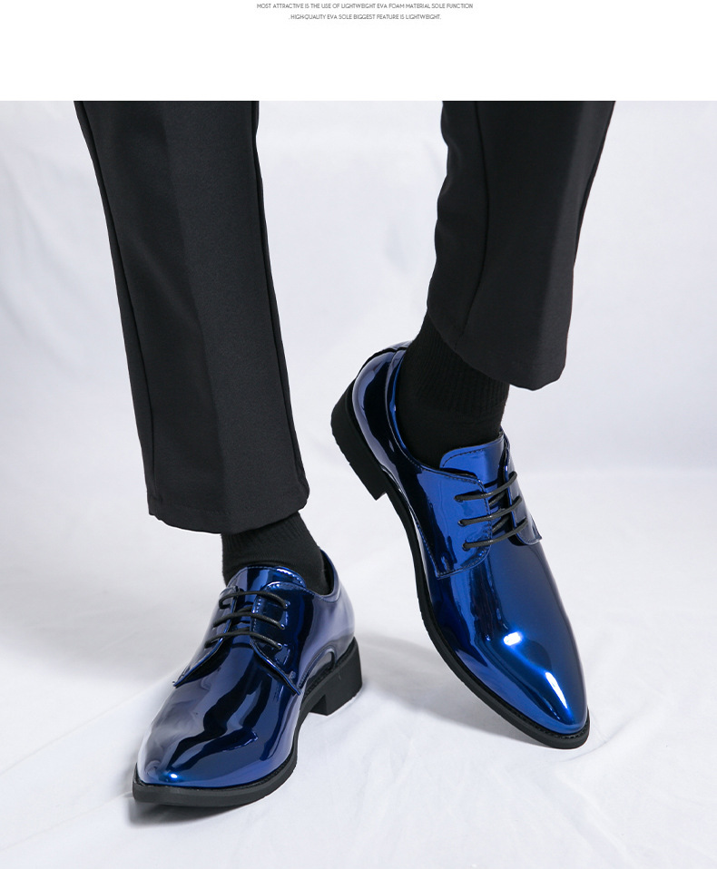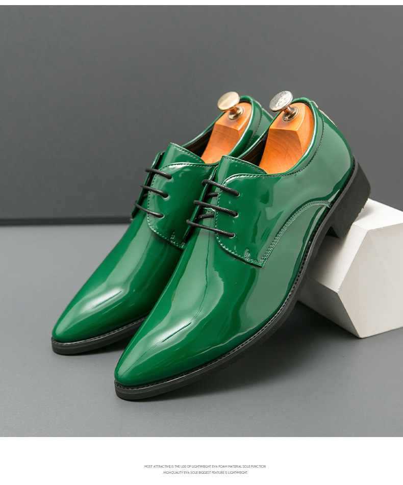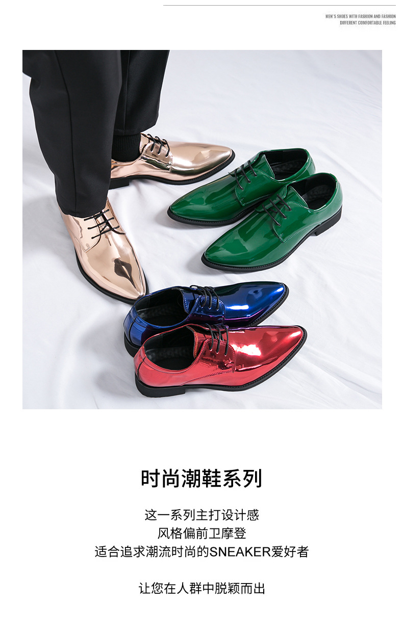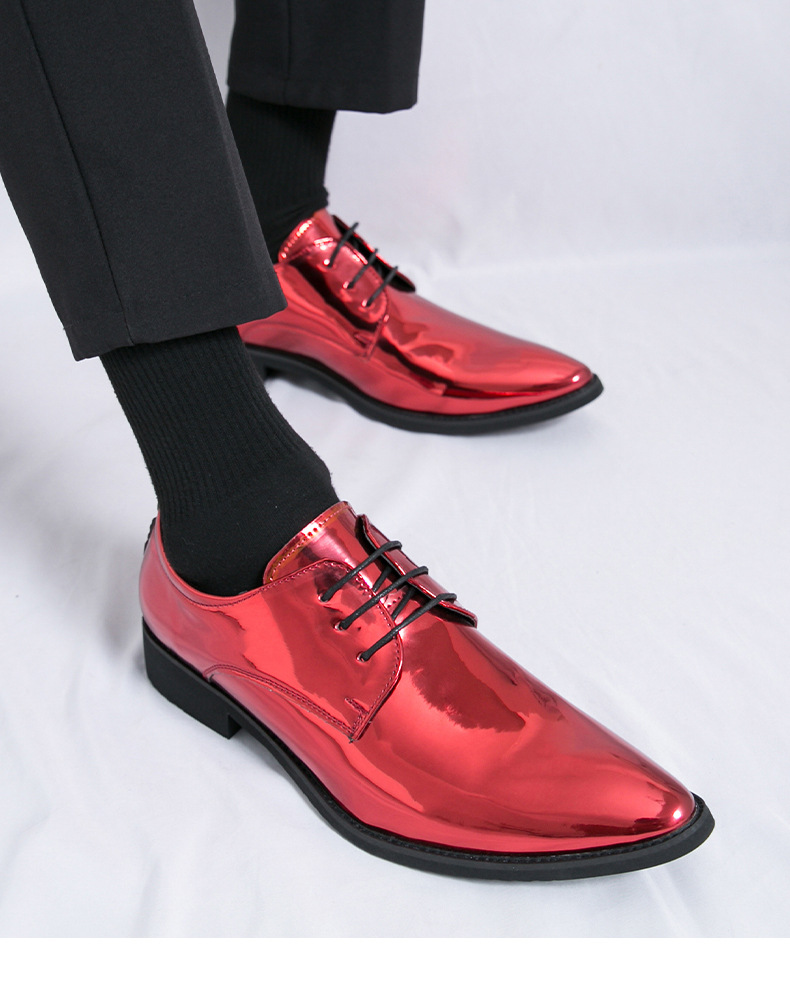Zapatos de cuero con cordones puntiagudos brillantes para hombres, zapatos derby para banquetes de discoteca de moda para hombres, zapatos dorados para hombres, aumento de talla grande para jóvenes