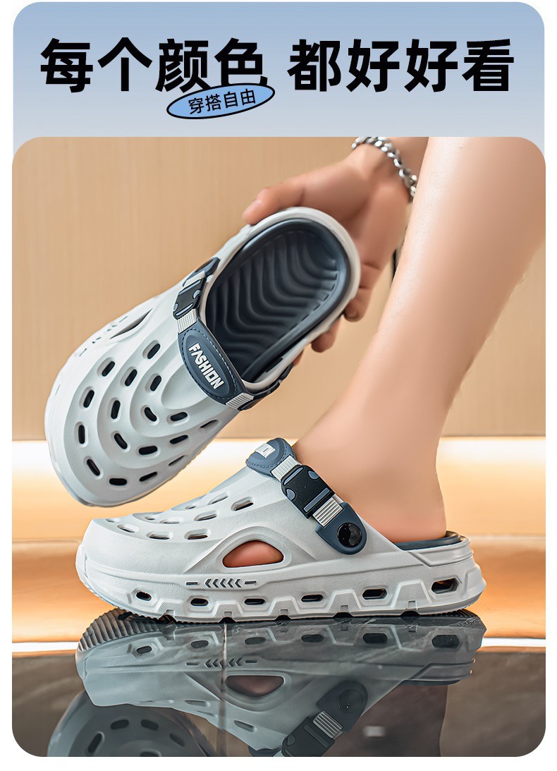 En nombre de los zapatos con agujeros para el cabello, las nuevas sandalias de Baotou transpirables de verano para hombres, zapatos de playa casuales antideslizantes, zapatos Shuoxi a la deriva