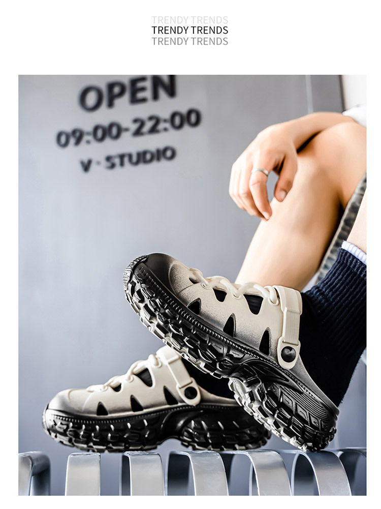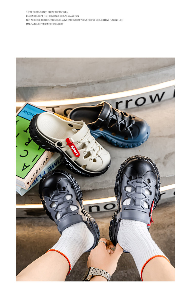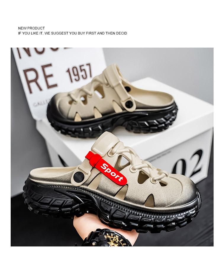Zapatos con agujeros estilo pareja nuevo verano al aire libre para conducir suela gruesa para aumentar la playa zapatos con agujeros antideslizantes para hombres