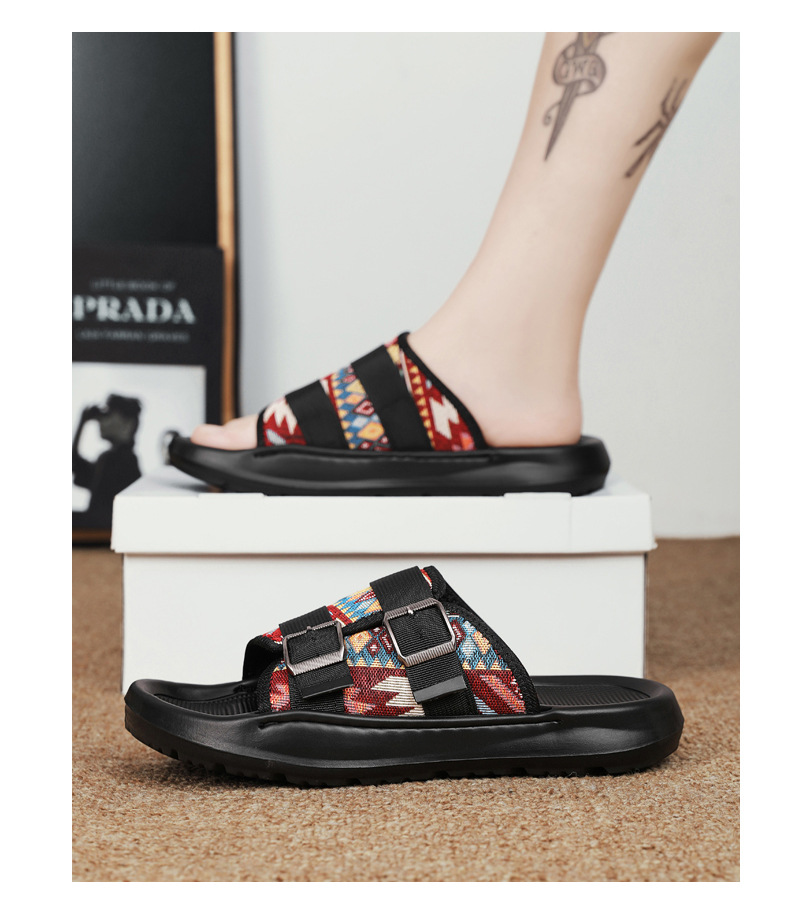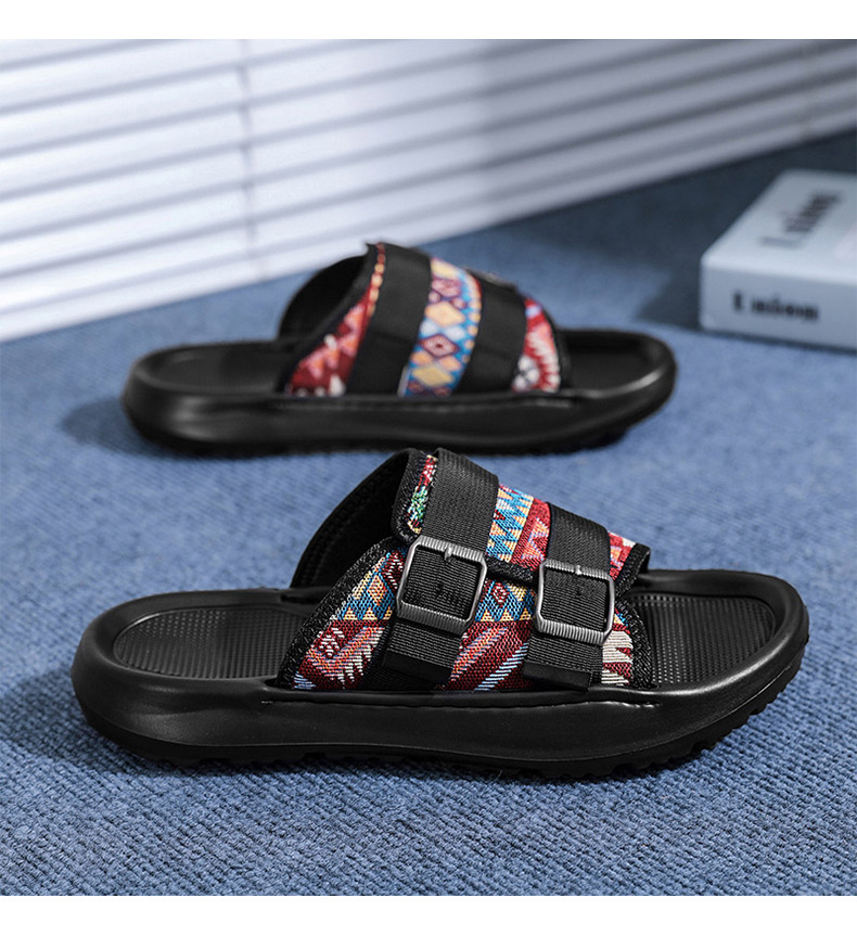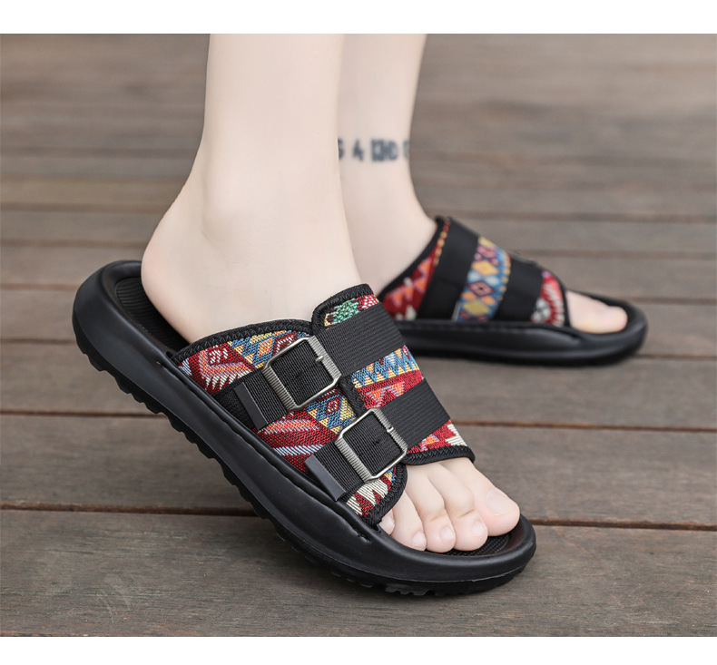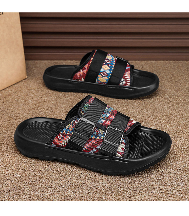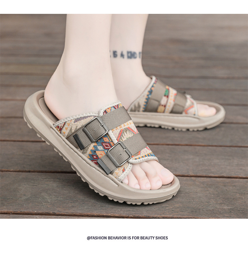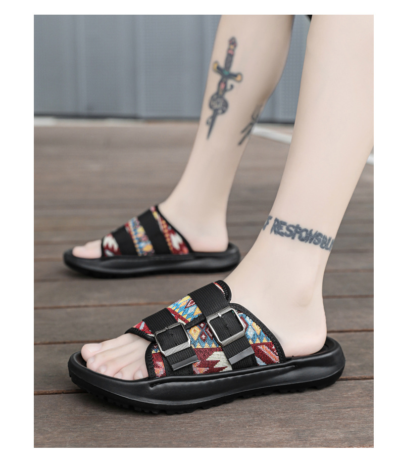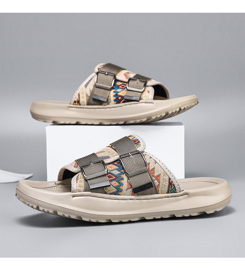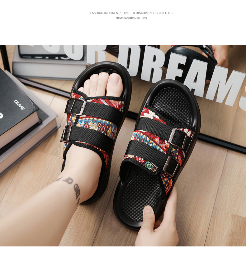 Zapatillas ropa exterior para hombres verano nuevo estilo tendencia transpirable playa al aire libre tela de ocio fondo plano pisando heces sandalias para hombres