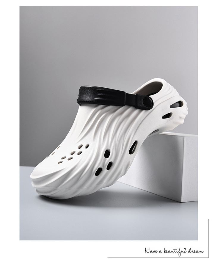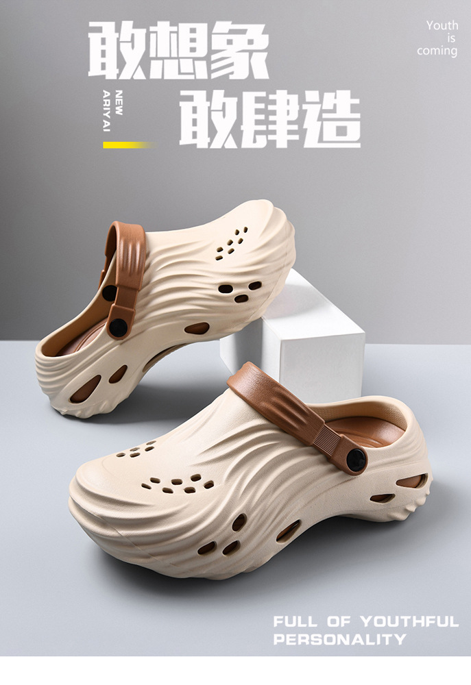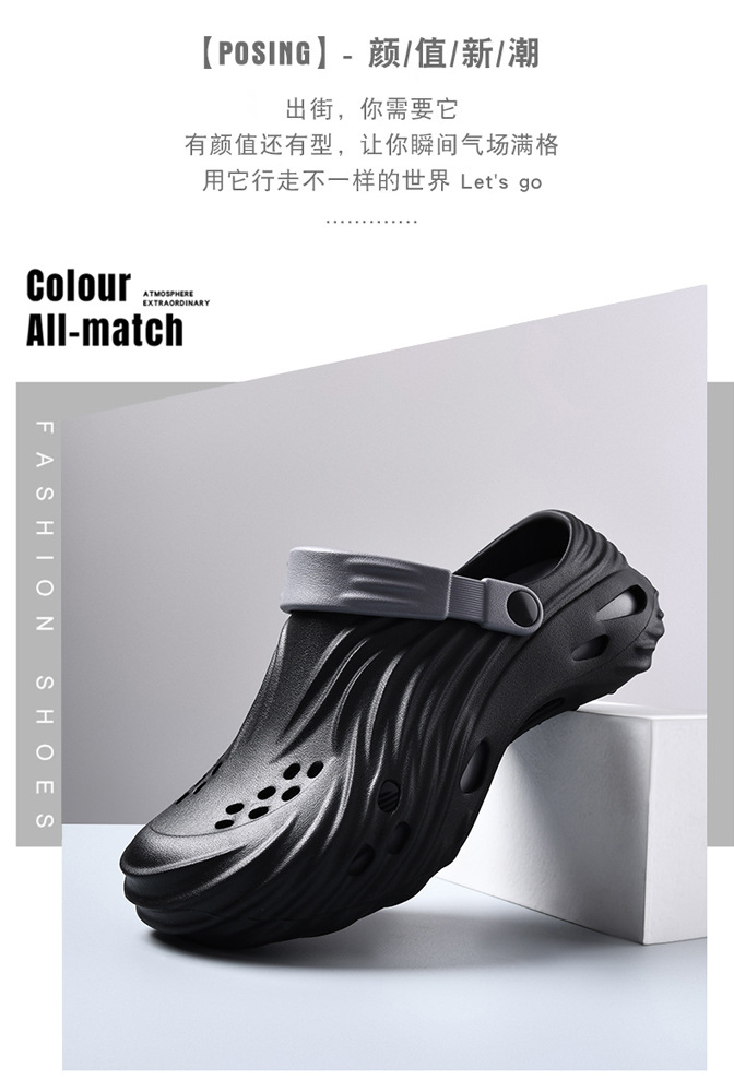 2025 verano nuevo estilo de los hombres para llevar zapatos con agujeros de doble uso, sandalias y zapatillas de playa de suela gruesa para parejas de verano