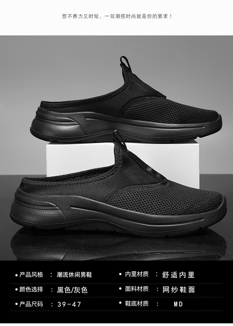 Comercio exterior transfronterizo de gran tamaño en nombre de la red de turismo al aire libre, todo negro, medio arrastre, zapatos casuales de gran tamaño, zapatillas ligeras de suela suave para hombres