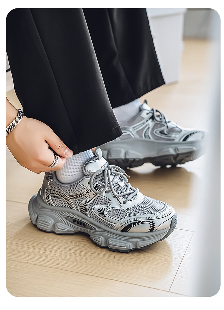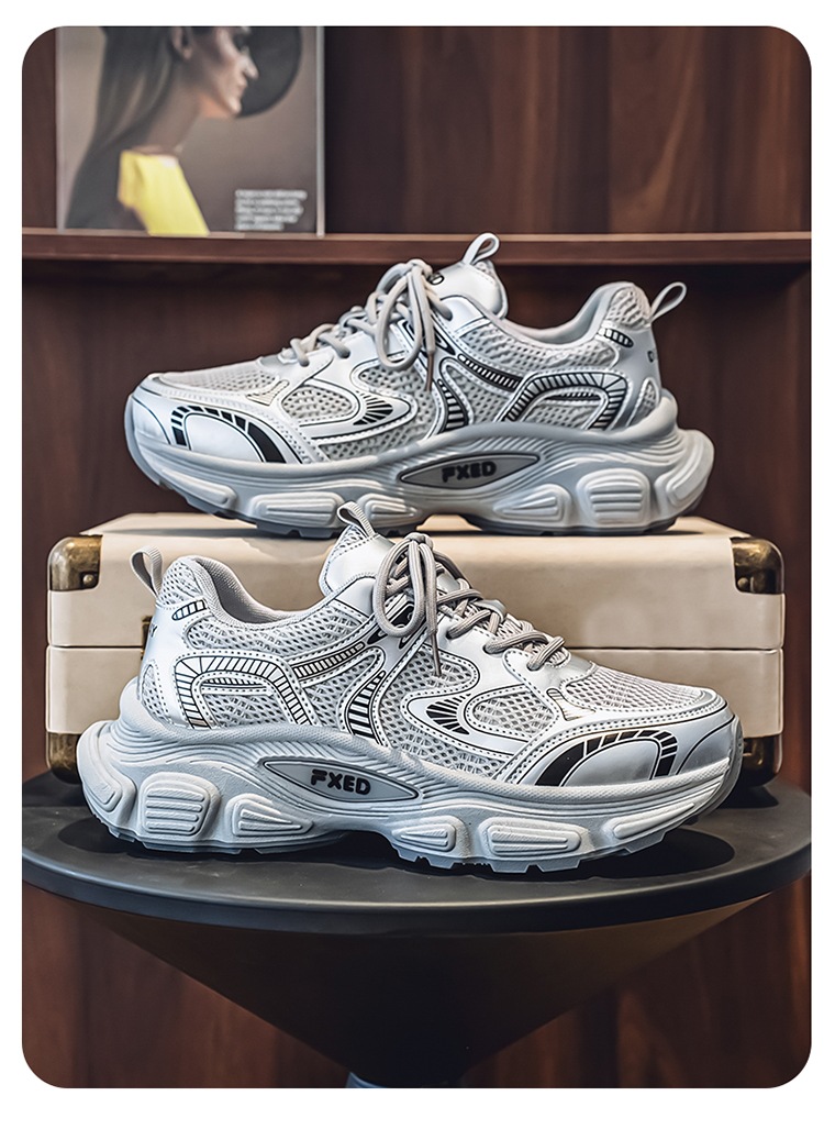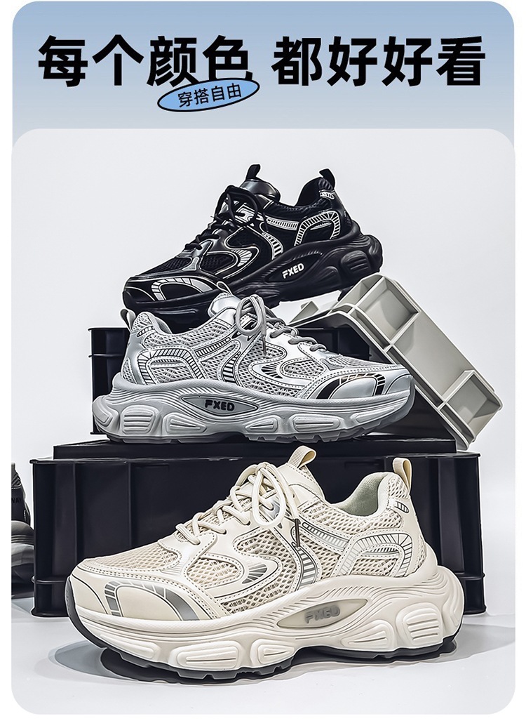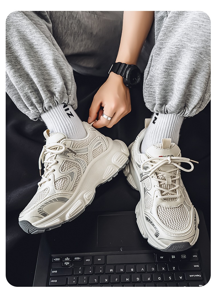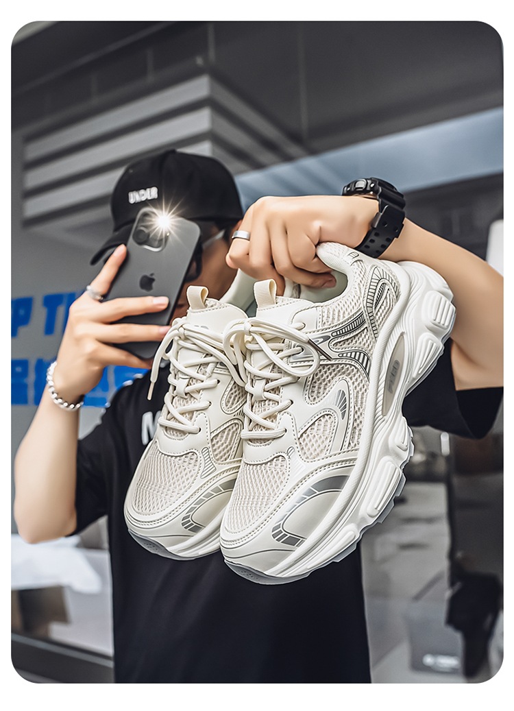 Papá zapatos hombres 2025 verano cómodos zapatos deportivos para correr zapatos de suela gruesa para estudiantes zapatos casuales de malla de moda