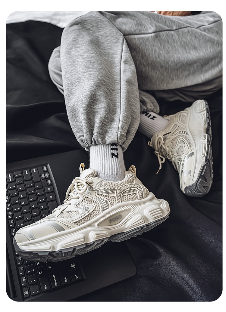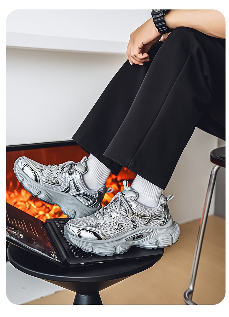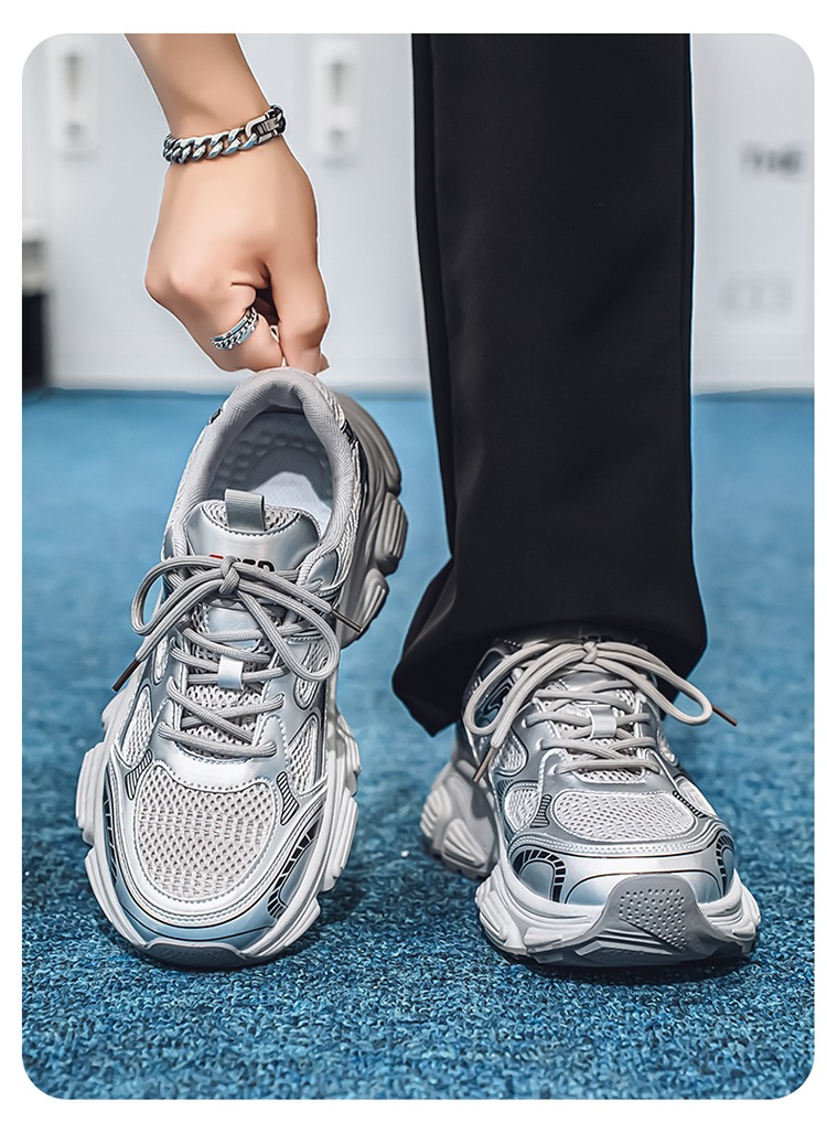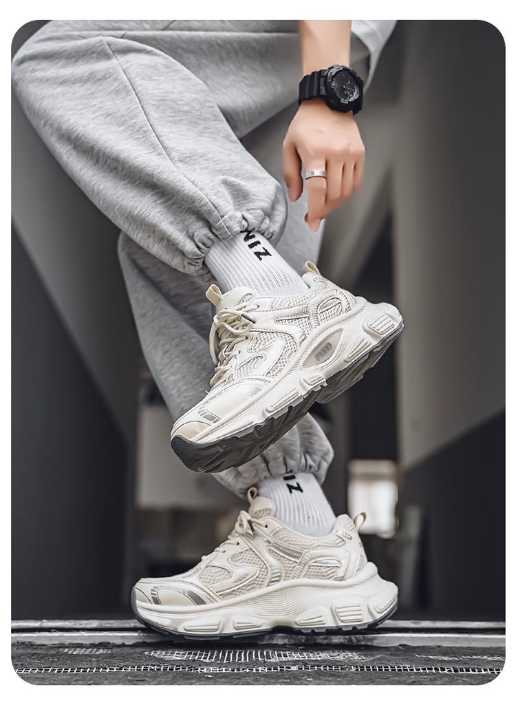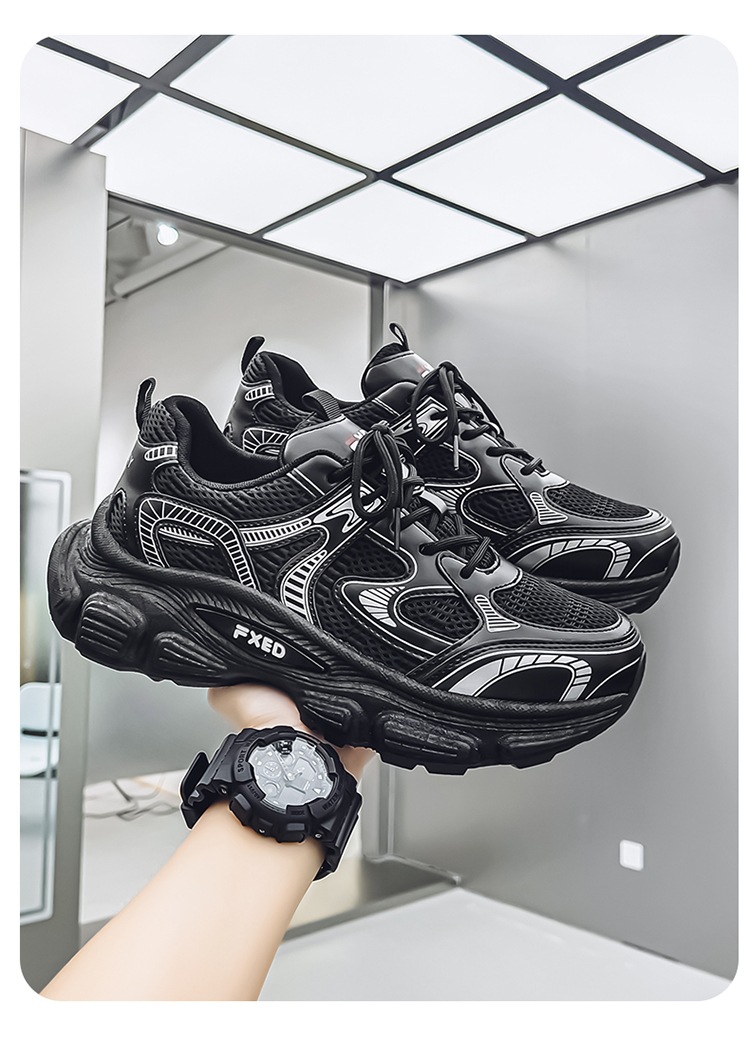 Papá zapatos hombres 2025 verano cómodos zapatos deportivos para correr zapatos de suela gruesa para estudiantes zapatos casuales de malla de moda