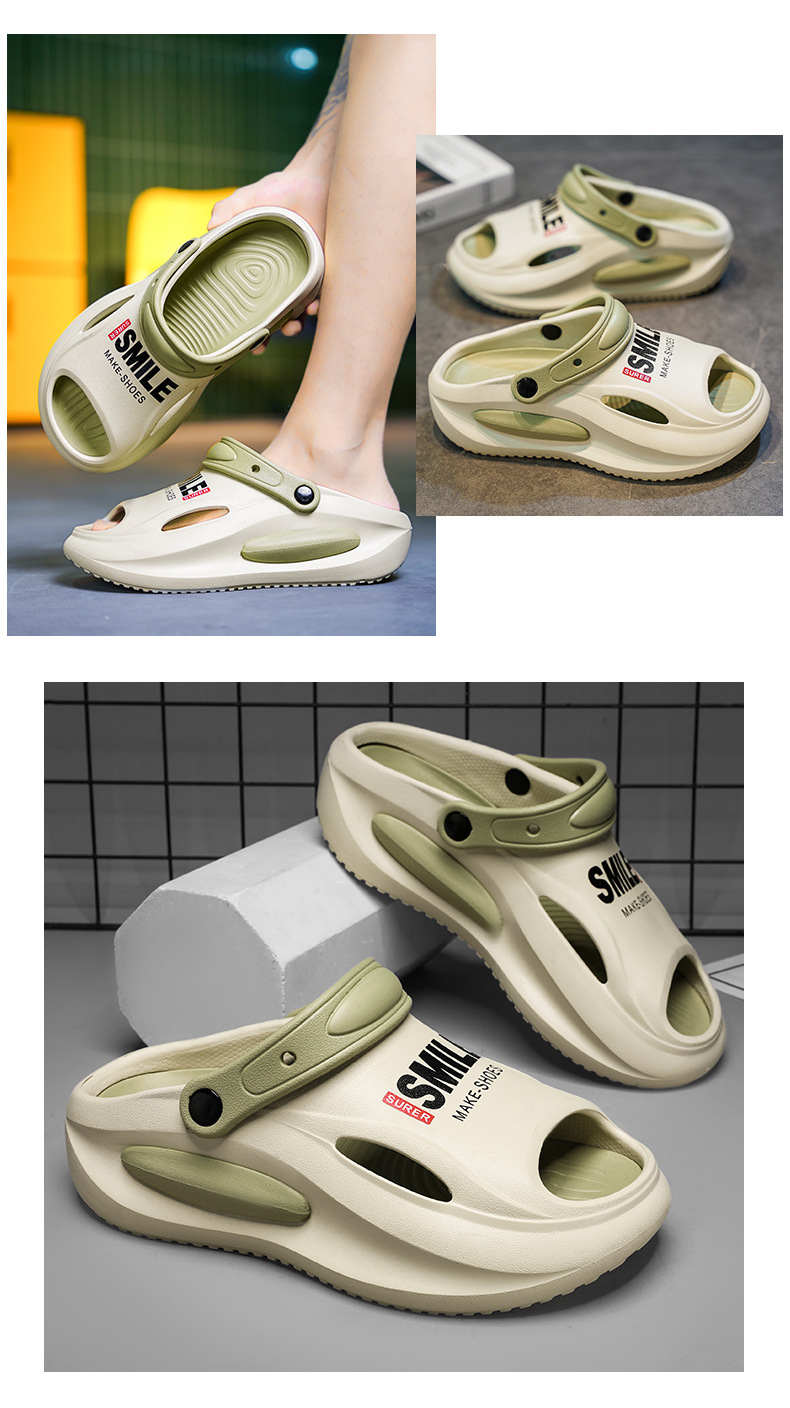 En nombre de las sandalias y pantuflas para hombres y mujeres, los estudiantes de verano EVA pisando mierda, suelas gruesas, uso externo, conducir sandalias y pantuflas transfronterizas