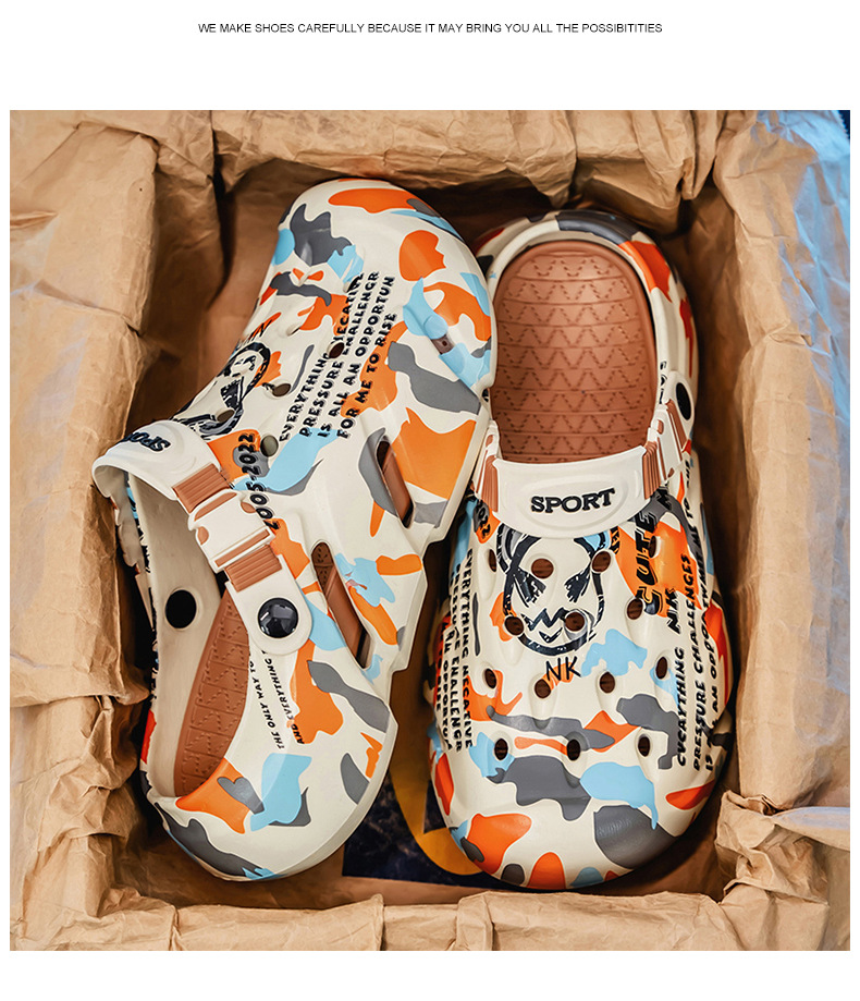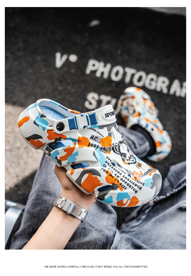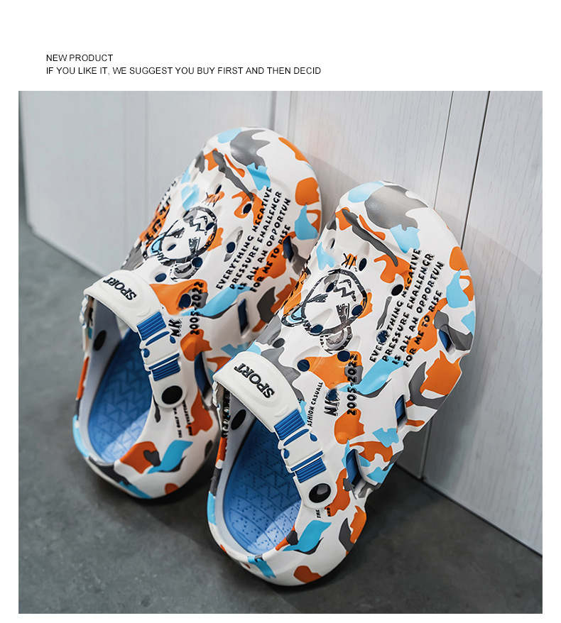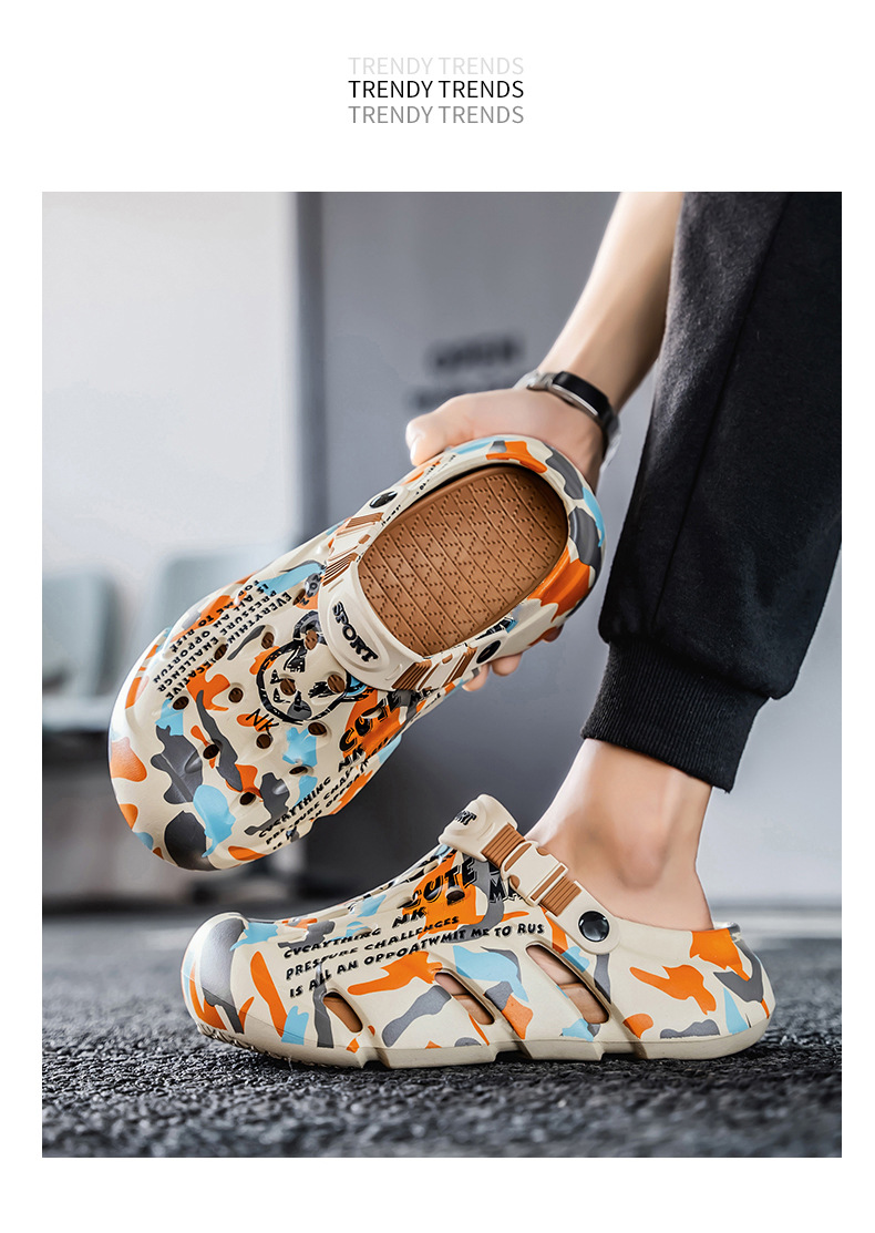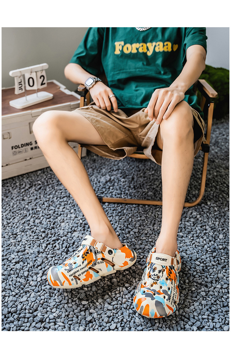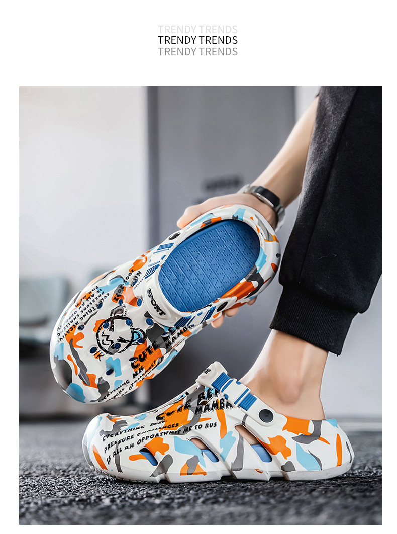 Zapatos con agujeros para hombres nuevo estilo verano al aire libre graffiti Baotou sandalias antideslizantes EVA pisando la mierda sandalias y zapatillas Sandals