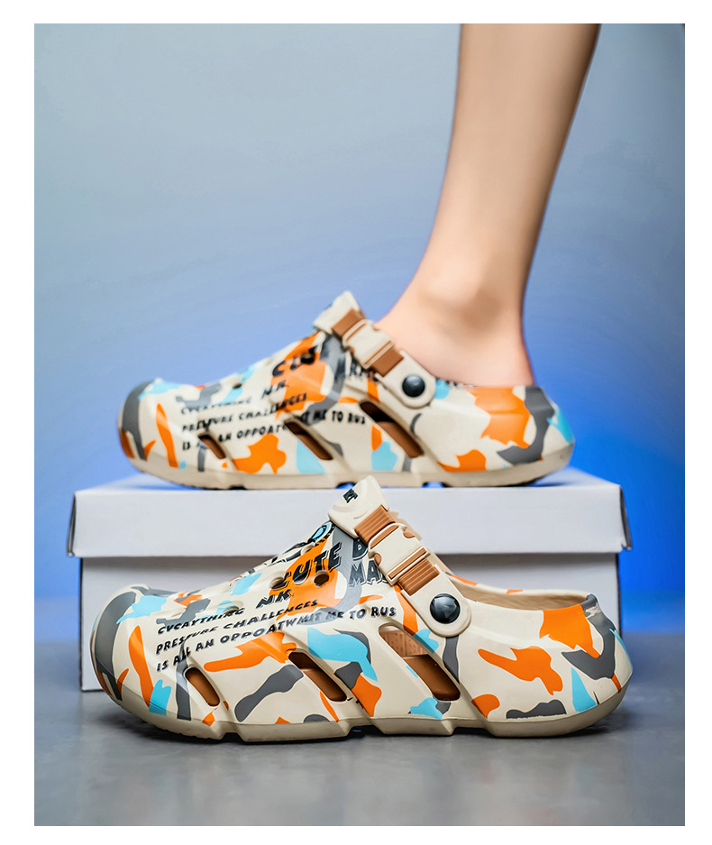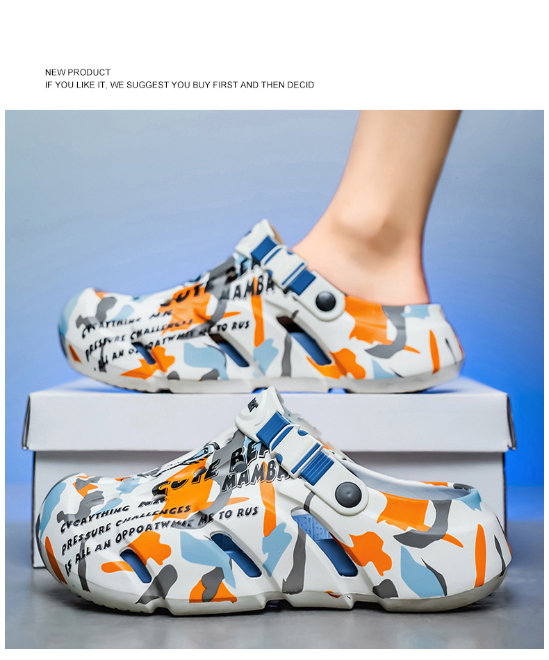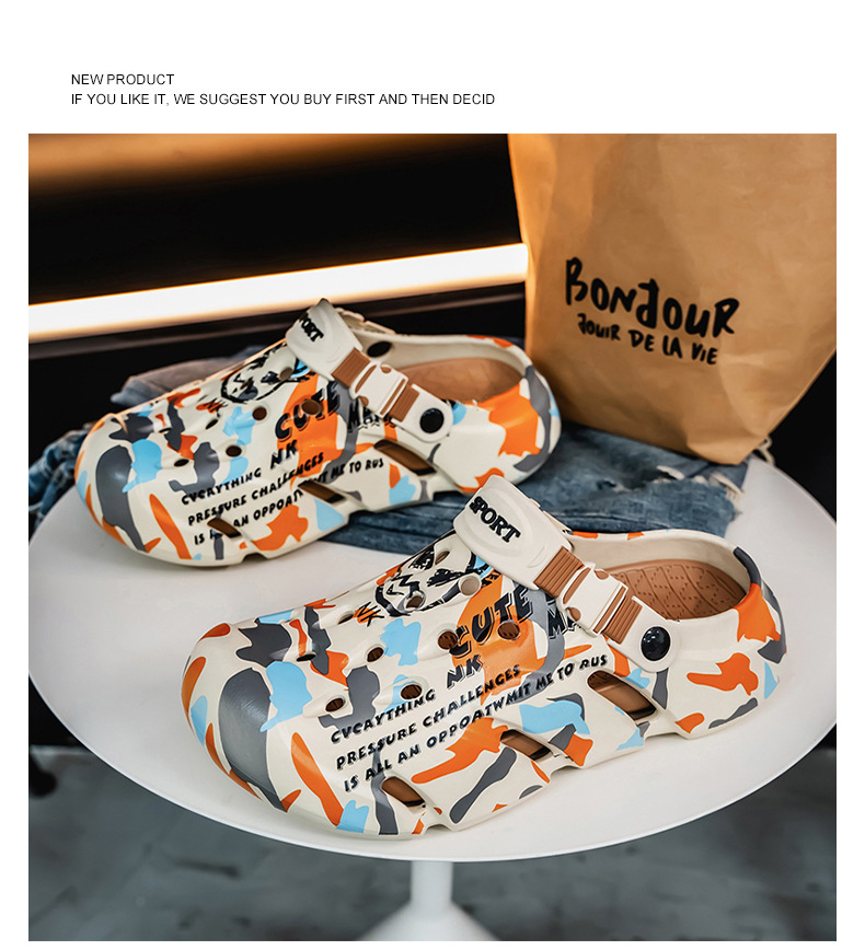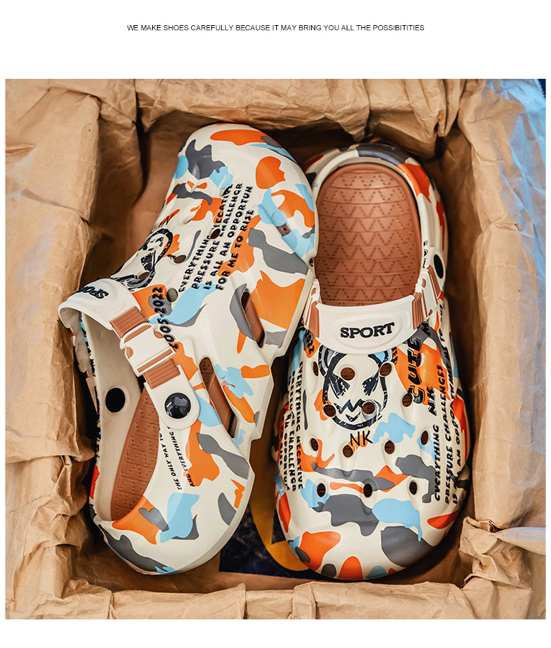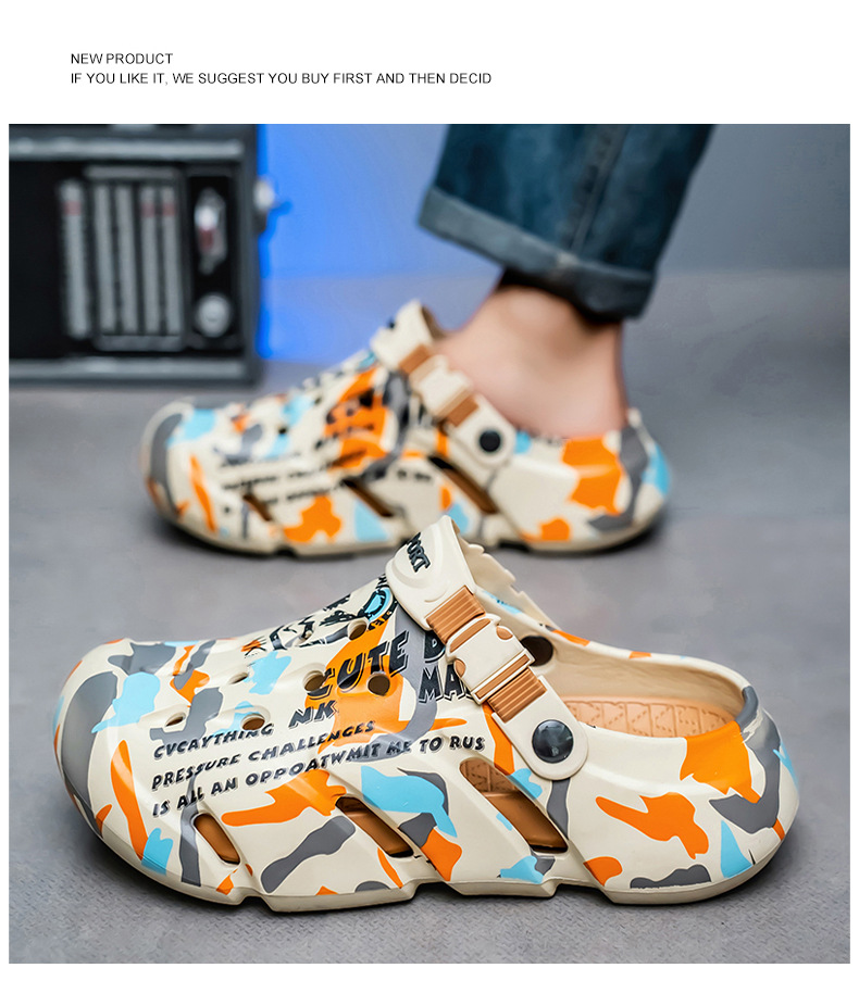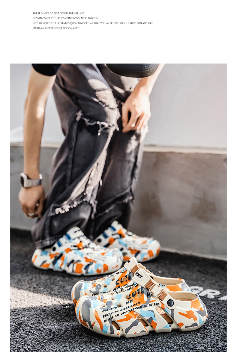 Zapatos con agujeros para hombres nuevo estilo verano al aire libre graffiti Baotou sandalias antideslizantes EVA pisando la mierda sandalias y zapatillas Sandals