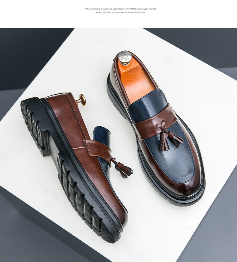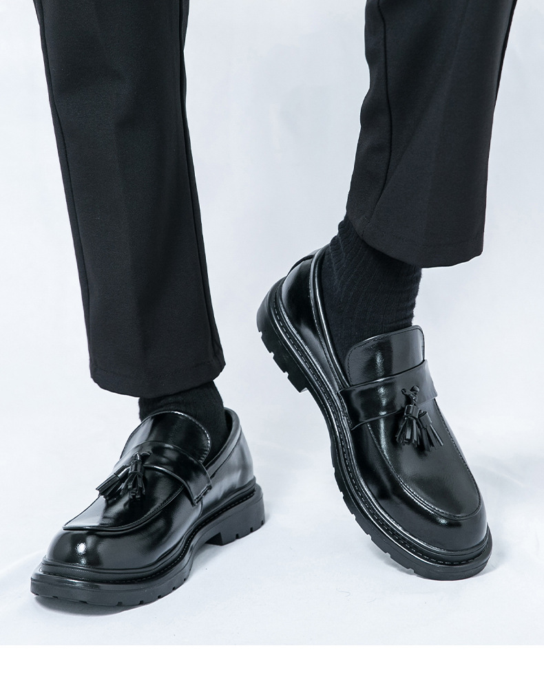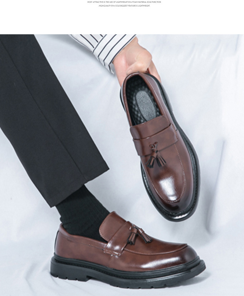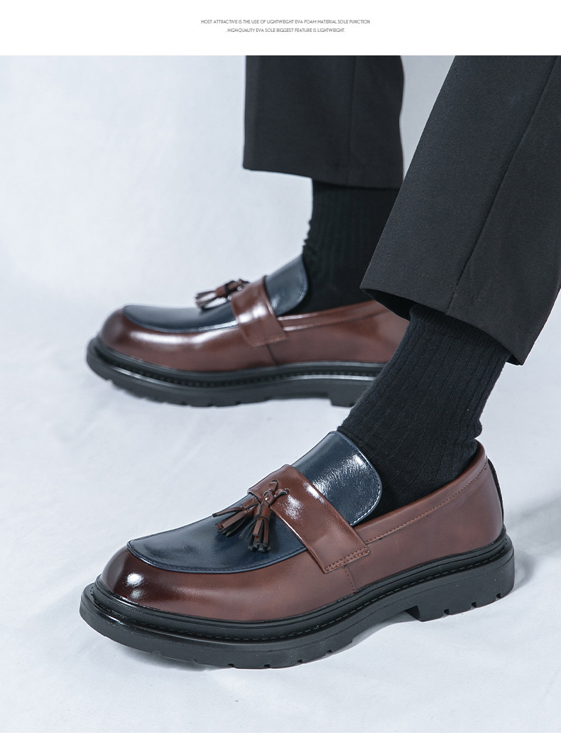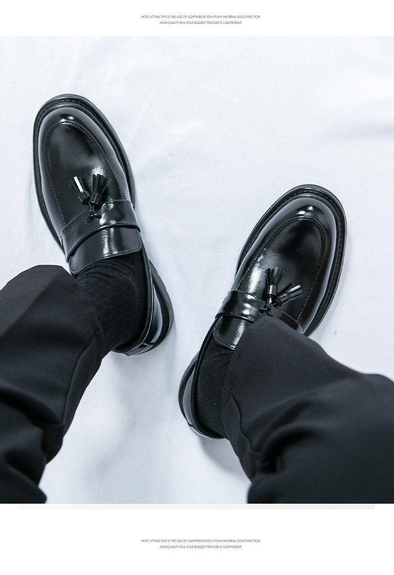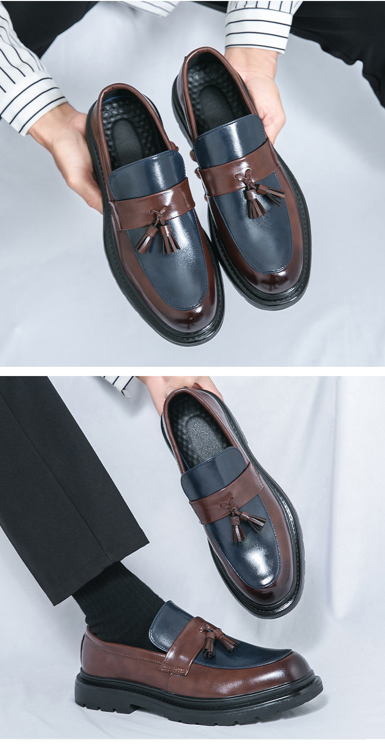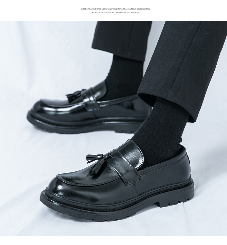 Zapatos de negocios transfronterizos de comercio exterior para hombres con borlas, zapatos de música 2025 primavera y otoño nuevos zapatos de cuero casuales de un solo pedal para hombres