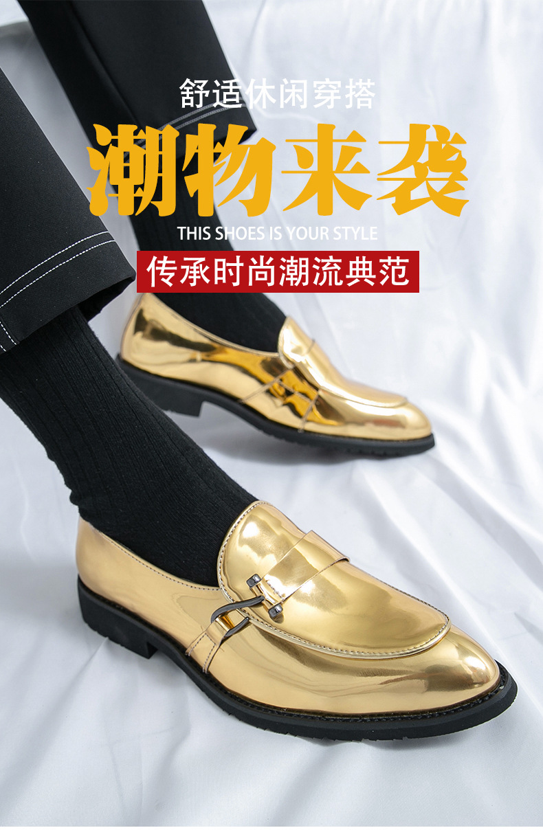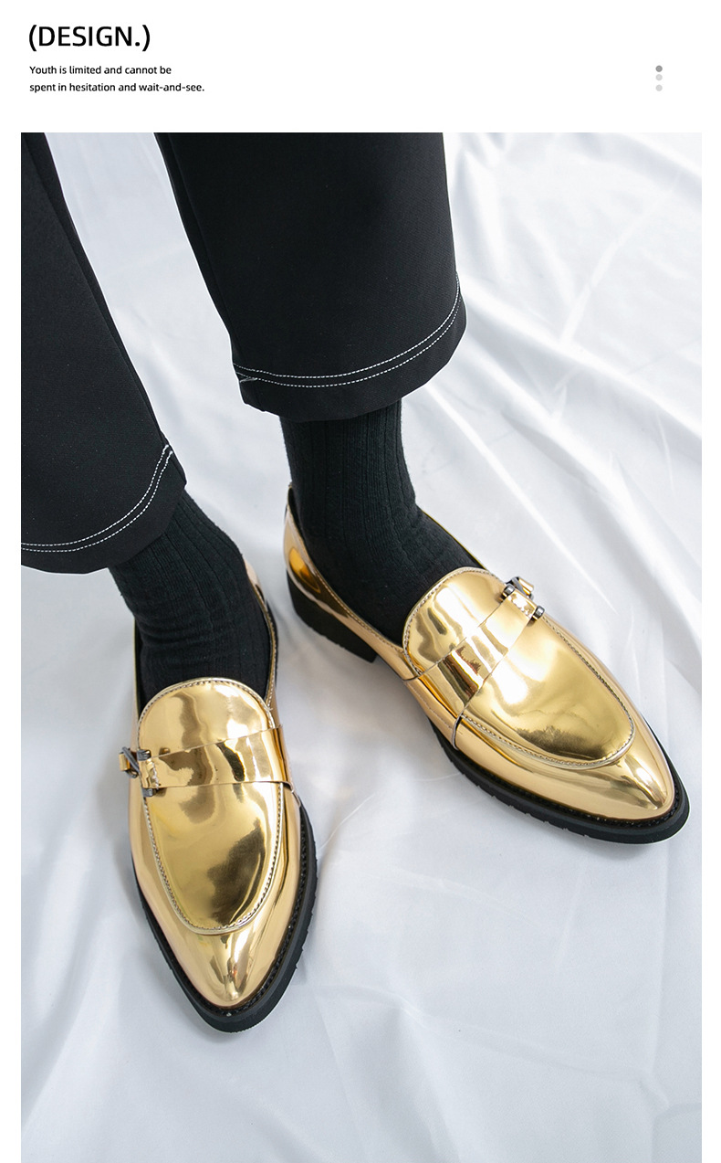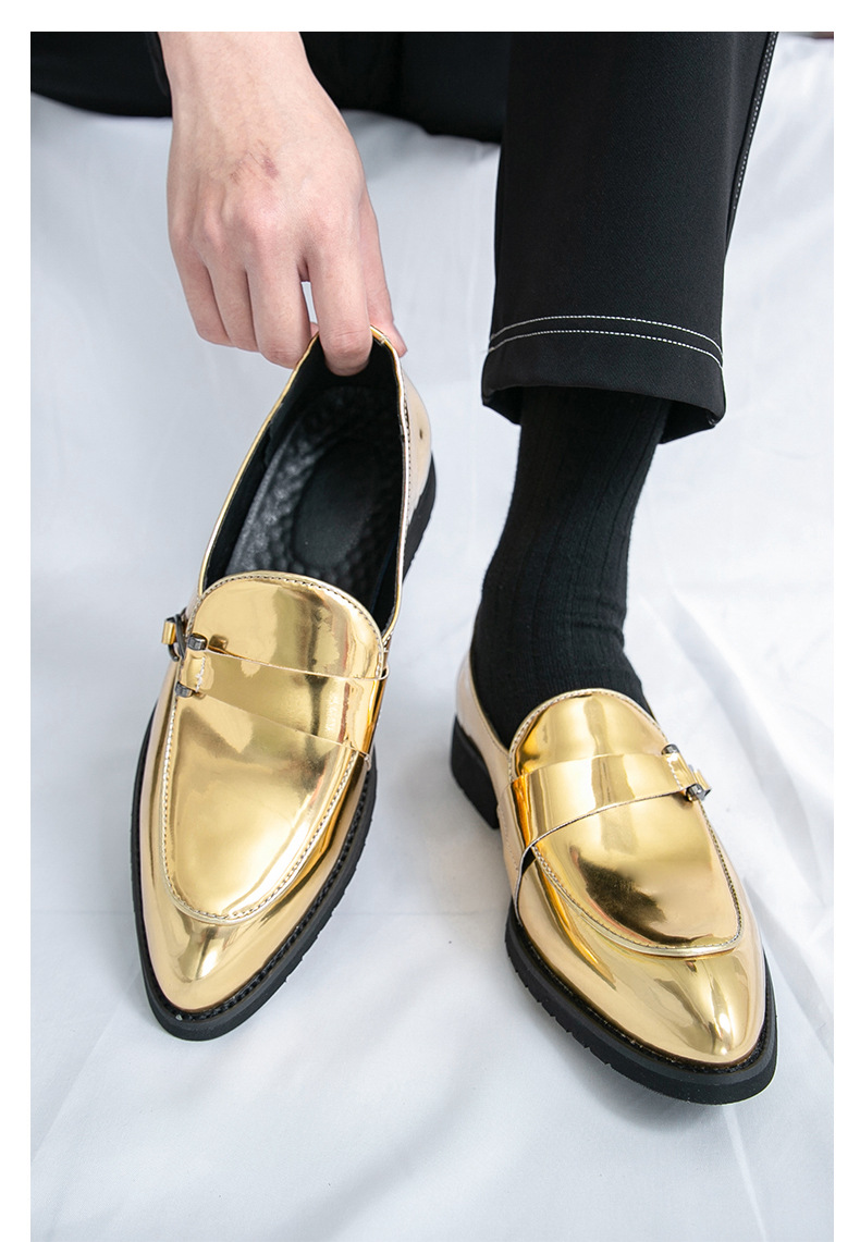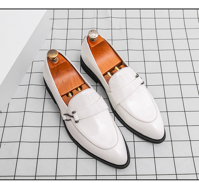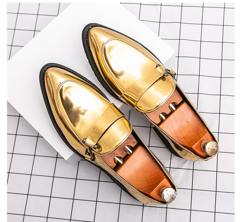 Zapatos Lefu de charol brillante transfronterizo de gran tamaño para hombre, zapatos de cuero puntiagudos, zapatos de hombre, zapatos de cuero blanco dorado 38-46