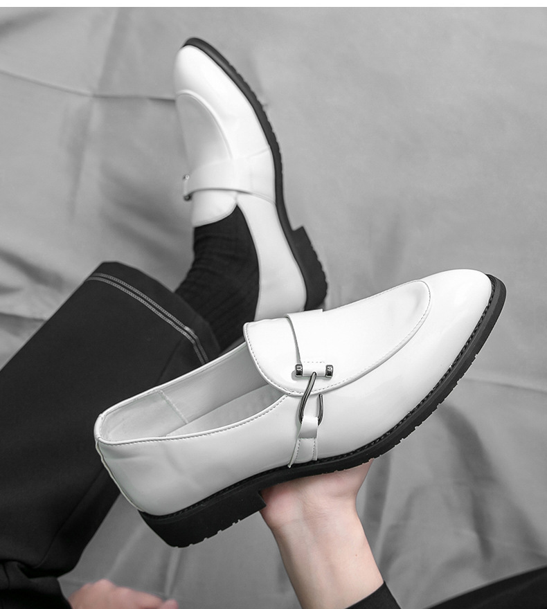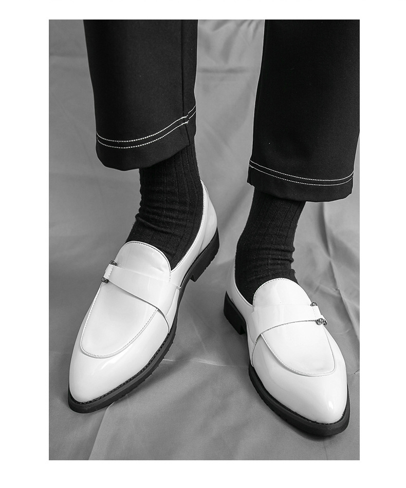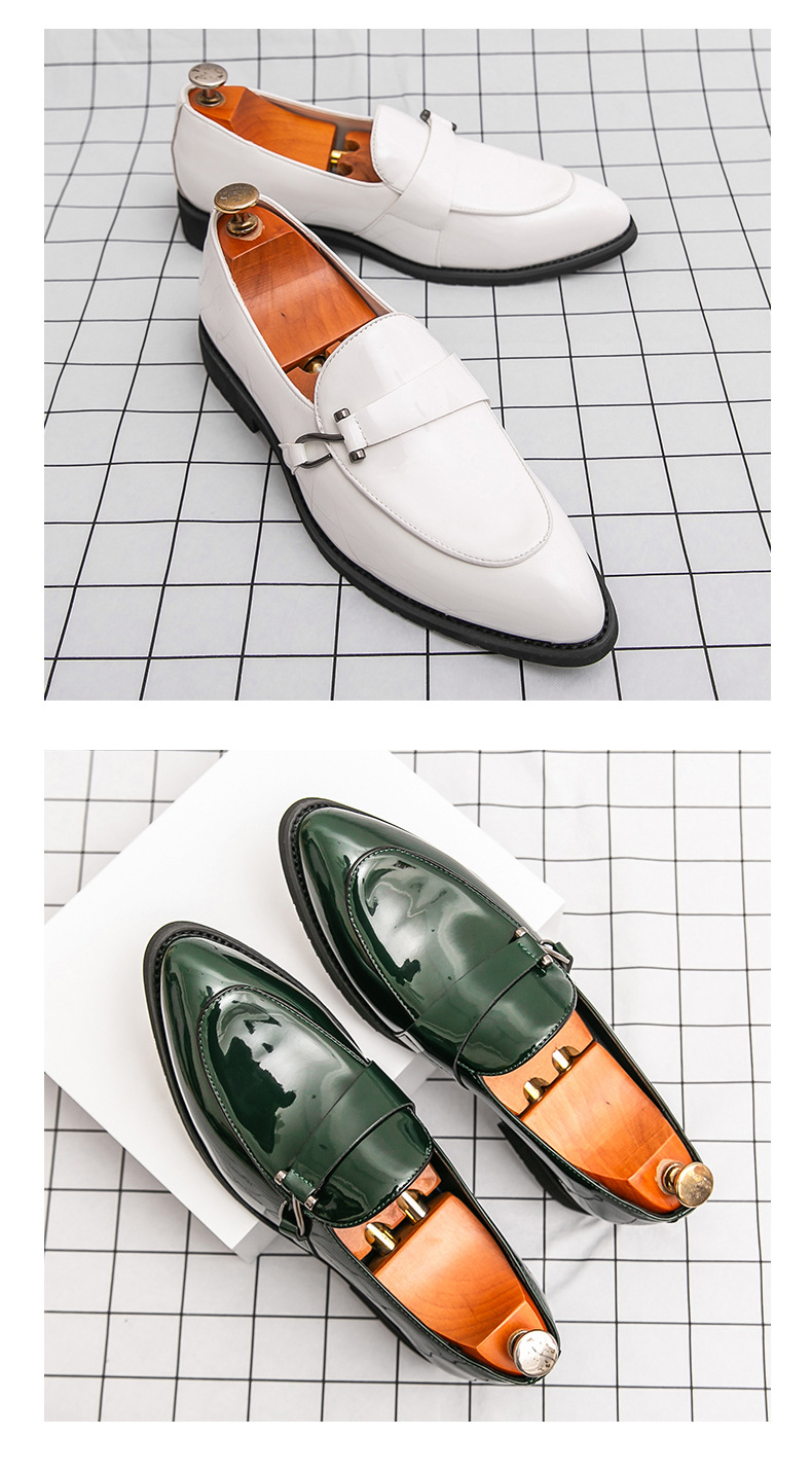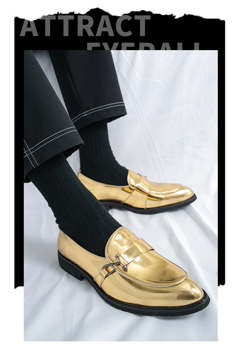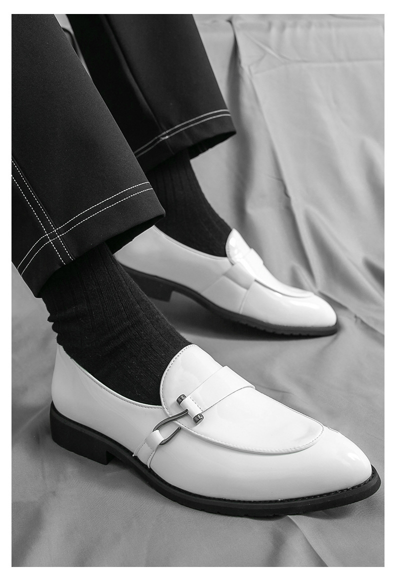 Zapatos Lefu de charol brillante transfronterizo de gran tamaño para hombre, zapatos de cuero puntiagudos, zapatos de hombre, zapatos de cuero blanco dorado 38-46