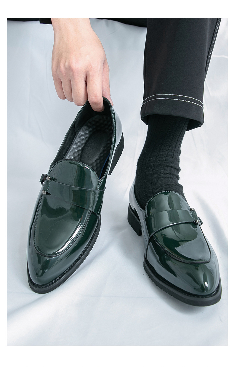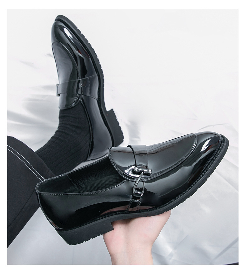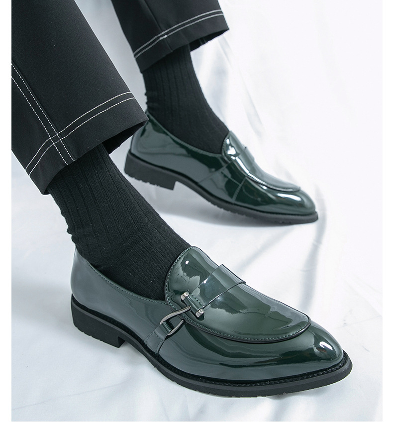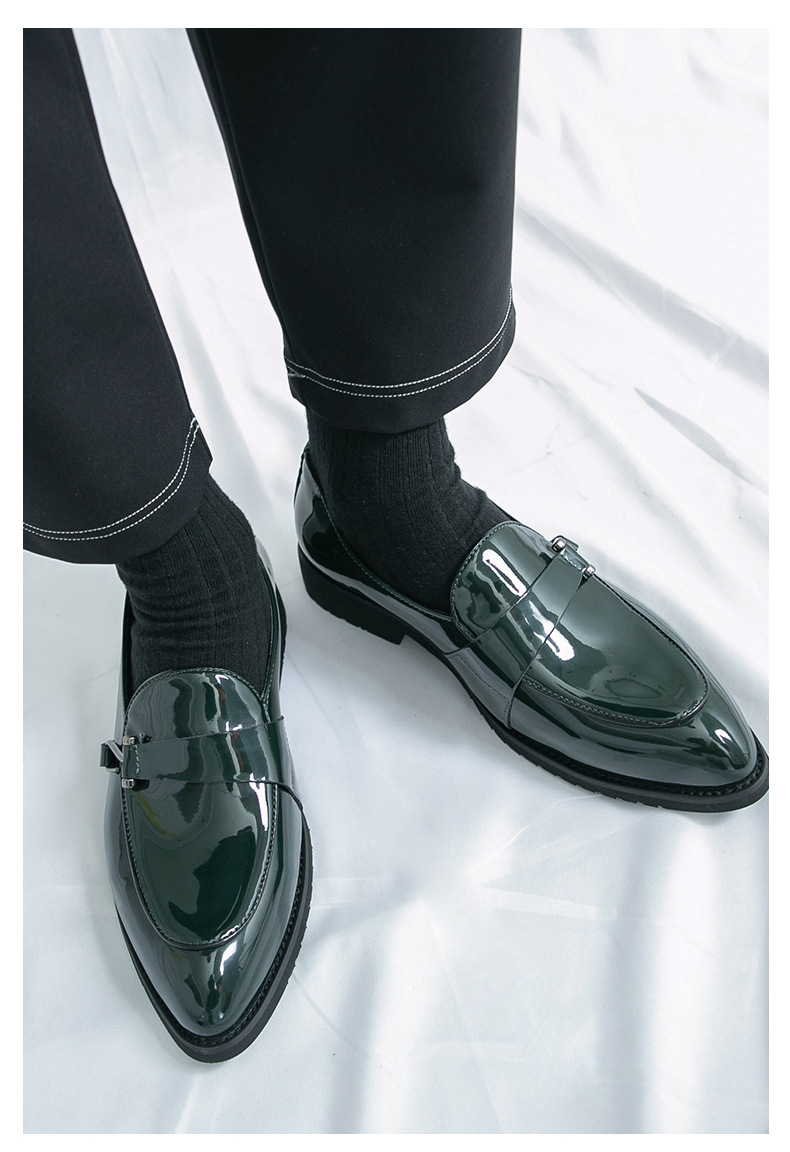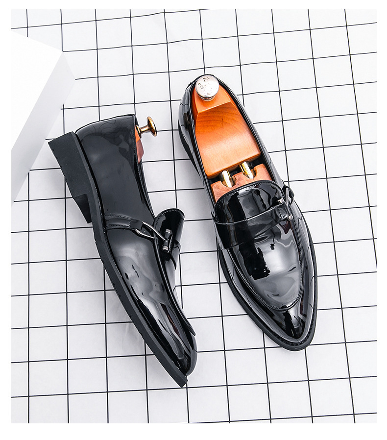 Zapatos Lefu de charol brillante transfronterizo de gran tamaño para hombre, zapatos de cuero puntiagudos, zapatos de hombre, zapatos de cuero blanco dorado 38-46