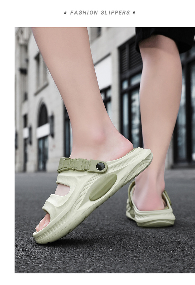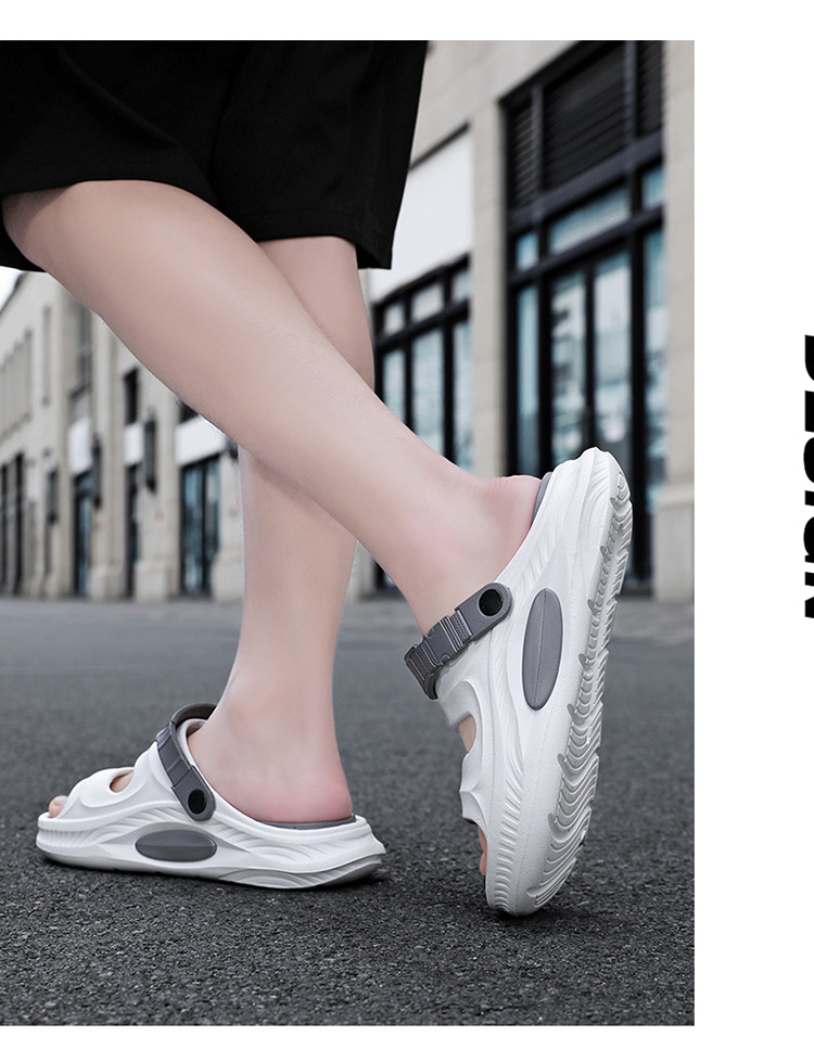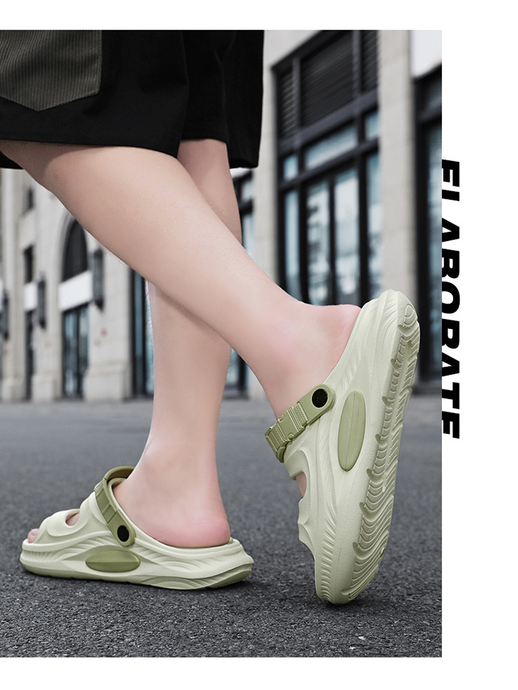 2025 nueva ropa exterior de verano antideslizante pisando heces sandalias y zapatillas de suela gruesa arrastrando al aire libre sandalias de playa de doble uso hombres