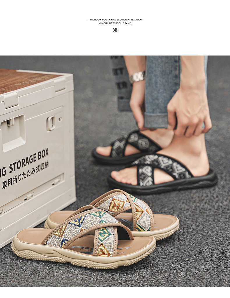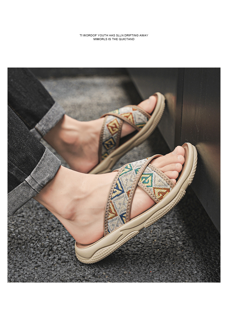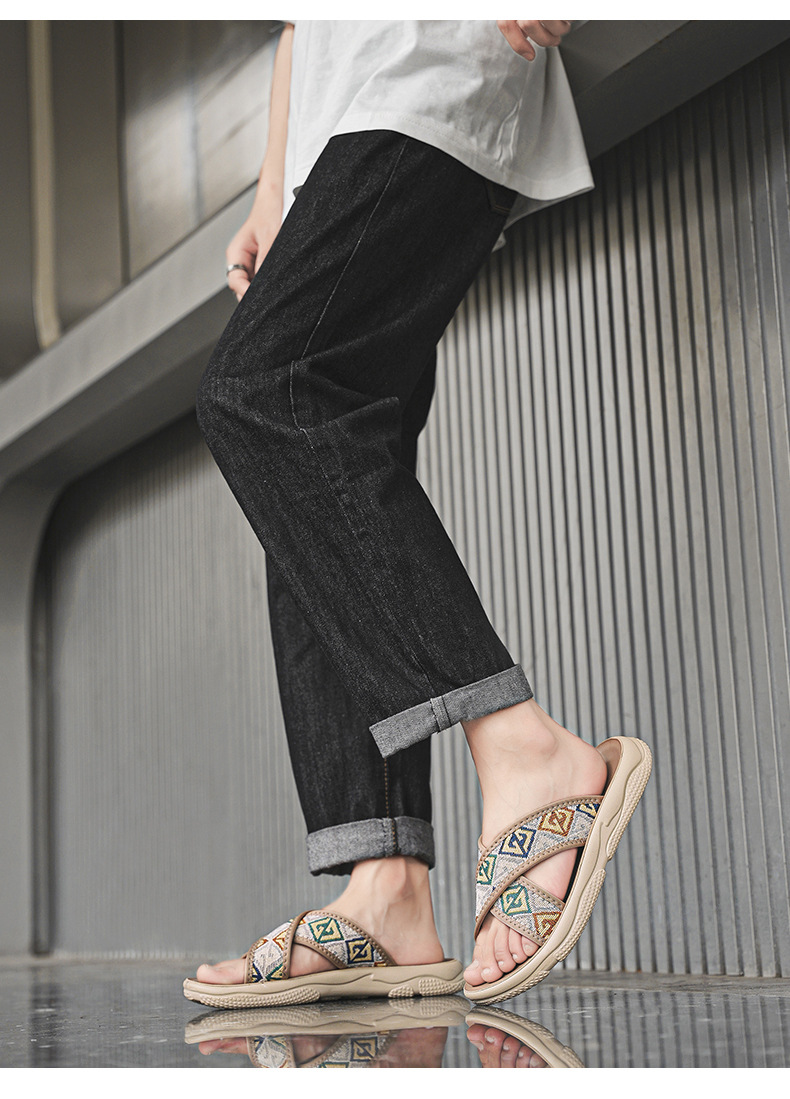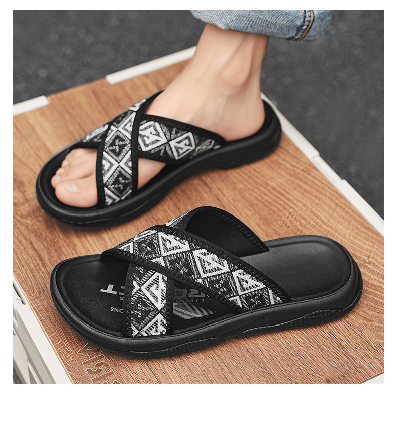 2025 nuevas chanclas de fondo grueso para uso al aire libre, zapatillas casuales diarias para hombres Q lona elástica de fondo suave para hombres