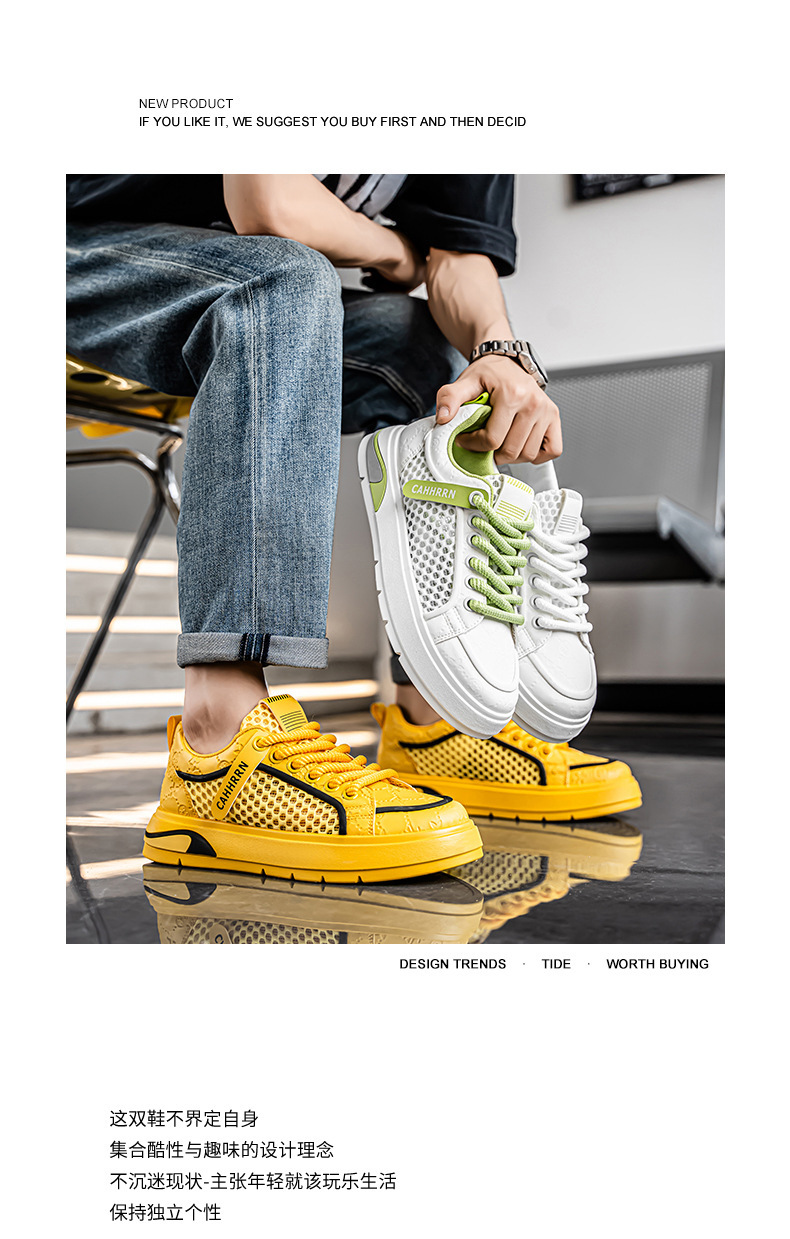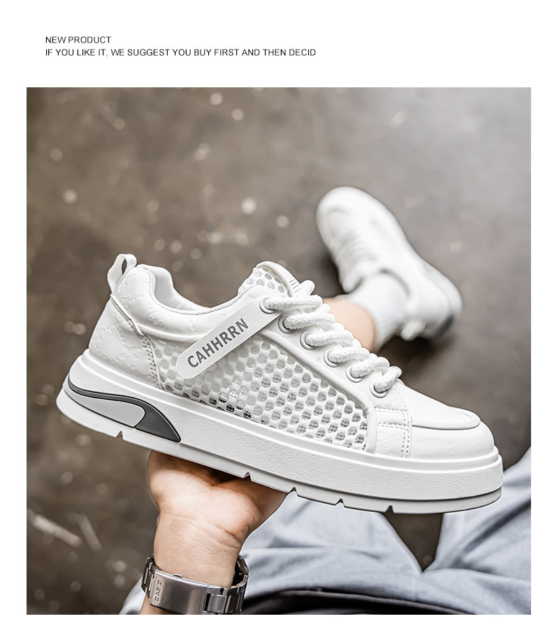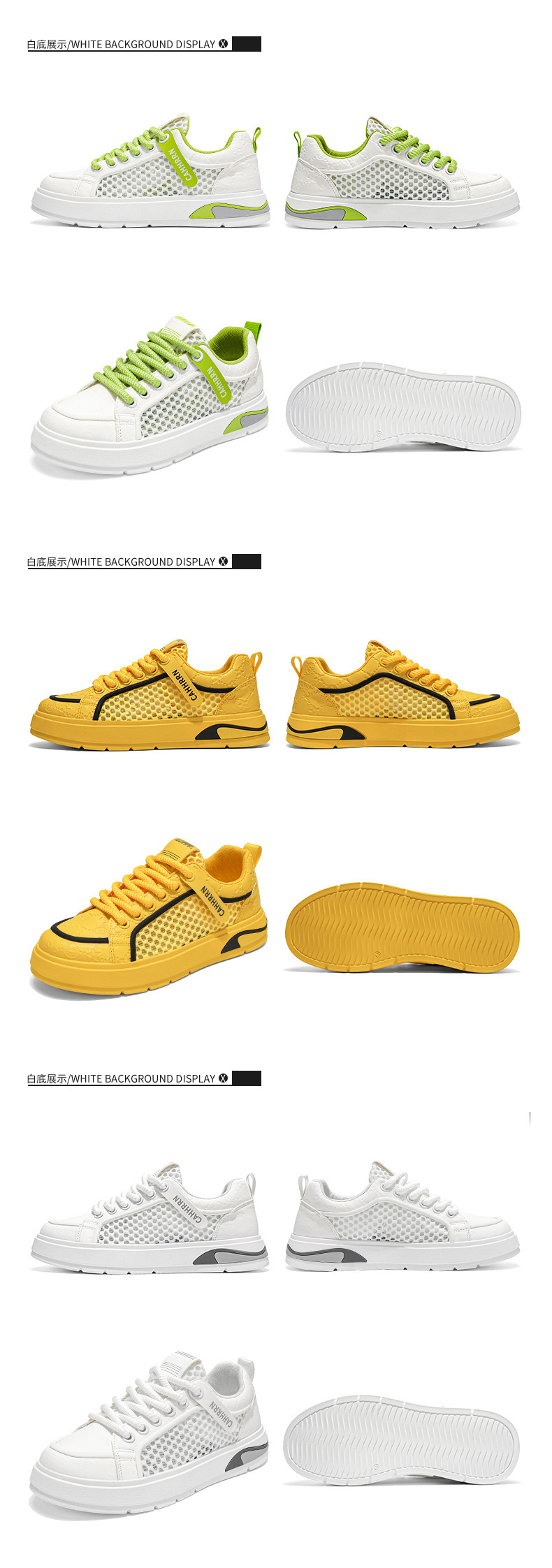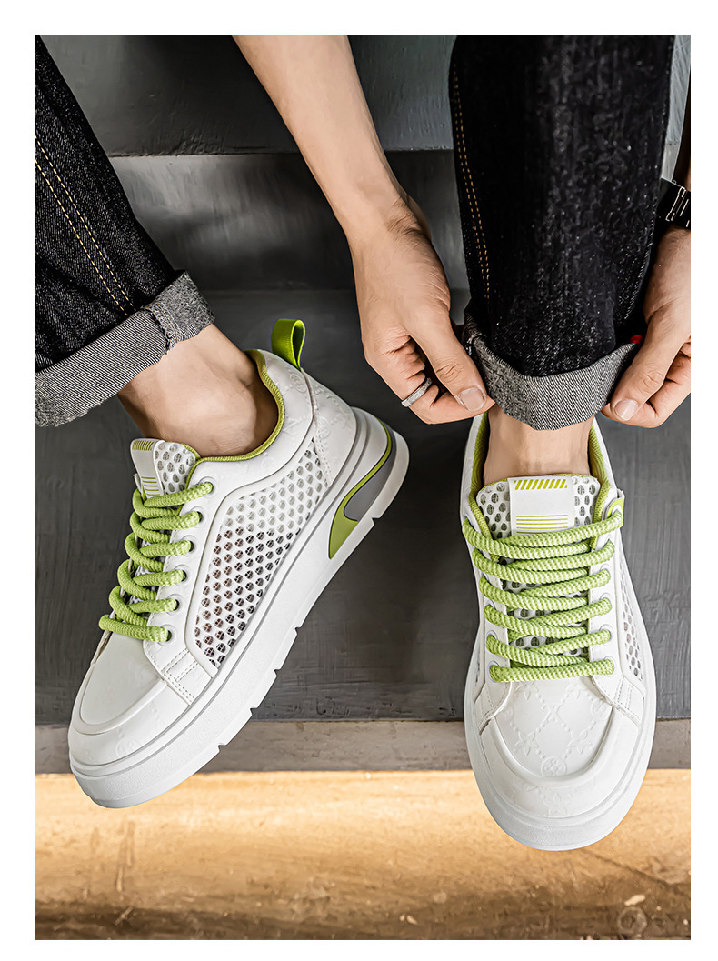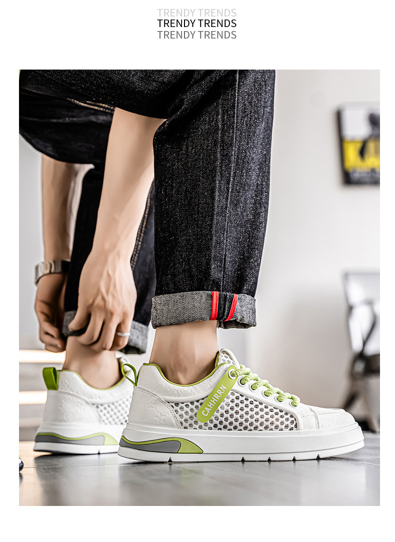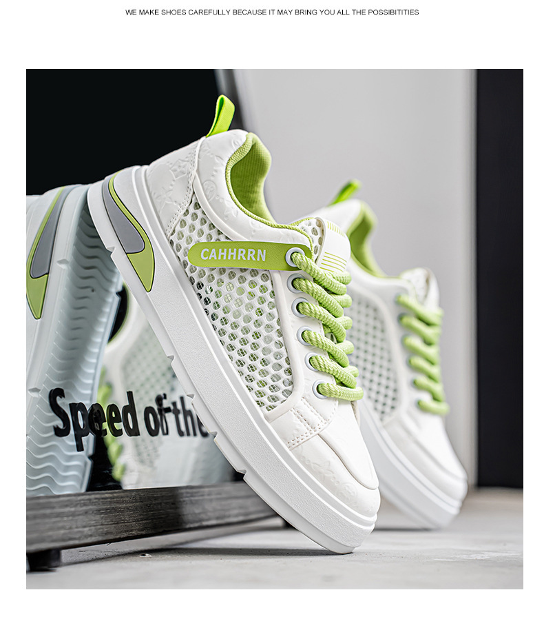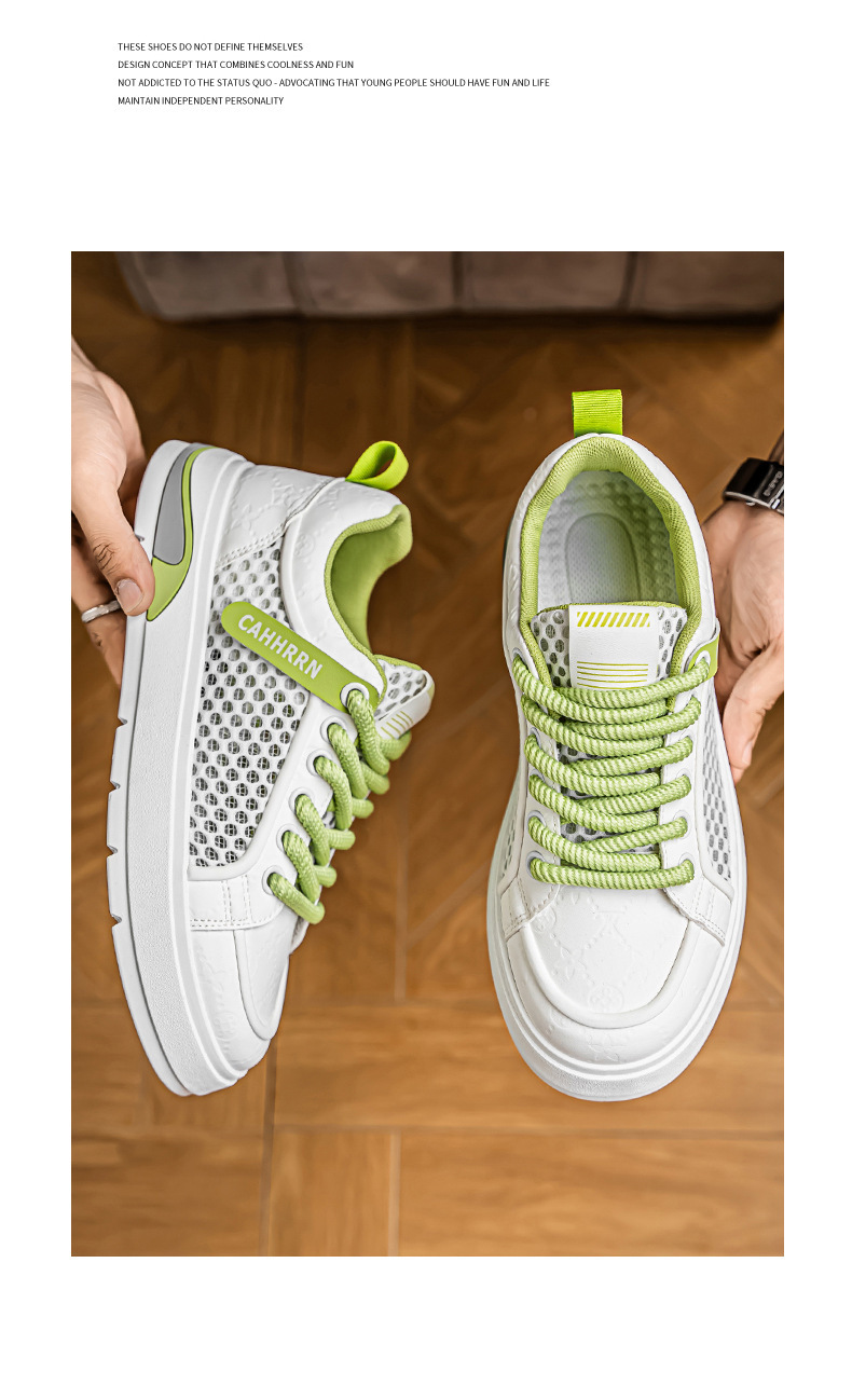 Zapatillas huecas de red grande, zapatos casuales de malla para jóvenes estudiantes, verano 2025, todo fósforo, nicho, zapatos de moda para hombres