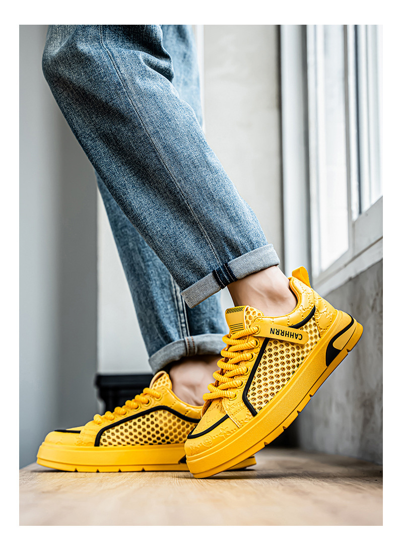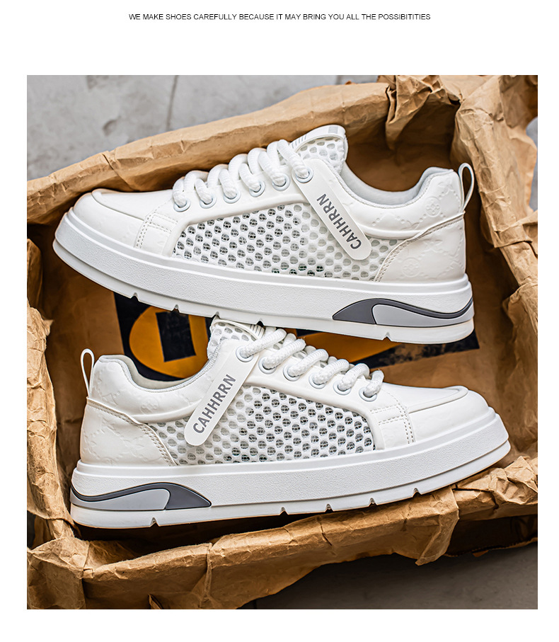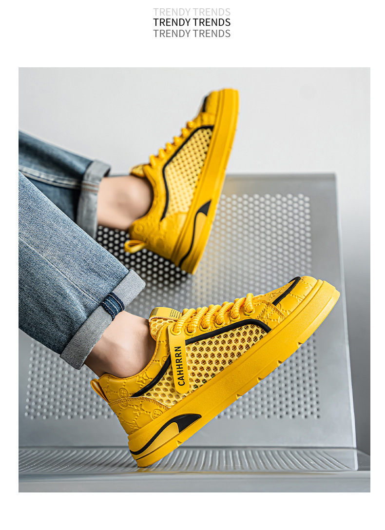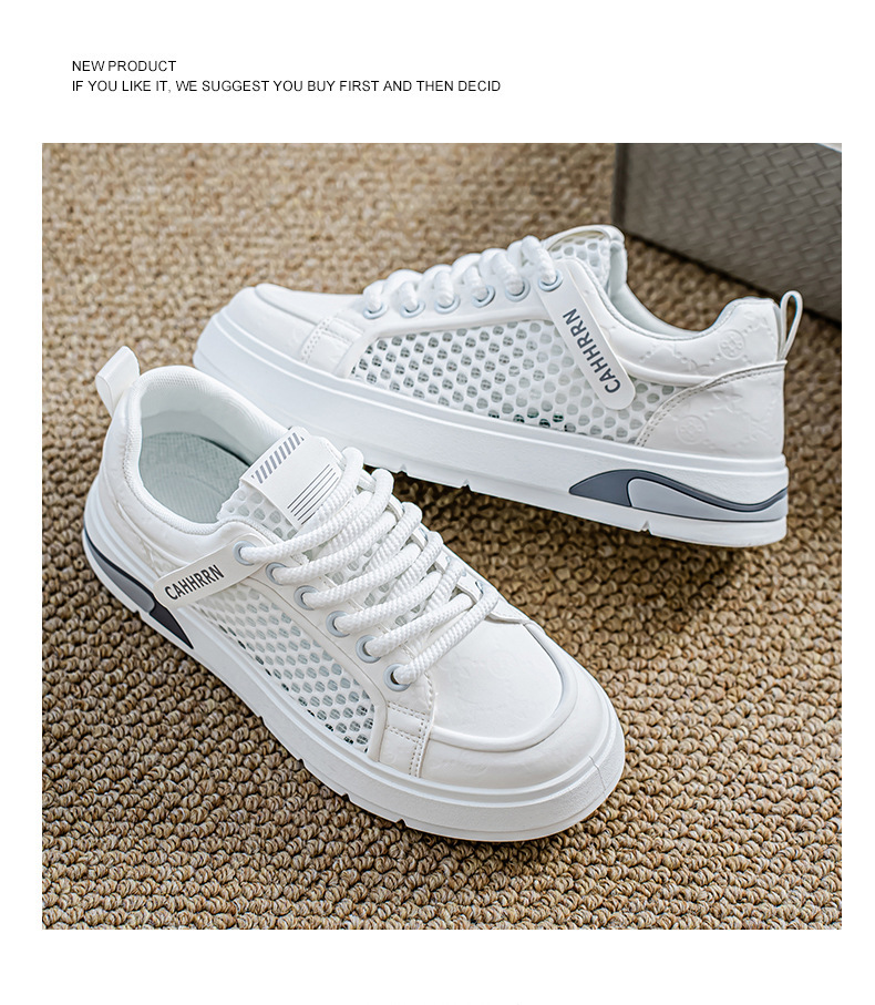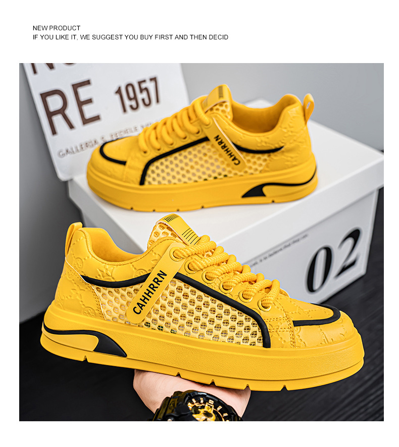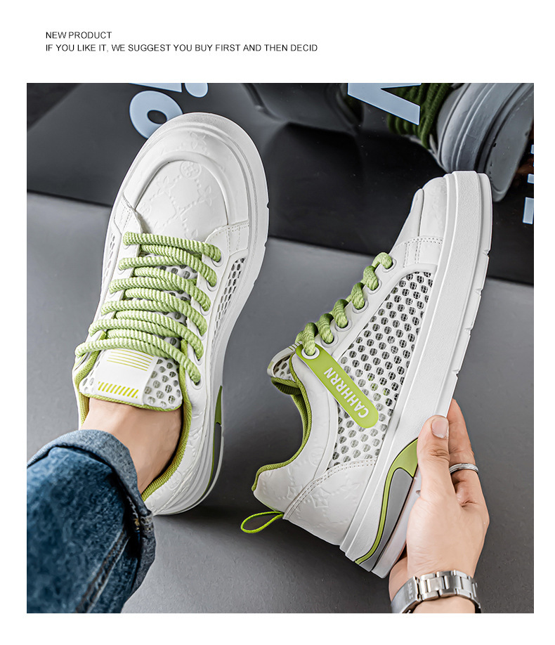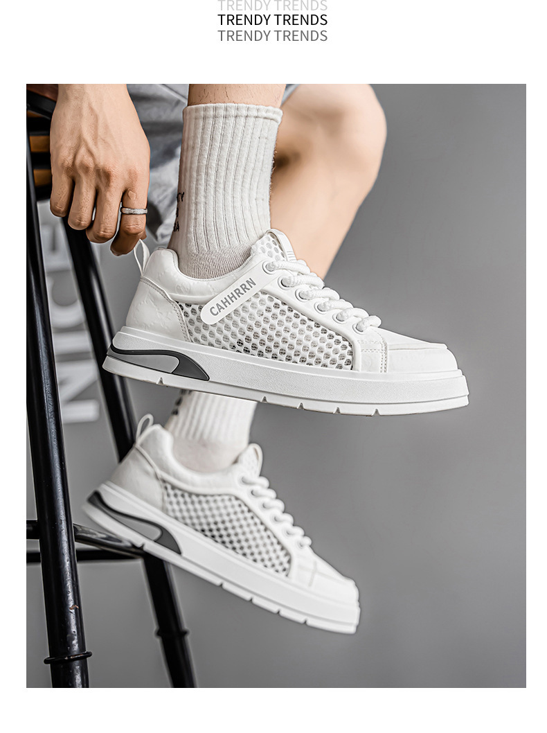 Zapatillas huecas de red grande, zapatos casuales de malla para jóvenes estudiantes, verano 2025, todo fósforo, nicho, zapatos de moda para hombres