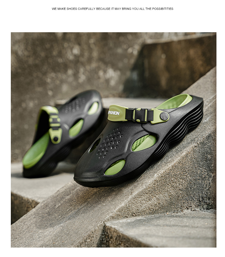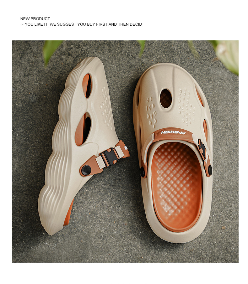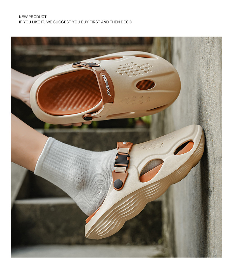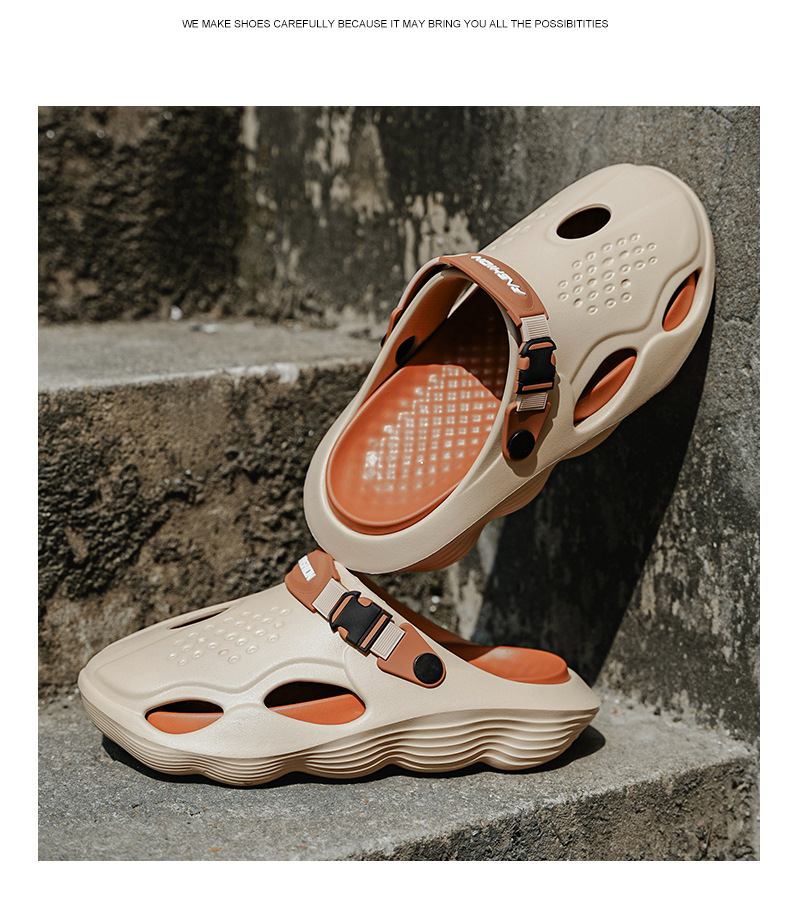 2025 nuevos zapatos con agujeros de suela gruesa para hombres, zapatillas Baotou, sandalias deportivas antideslizantes para hombres, zapatos de playa