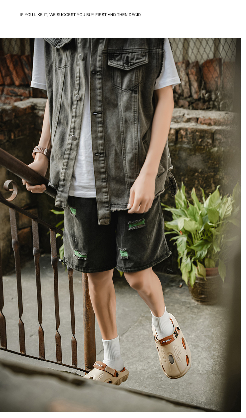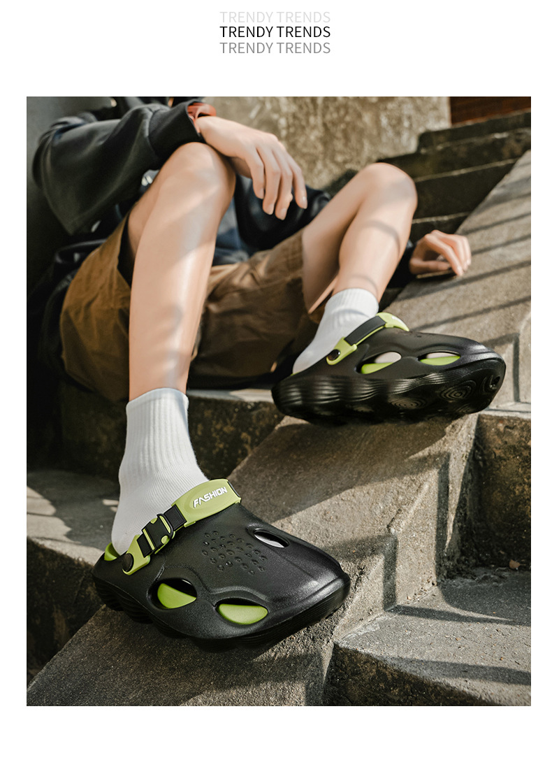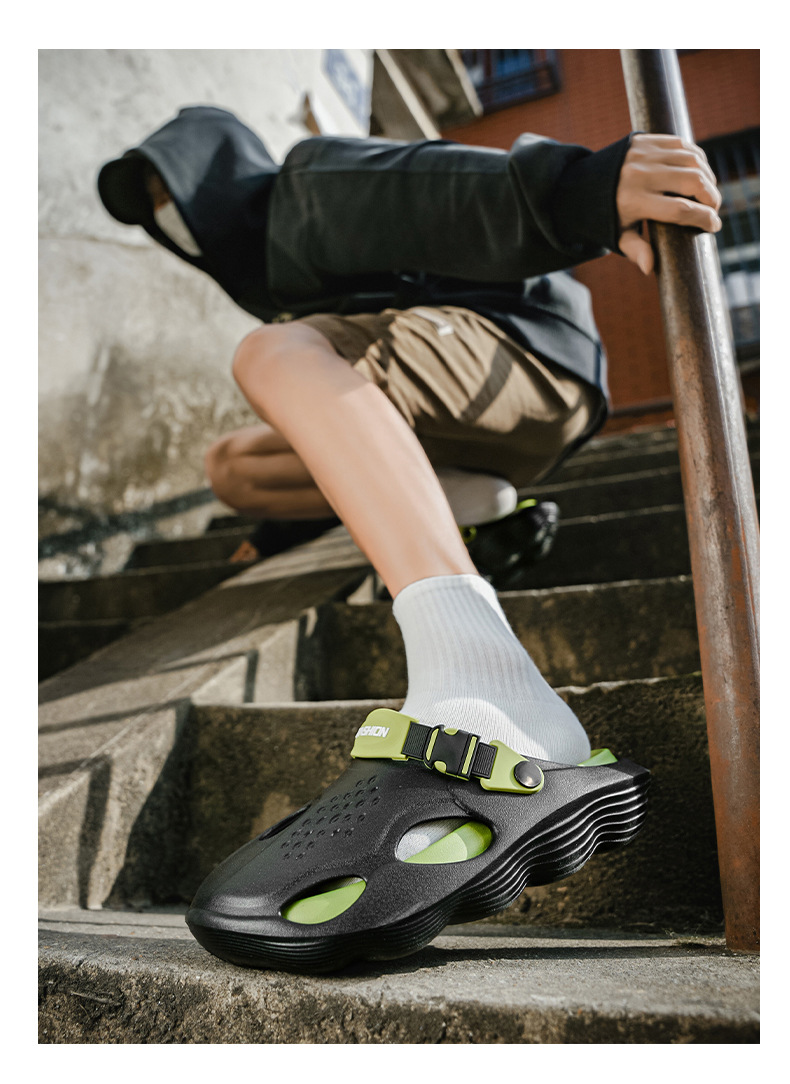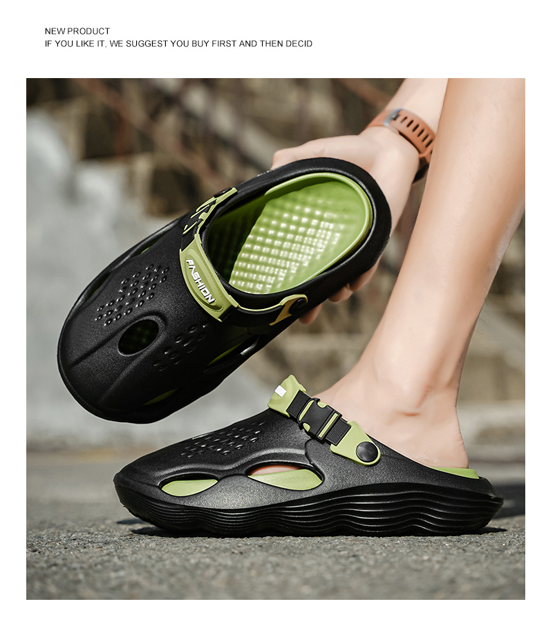 2025 nuevos zapatos con agujeros de suela gruesa para hombres, zapatillas Baotou, sandalias deportivas antideslizantes para hombres, zapatos de playa