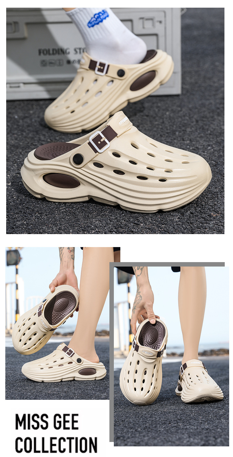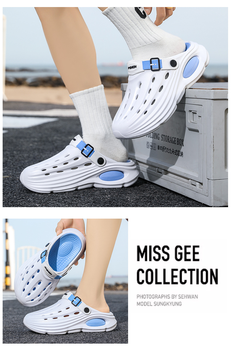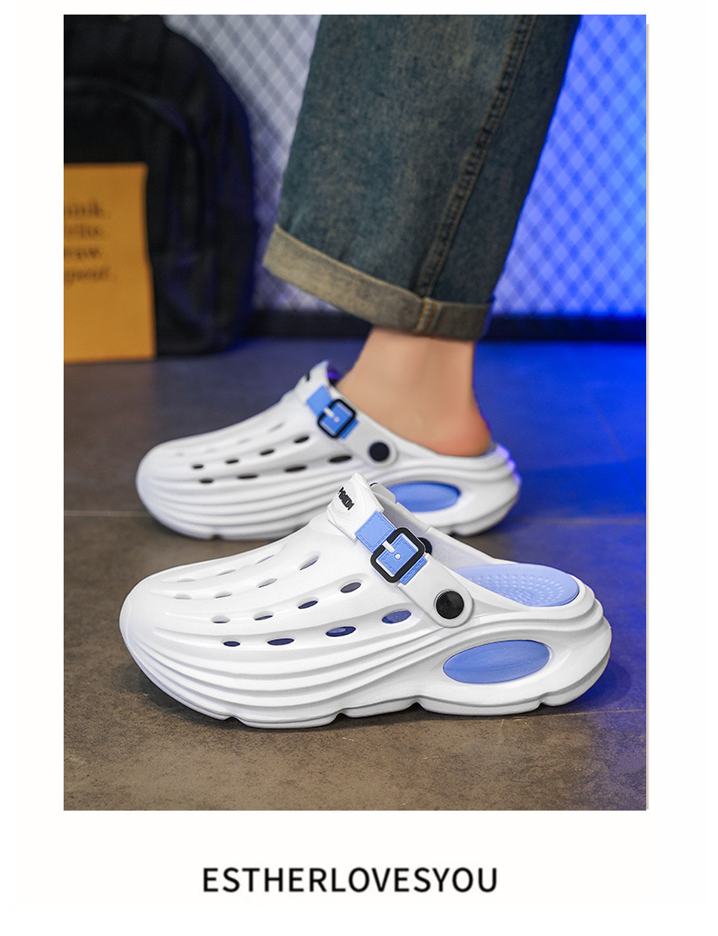 Primavera y verano para hombre nuevo casual todo-fósforo diario cómodo y transpirable a juego de color punta redonda EVA plataforma zapatos de agujero para hombre