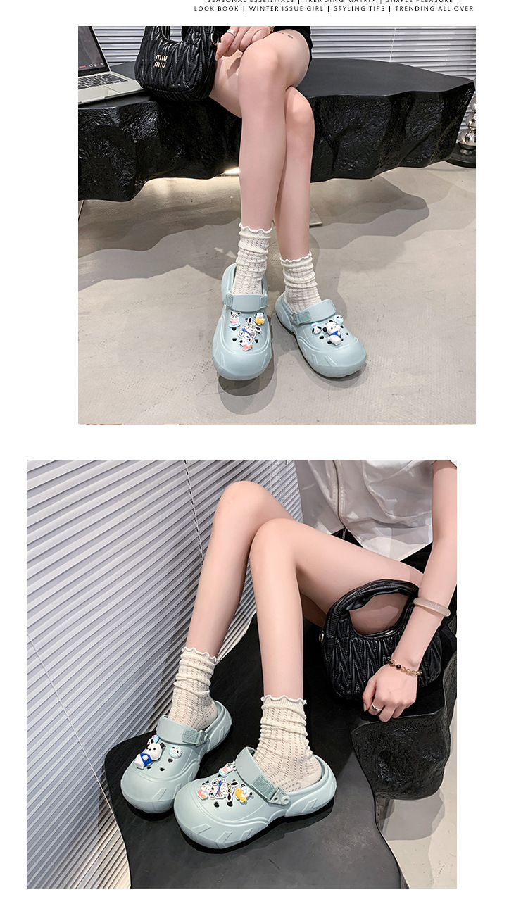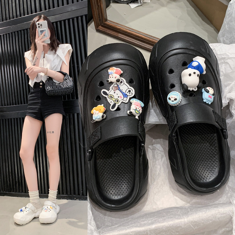 Nuevos zapatos con agujeros, accesorios de bricolaje, zapatos superiores de dibujos animados tridimensionales, decoración de flores, suela gruesa EVA, zapatillas de Baotou antideslizantes y resistentes al desgaste