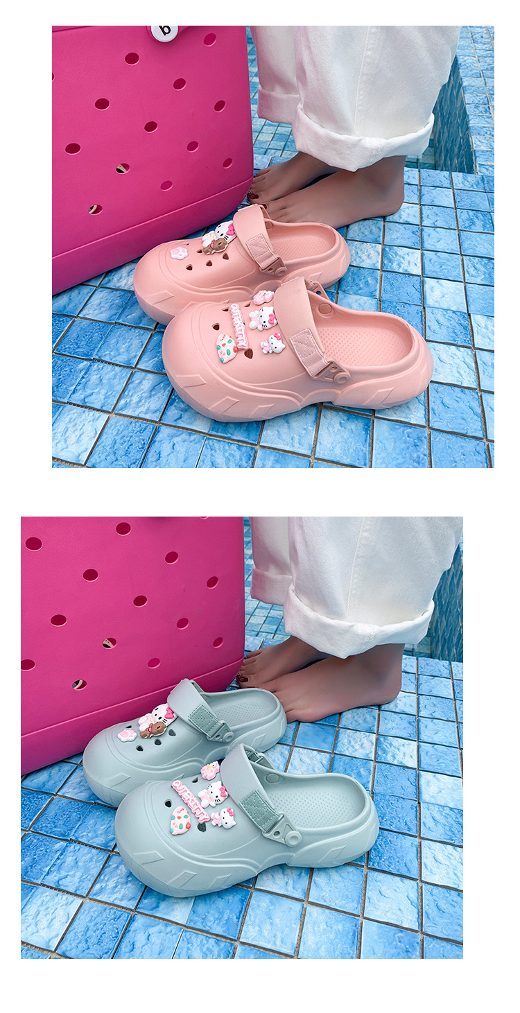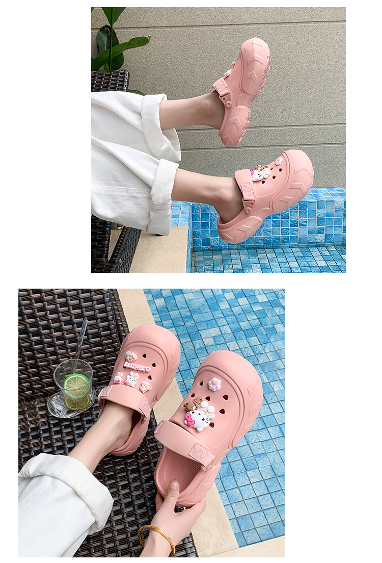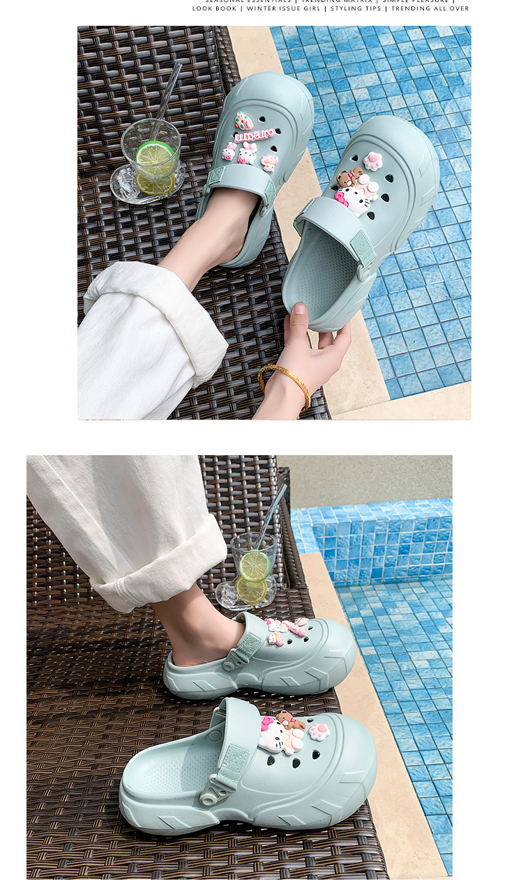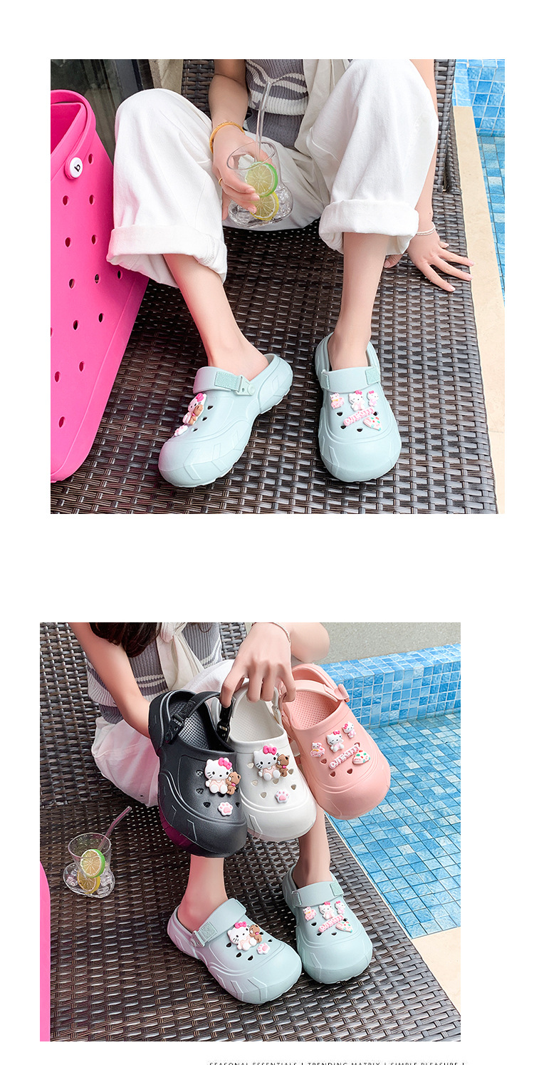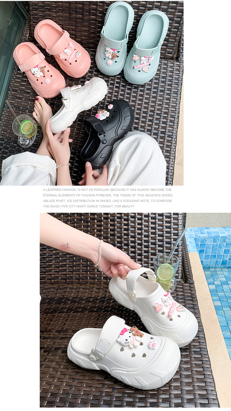 Zapatos con agujeros ropa exterior de mujer primavera y verano 2025 nuevo estilo todo en uno aumento playa antideslizante Baotou lindo media pantufla mujer
