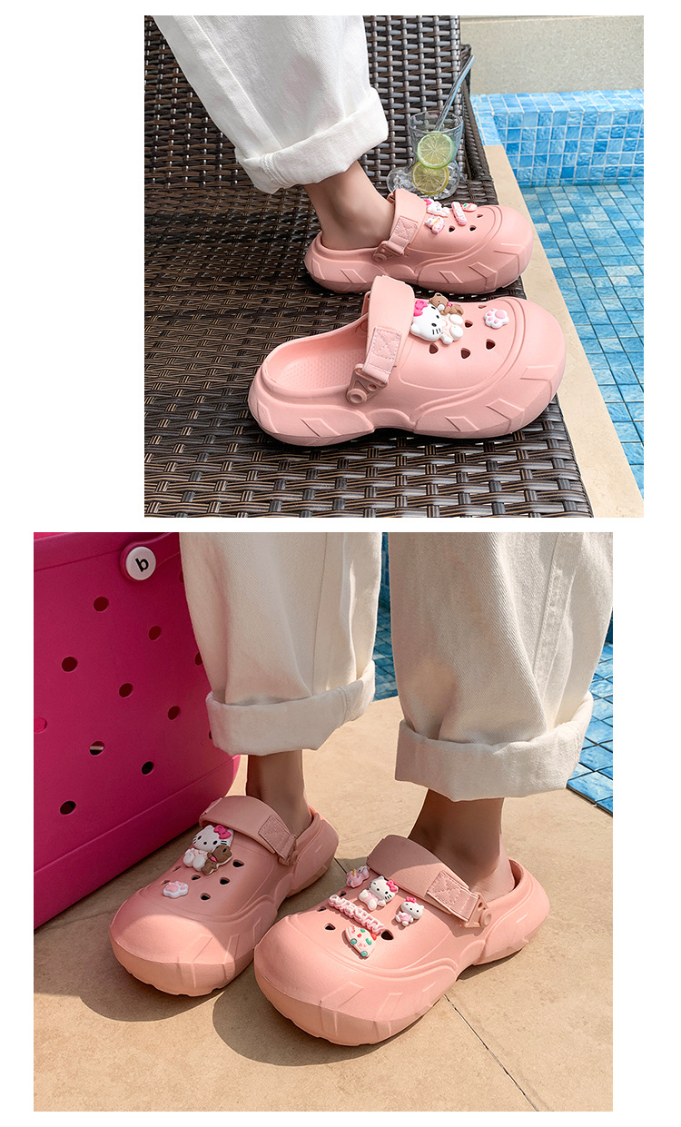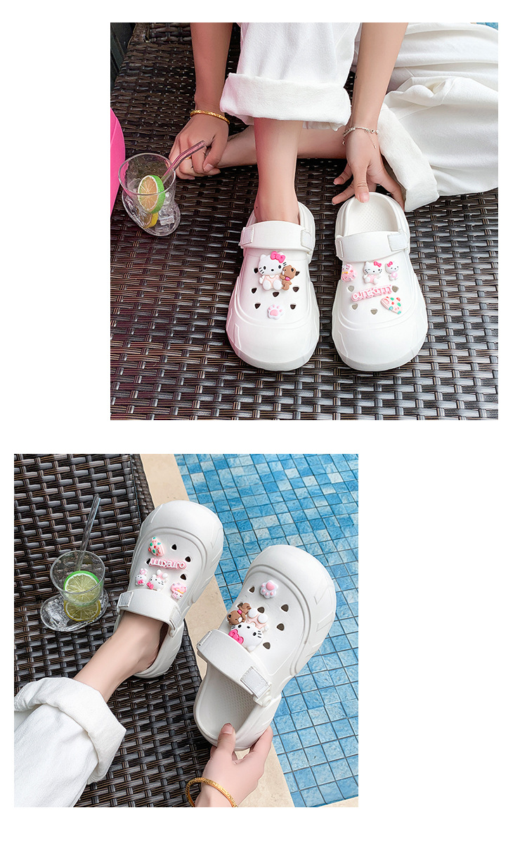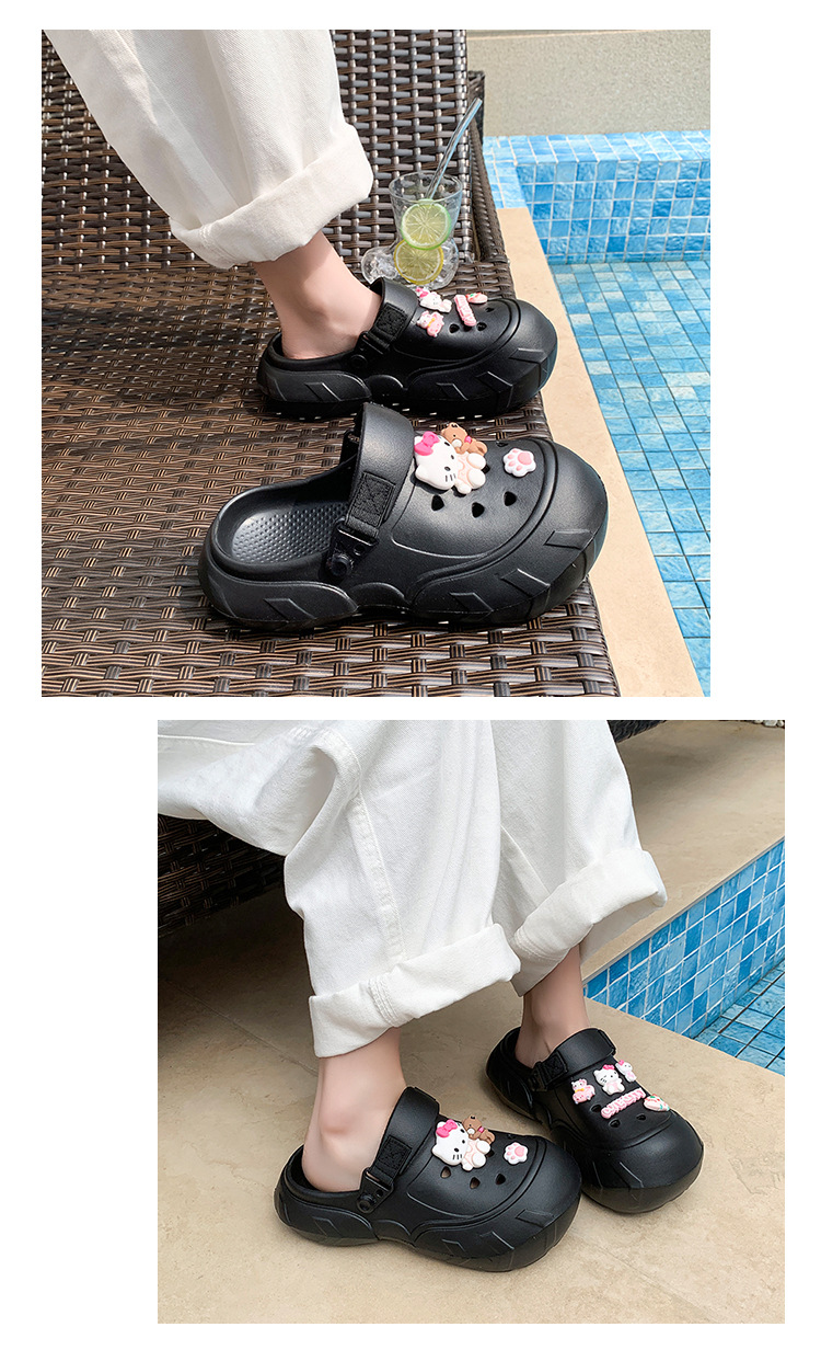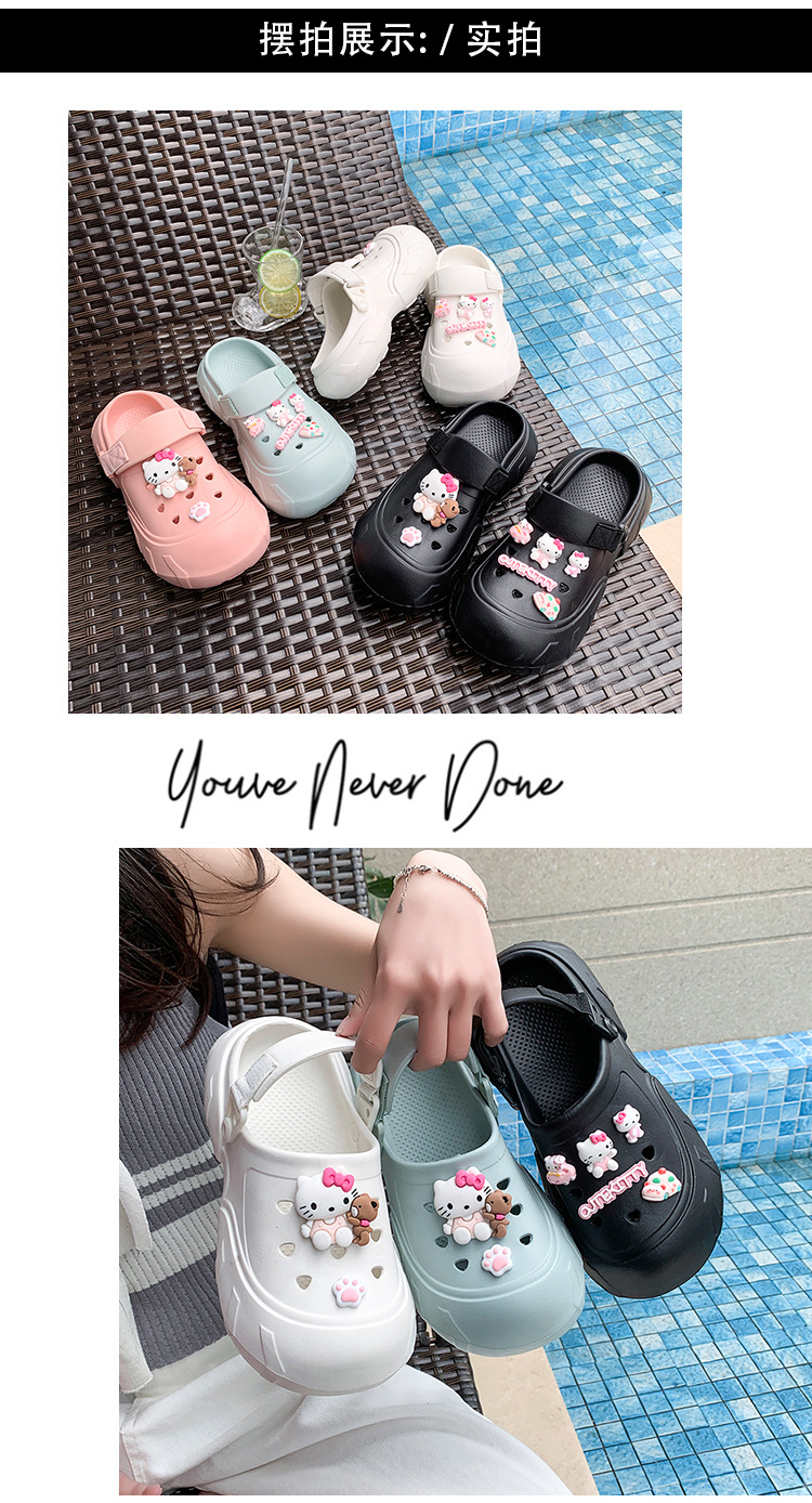 Zapatos con agujeros ropa exterior de mujer primavera y verano 2025 nuevo estilo todo en uno aumento playa antideslizante Baotou lindo media pantufla mujer