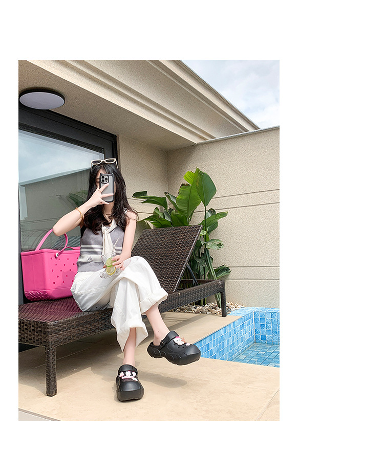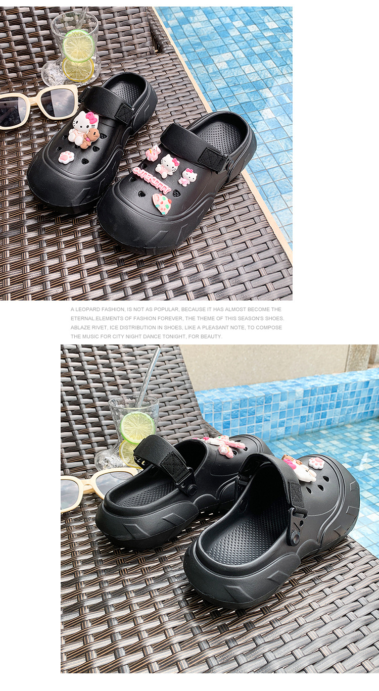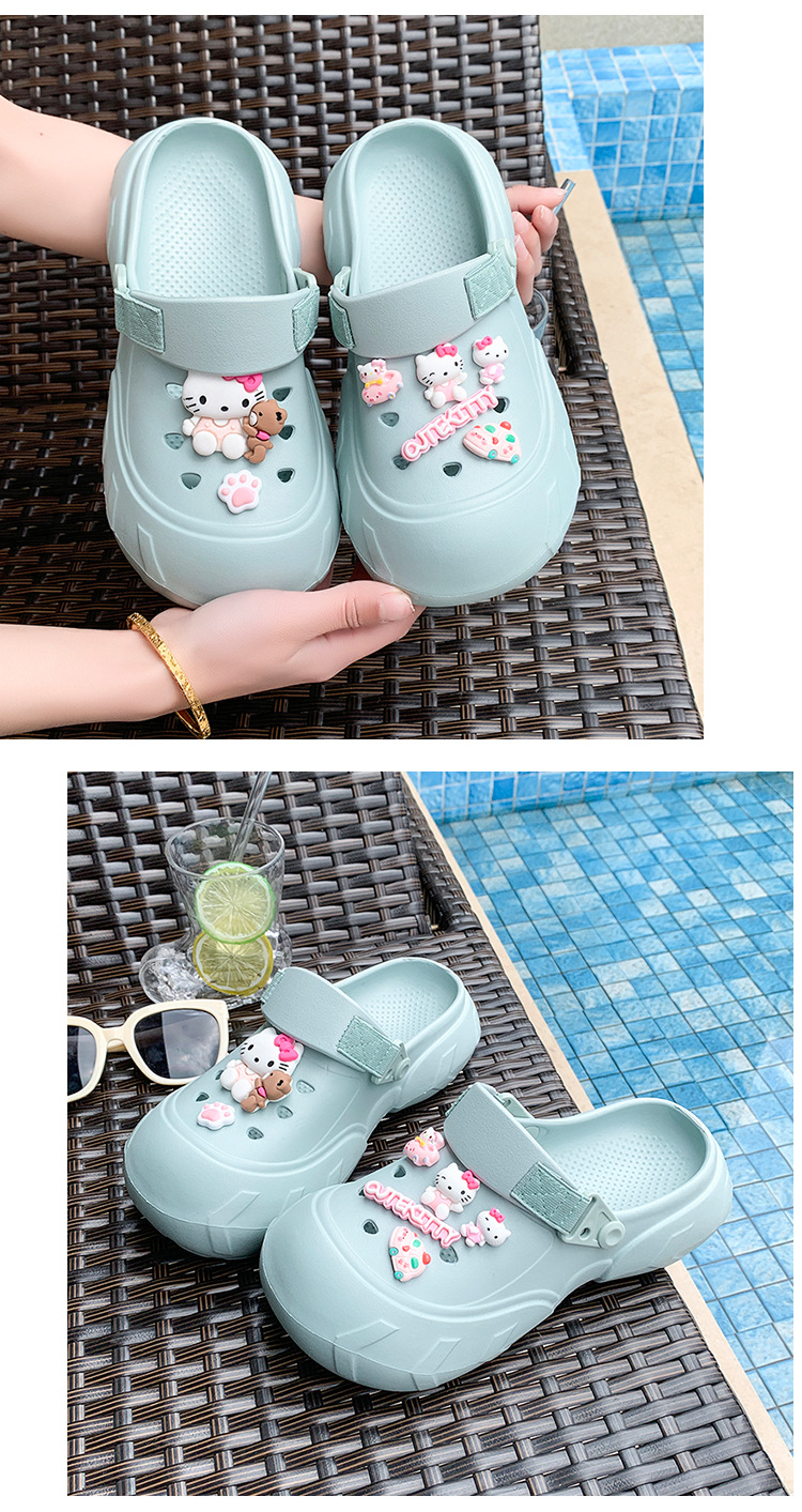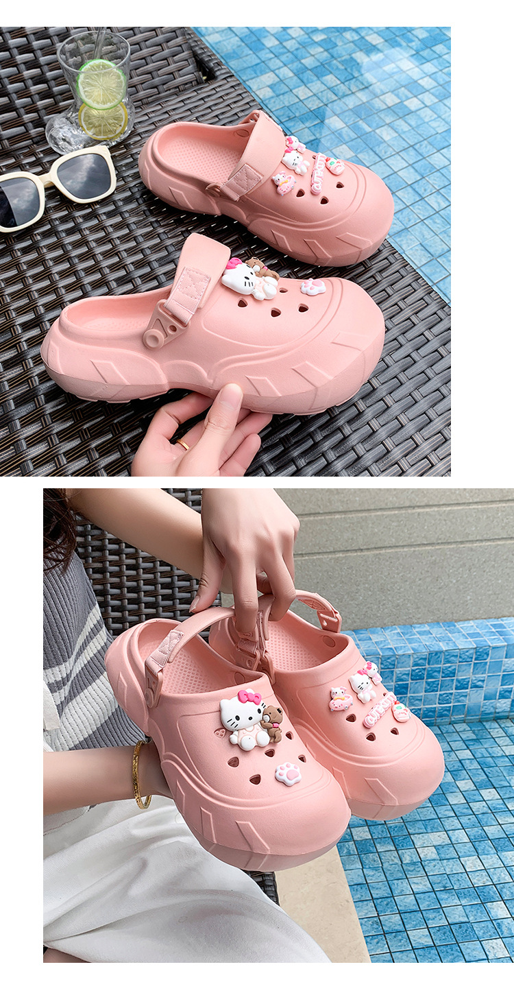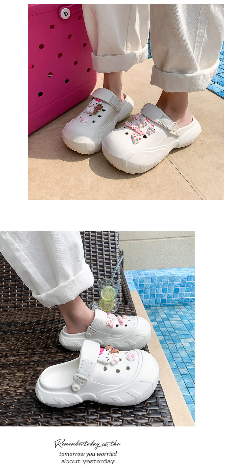 Zapatos con agujeros ropa exterior de mujer primavera y verano 2025 nuevo estilo todo en uno aumento playa antideslizante Baotou lindo media pantufla mujer