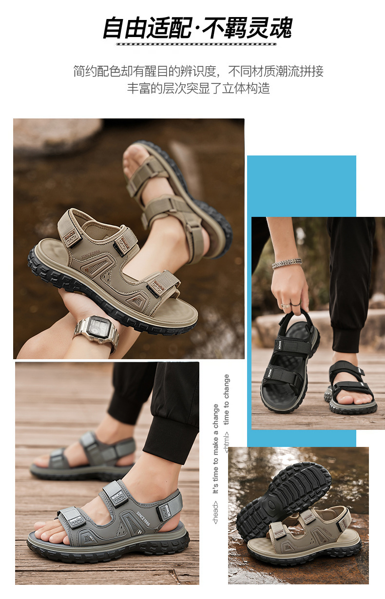 La nueva tendencia de los hombres en la primavera y el verano de 2025, las sandalias de velcro para hombres casuales y versátiles, transpirables y cómodas para todos los días