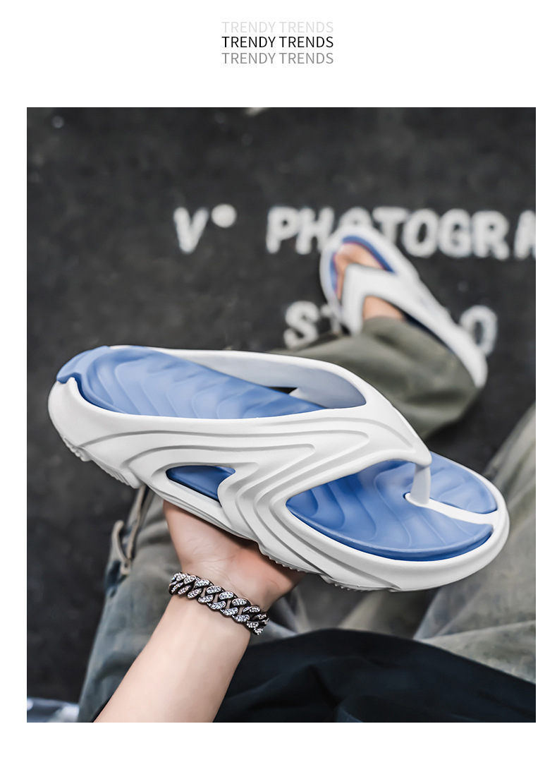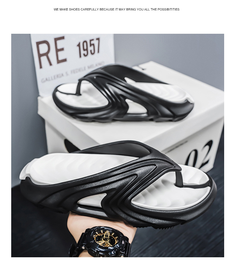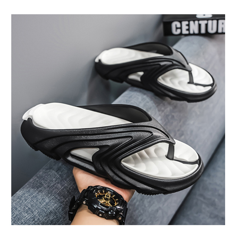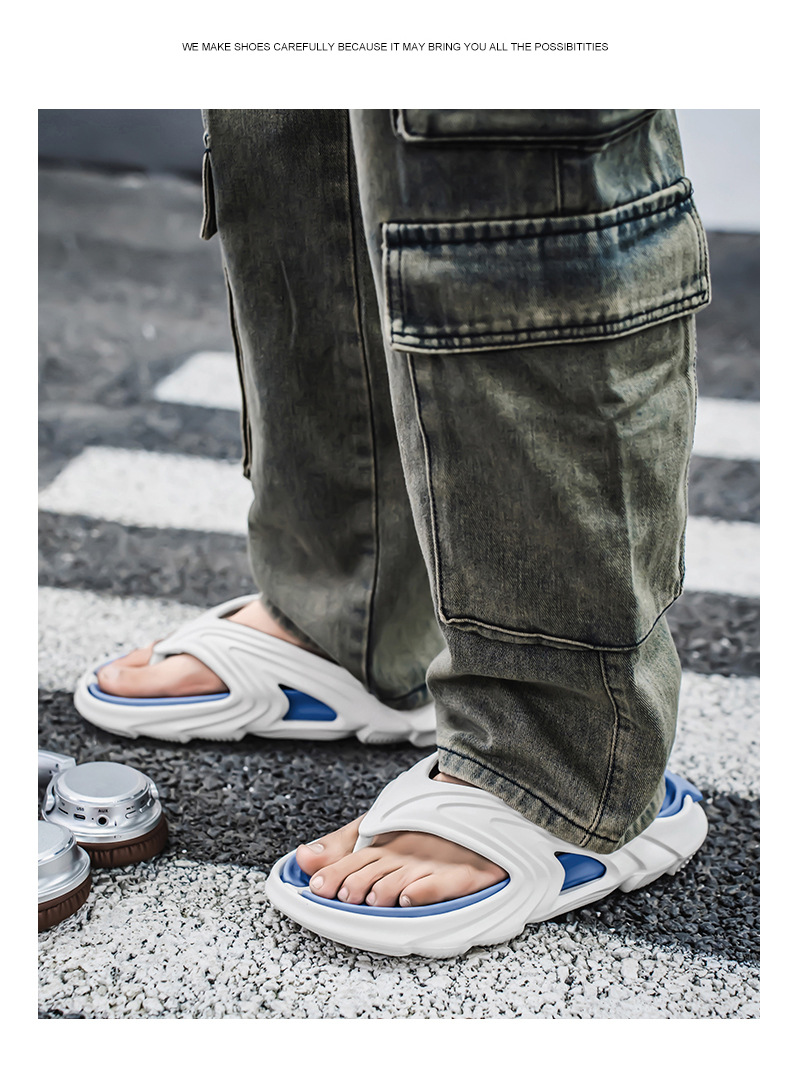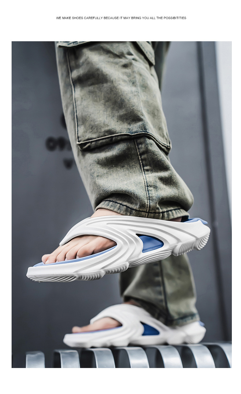 Chanclas de dos colores con sentido de la mierda, chanclas de moda de verano para hombres, sandalias de playa antideslizantes de suela gruesa resistentes al desgaste