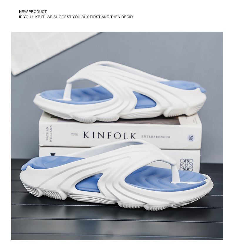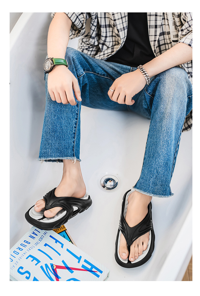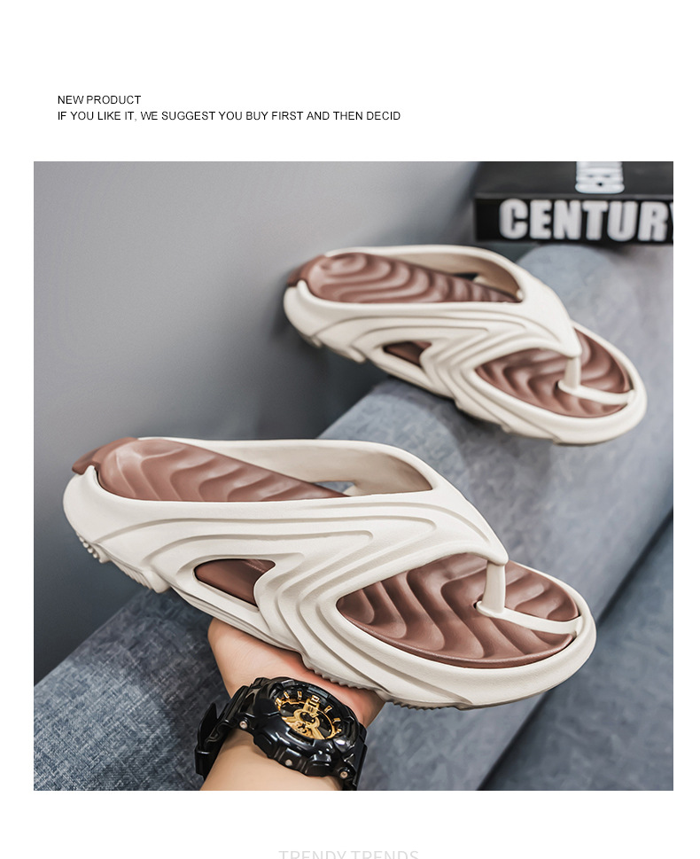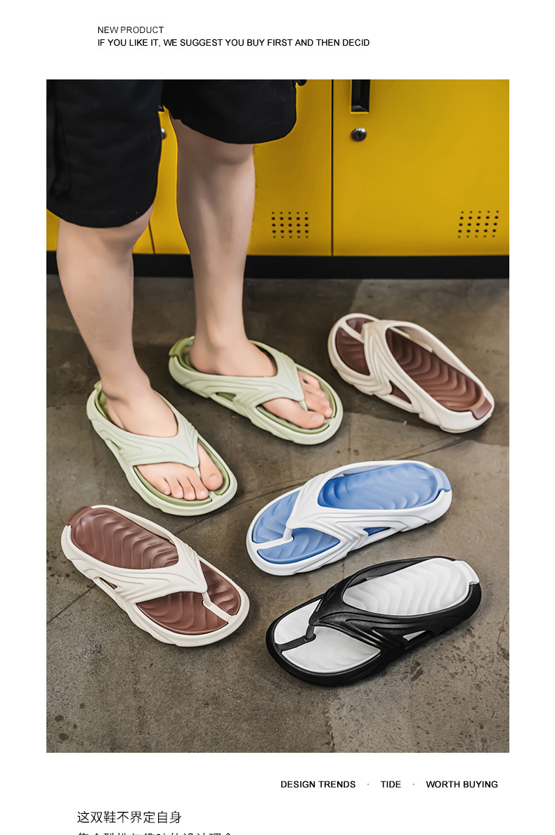 Chanclas de dos colores con sentido de la mierda, chanclas de moda de verano para hombres, sandalias de playa antideslizantes de suela gruesa resistentes al desgaste