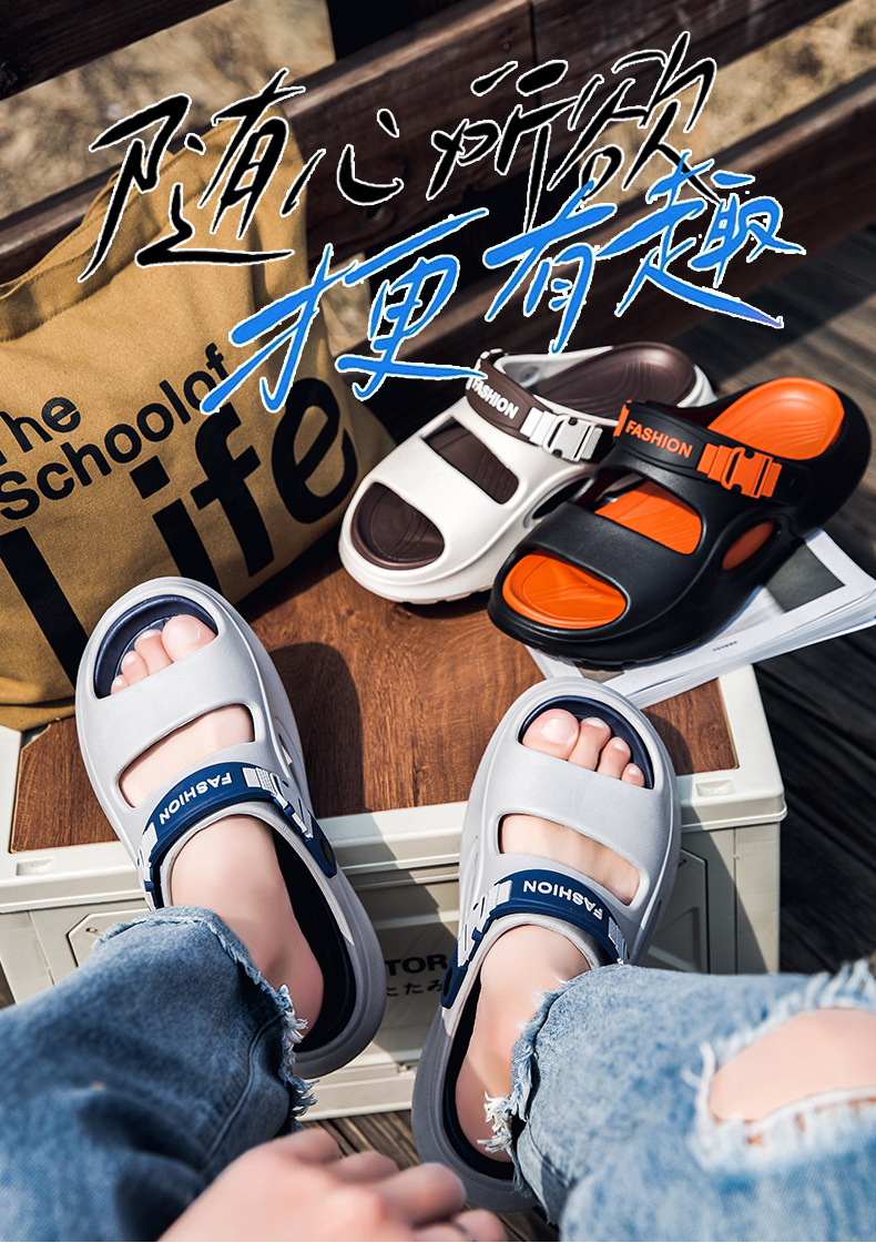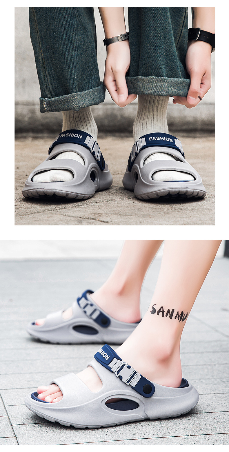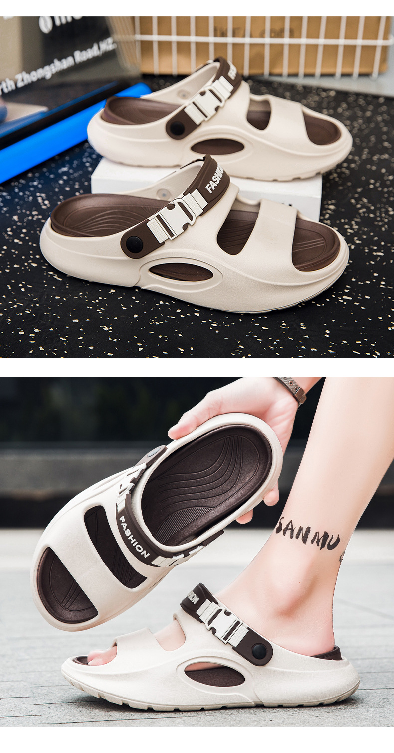 Pantuflas de dos colores para hombres en verano, antideslizante, pisando mierda, chanclas de suela gruesa, sandalias de playa de doble uso para conducción al aire libre